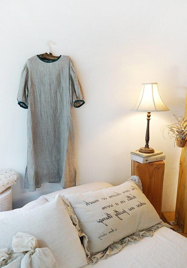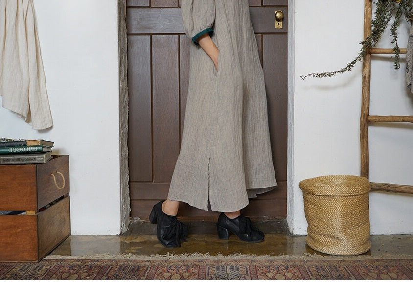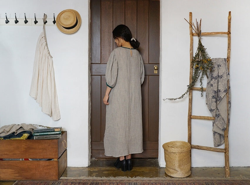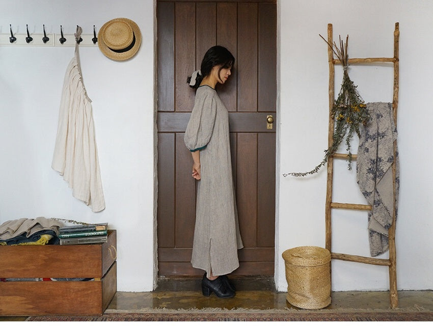 Vestido largo Jessie de lino y algodón con mangas abullonadas