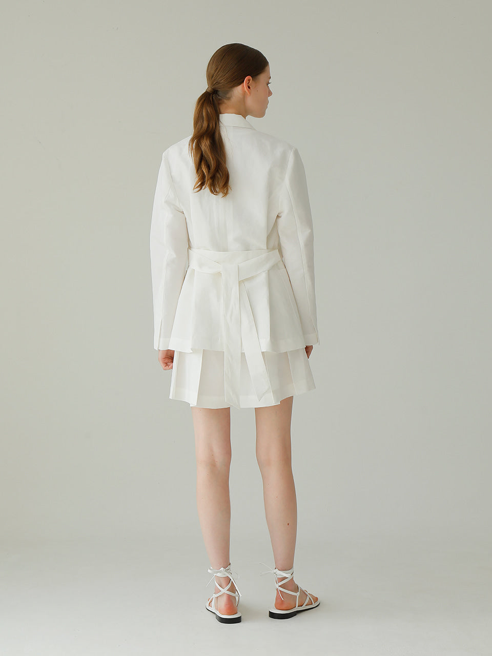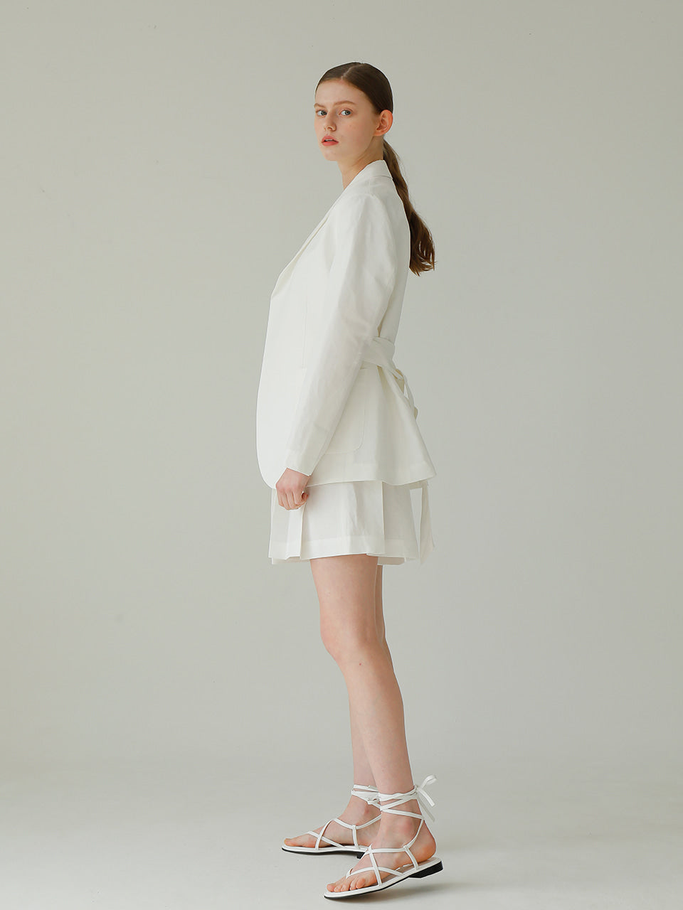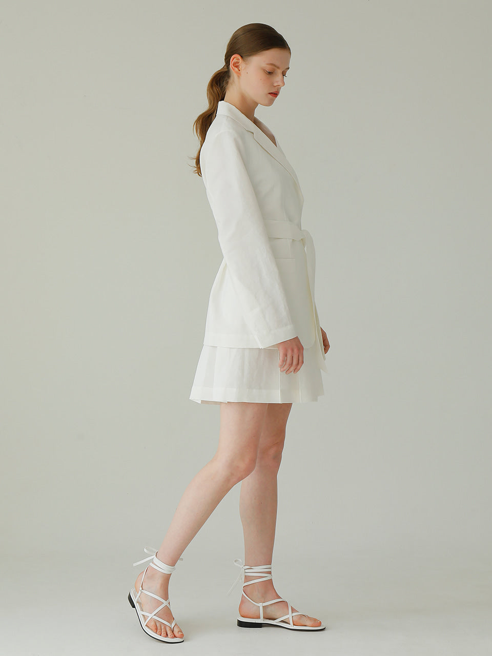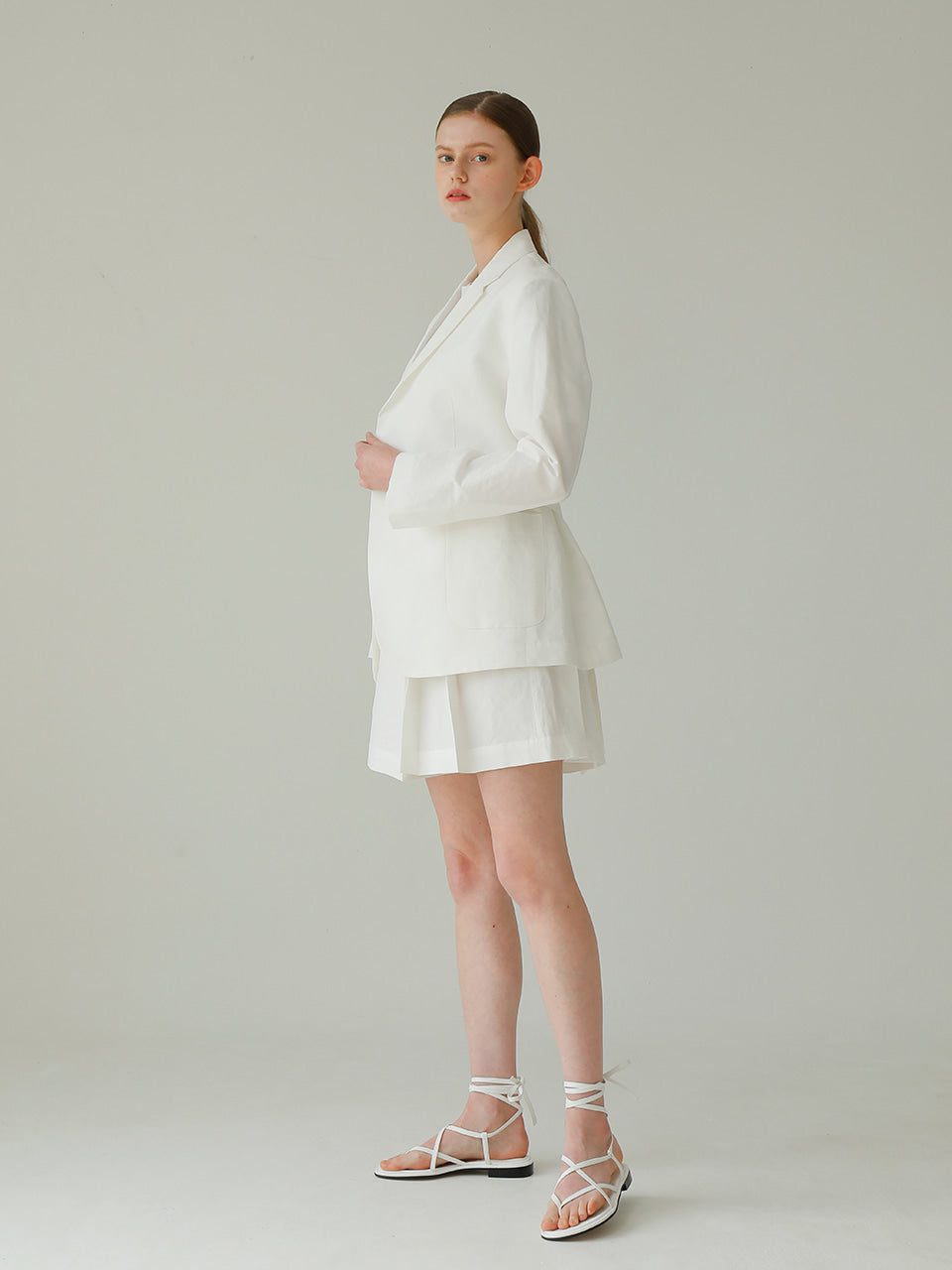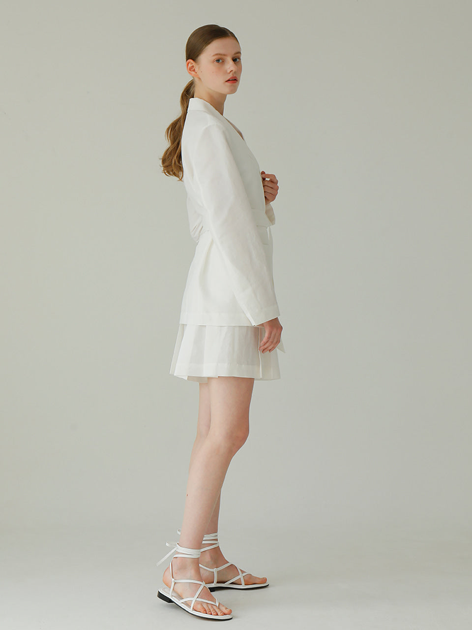 Laura Ren presents a modern take on the classic short skirt with this premium linen piece. Designed with a clean, layered structure and soft pleats, it delivers both ease and elegance. The high-waisted fit enhances the silhouette while allowing versatile styling from relaxed daytime looks to elevated ensembles. A refined essential for warm-weather wardrobes.