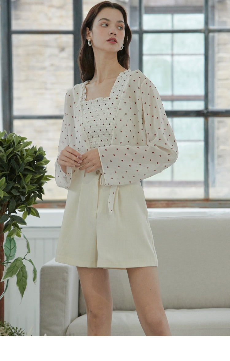 Elevate your everyday wardrobe with this charming linen blouse from Laura Ren, designed for modern women who value timeless elegance. Crafted from breathable, lightweight linen, this top features a playful polka dot print, subtle ruffle trim, and a flattering square neckline. The soft shirring across the chest adds a romantic touch, while the adjustable tie front lets you customize your fit with ease. Ideal for casual outings, brunches, or summer gatherings, this linen blouse effortlessly blends comfort with contemporary femininity. Pair it with tailored shorts or wide-leg pants for a polished, breezy look that transitions seamlessly from day to night.