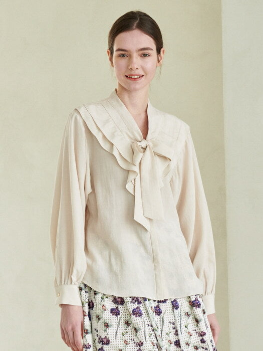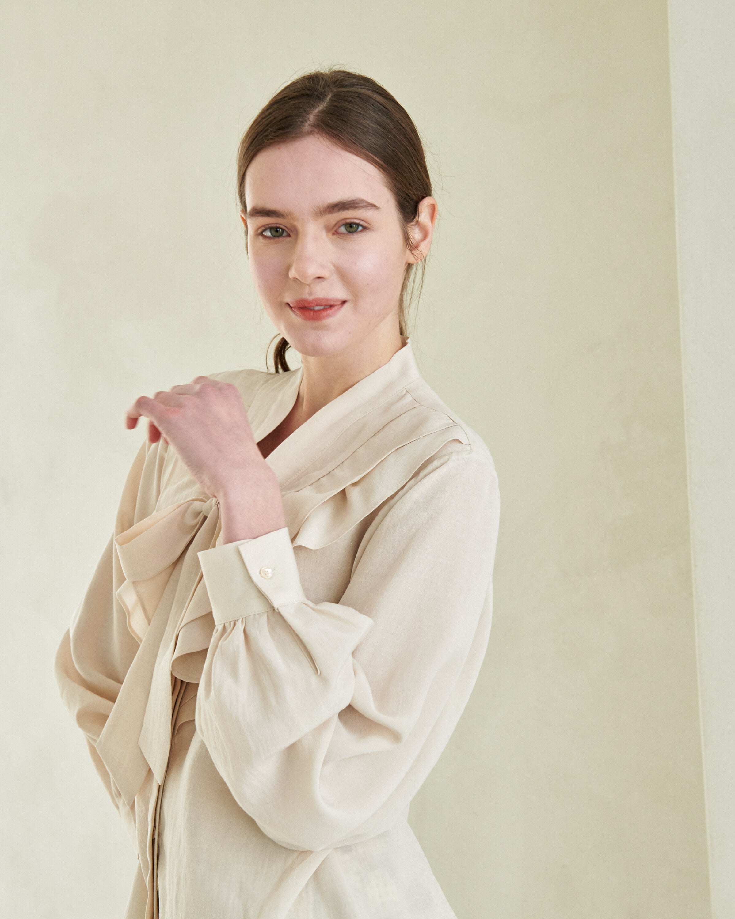 Infused with romantic charm, this linen blouse by Laura Ren features a statement ruffled sailor collar and a soft bow tie detail that frames the neckline with vintage-inspired grace. Made from breathable, natural linen, it offers a relaxed yet refined silhouette, complete with voluminous long sleeves and buttoned cuffs for subtle structure. This blouse effortlessly balances softness with sophistication, making it ideal for pairing with flowing skirts or tailored trousers. Whether styled for daytime outings or elevated weekend wear, Laura Ren’s design brings timeless femininity to every look with a modern linen update.