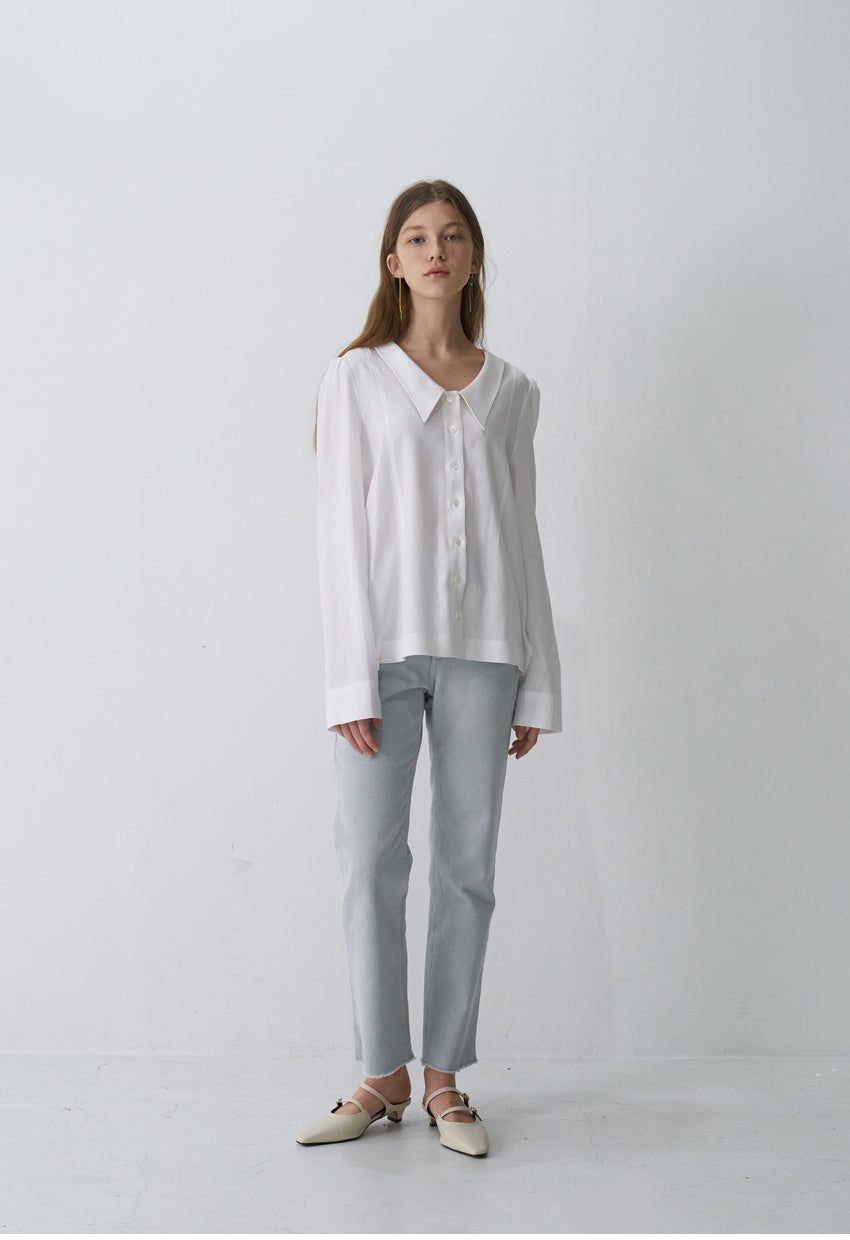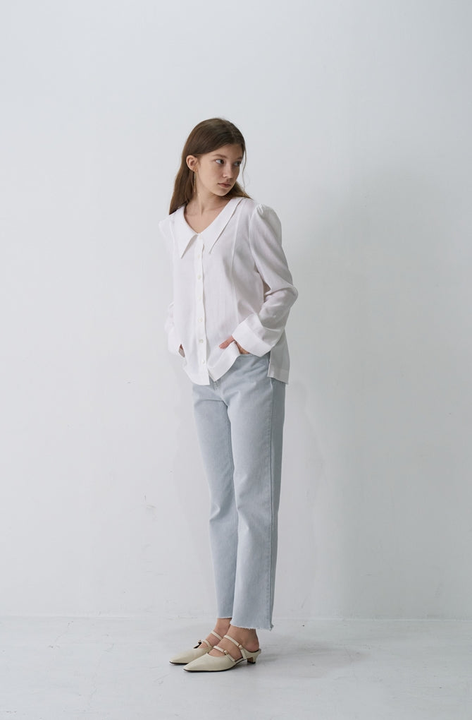 This button-up linen blouse from Laura Ren blends classic tailoring with a modern twist. Crafted from breathable linen, it features an exaggerated point collar that adds a touch of bold sophistication to the otherwise minimalist silhouette. The long sleeves with wide cuffs offer subtle structure, while the soft drape ensures comfort and elegance throughout the day. Ideal for tucking into tailored trousers or wearing casually with denim, this piece transitions effortlessly from workwear to weekend wear. A fresh take on a timeless wardrobe staple.