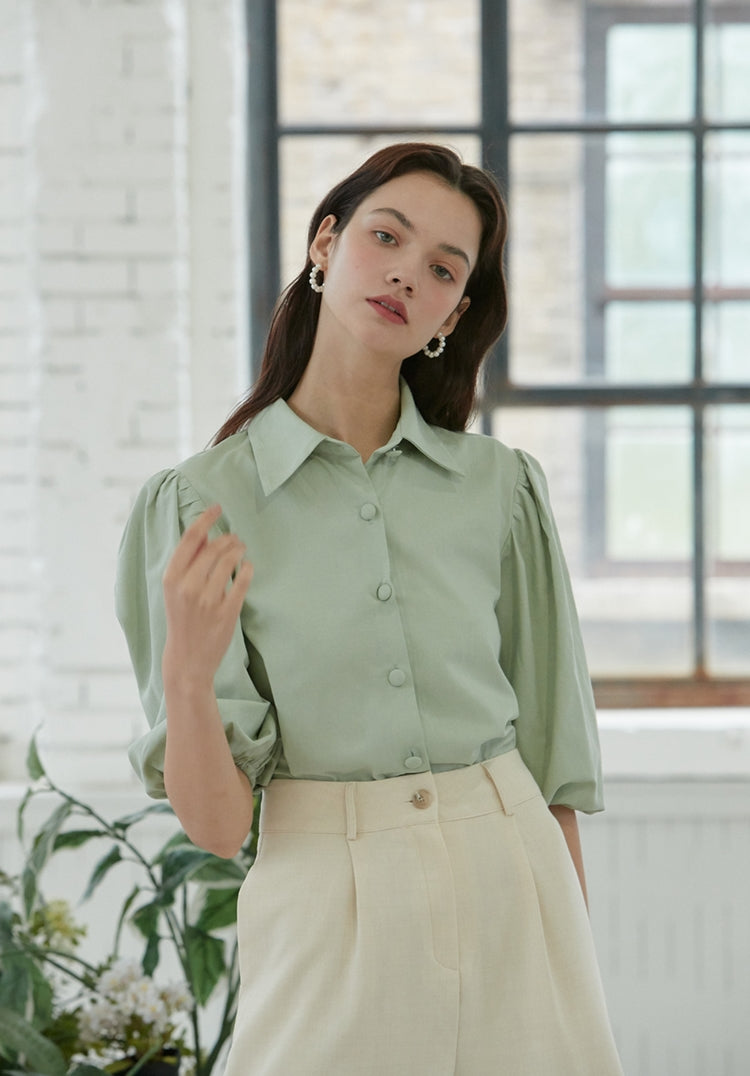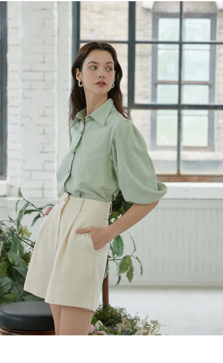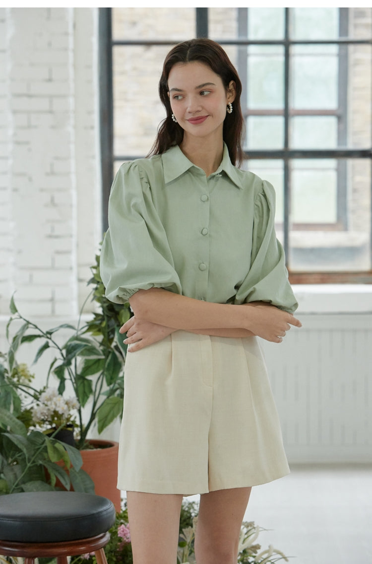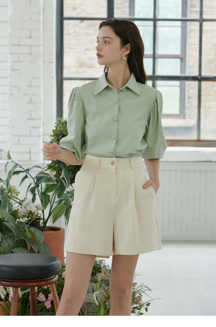 Timeless structure meets feminine charm in Laura Ren’s linen collared blouse. Crafted from breathable and lightweight linen fabric, this tailored button-up top features a classic point collar, full front button closure, and softly gathered puff half sleeves for a modern, elegant silhouette. Designed to transition effortlessly from workwear to weekend, it pairs seamlessly with shorts, skirts, or trousers. Laura Ren’s signature attention to detail and natural fabric choice ensures both comfort and elevated style for warm-weather wardrobes. This versatile blouse is a must-have staple for the contemporary woman.