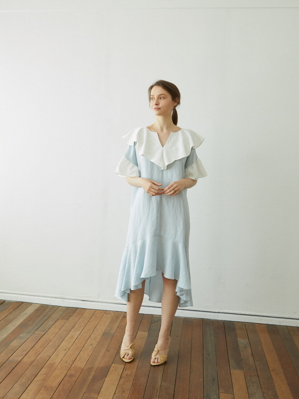 A bold expression of soft femininity, this linen dress by Laura Ren features an oversized ruffle collar that cascades elegantly over the shoulders, adding dramatic volume to a minimalist silhouette. Crafted from breathable, natural linen, this dress includes layered flutter sleeves and an asymmetric hemline that flows with every step. The loose-fit design ensures both comfort and movement, making it perfect for warm-weather occasions or standout daytime dressing. Laura Ren’s attention to sculptural lines and tactile fabric brings this playful yet polished piece to life, offering artful ease for modern romantics.