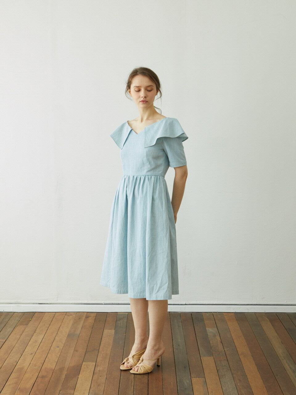This refined linen dress from Laura Ren is designed with a unique sculptural collar that softly frames the shoulders for an elegant touch. The fitted bodice flows into a gathered A-line skirt, creating a balanced silhouette that flatters every figure. Crafted from breathable, high-quality linen, it’s both lightweight and structured, making it perfect for daytime events, garden gatherings, or elevated everyday wear. With a concealed back zipper for clean closure and short sleeves for ease, this Laura Ren creation embodies quiet sophistication and timeless femininity in every detail.