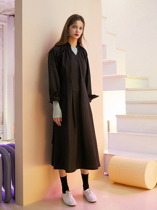 The Laura Ren linen midi dress offers a contemporary yet romantic silhouette, perfect for transitional dressing. Designed with a relaxed fit, the dress features a soft drawstring neckline and gently ruched long sleeves finished with ruffled cuffs. The adjustable waist tie creates subtle shaping, while the midi length delivers graceful coverage. Crafted from breathable linen, it’s ideal for layering or styling solo. Whether worn with sneakers or heels, this versatile piece balances comfort with quiet sophistication, making it an elevated essential in the Laura Ren collection.