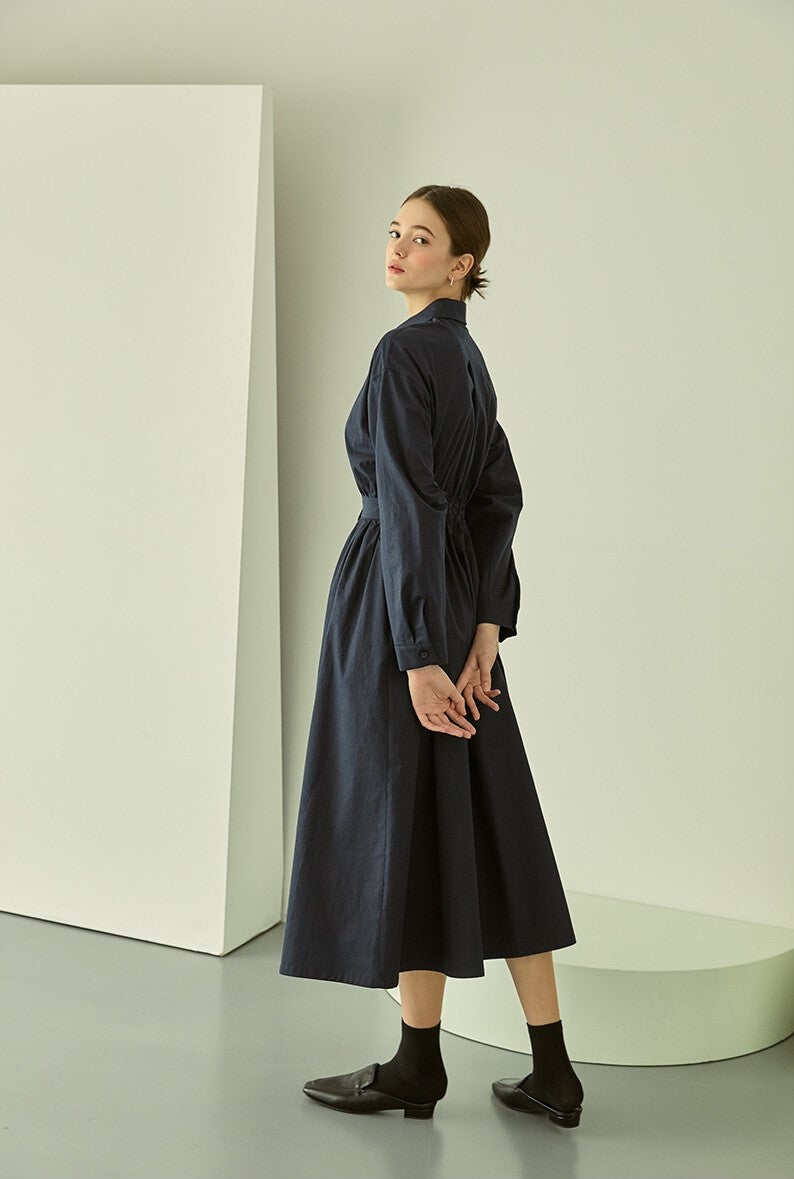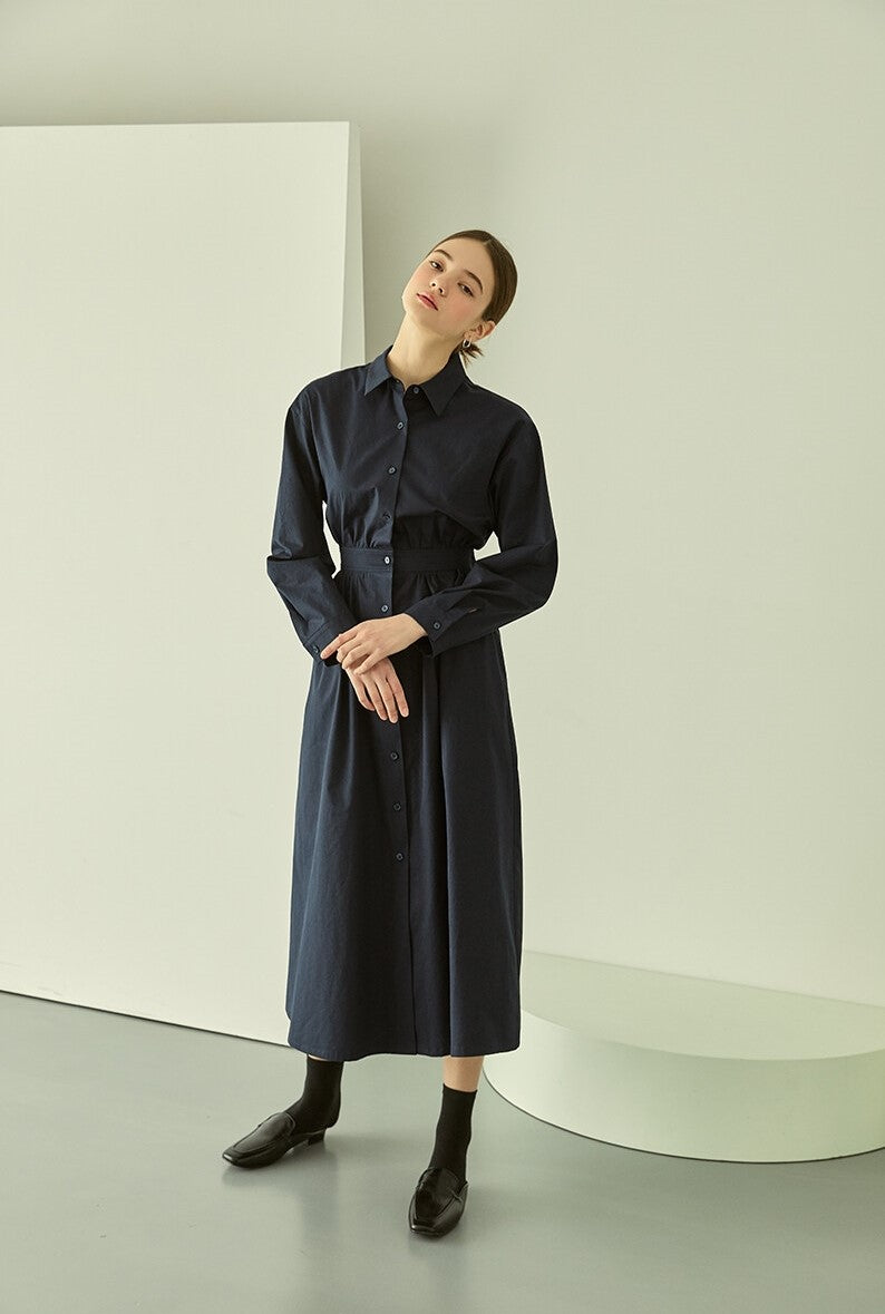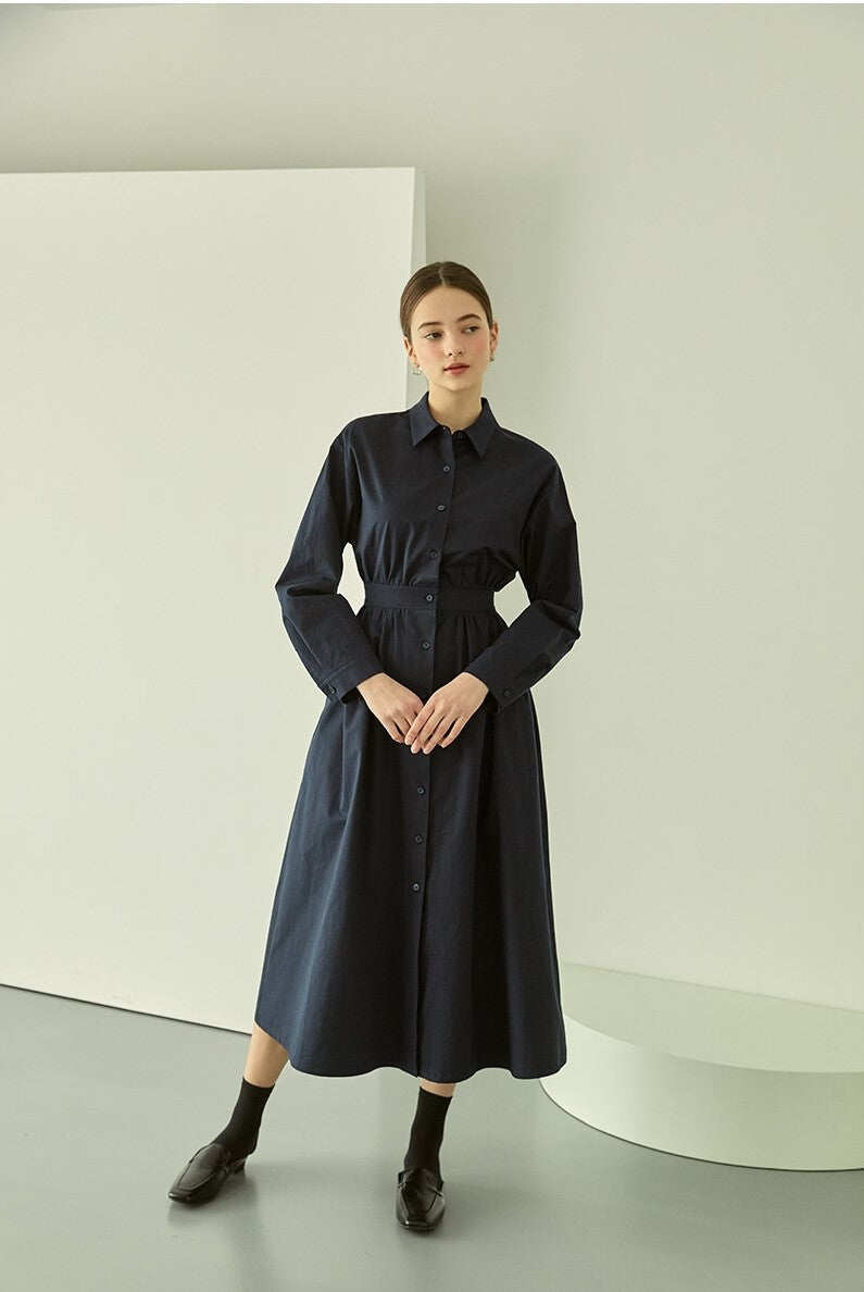 Experience timeless elegance with the cotton poplin midi shirt dress from Laura Ren, crafted for modern sophistication. Made from high-quality cotton poplin fabric, this dress features a full-length button-down front, crisp shirt collar, and long sleeves for a refined silhouette. The tailored waist adds definition while the midi length offers versatile wear from office to evening outings. Lightweight yet structured, this cotton poplin dress by Laura Ren is a wardrobe essential that blends classic style with contemporary comfort, ideal for year-round wear.