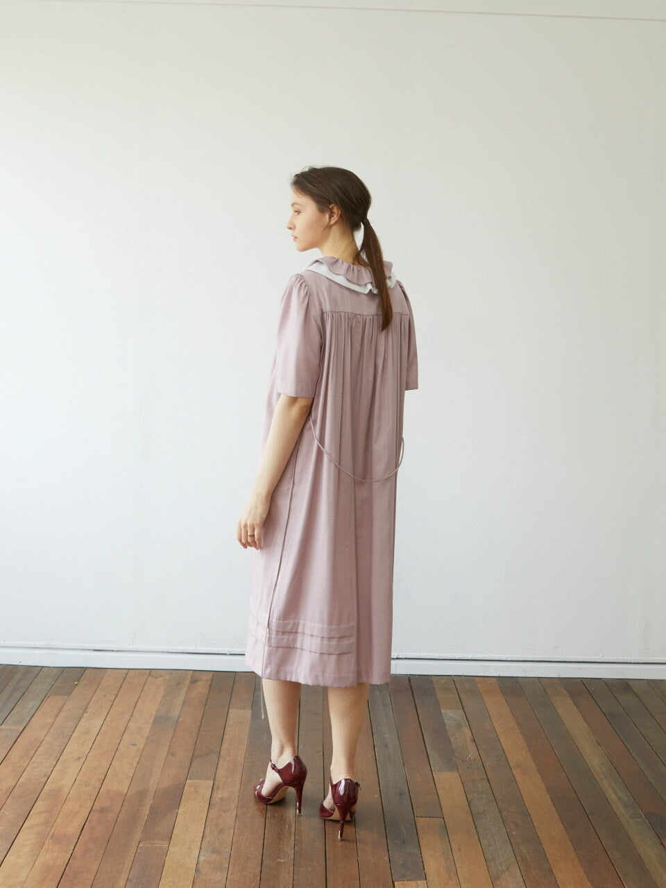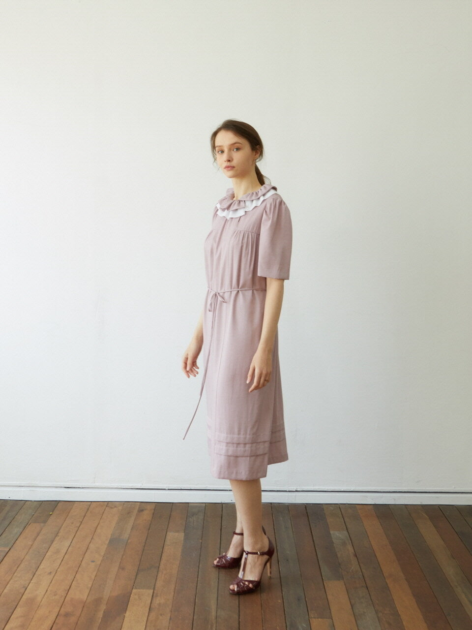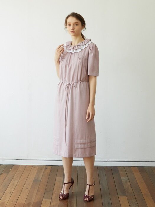 Feminine and refined, this linen midi dress by Laura Ren is a timeless addition to any sophisticated wardrobe. Crafted from breathable, high-quality linen, the dress features a delicately layered ruffle collar, short structured sleeves, and an adjustable tie waist that flatters the silhouette. Soft pleating adds movement, while the hemline is finished with subtle banded detailing for added texture. The design strikes a perfect balance between playful charm and polished elegance. Whether worn to brunch, garden events, or styled for everyday elegance, this Laura Ren piece radiates graceful comfort and enduring style.