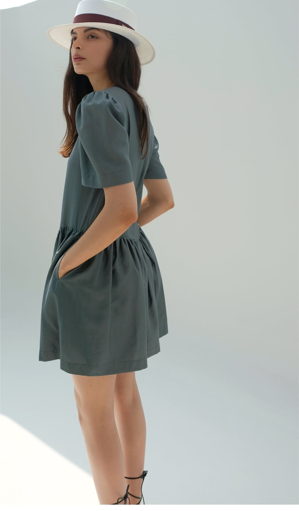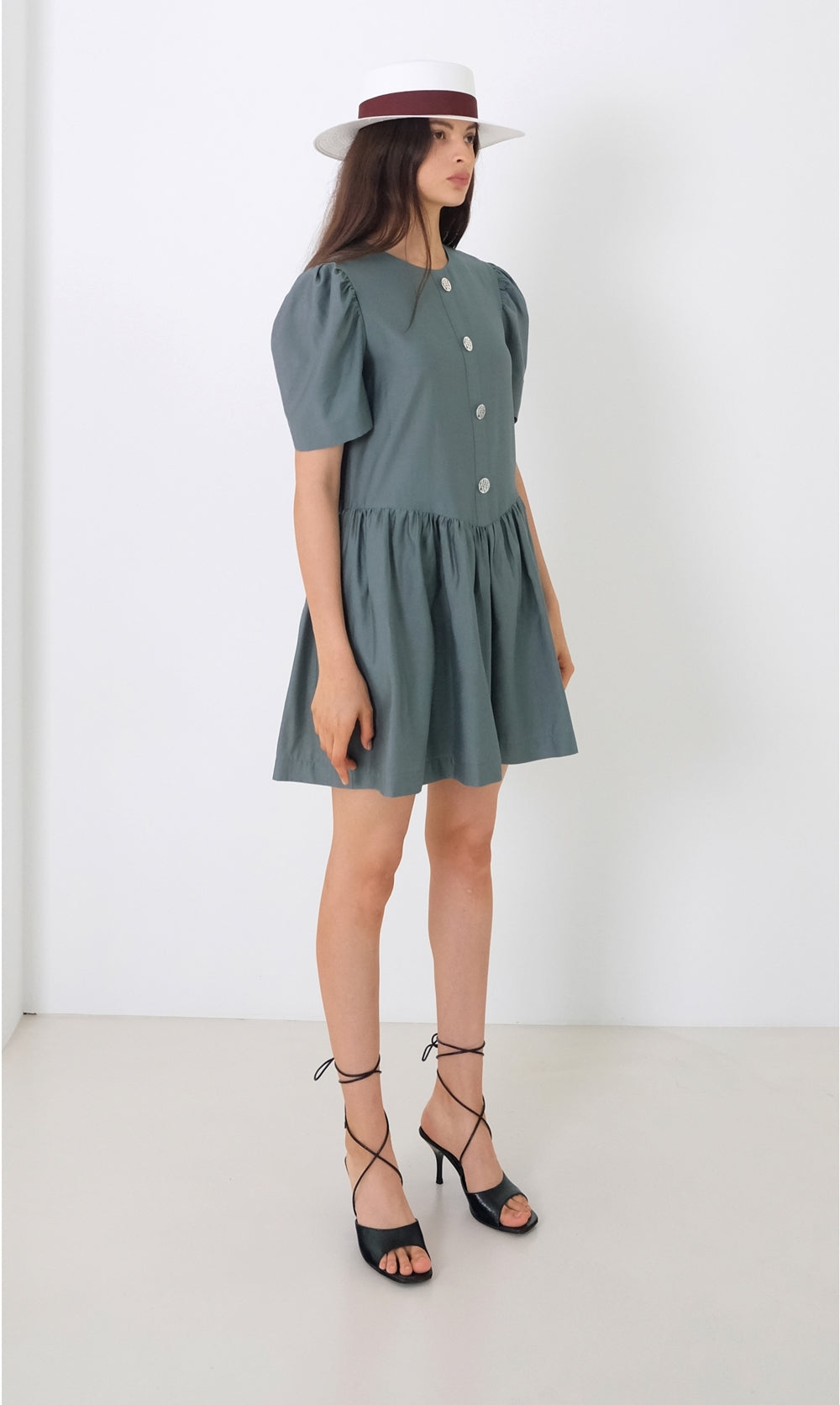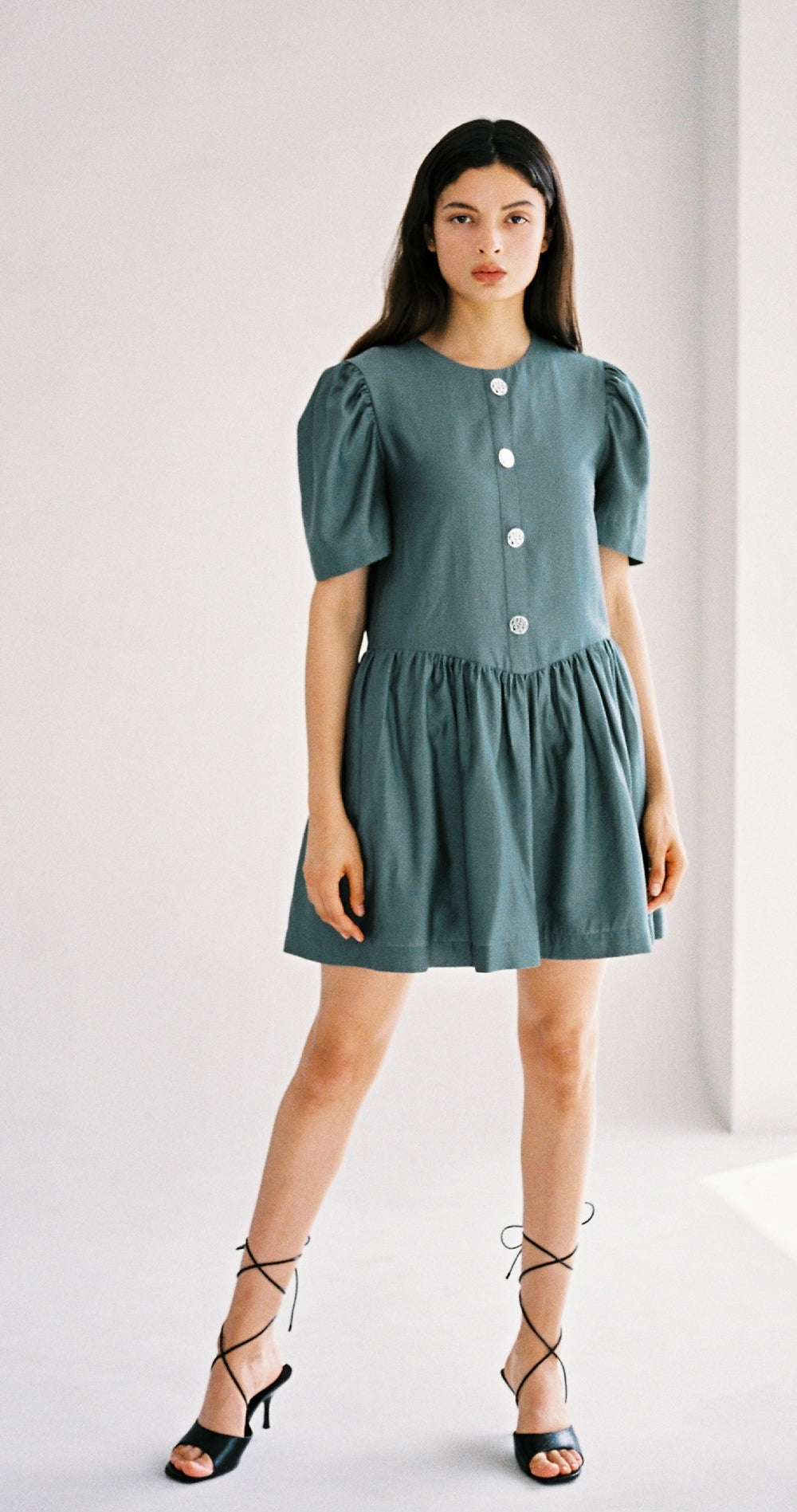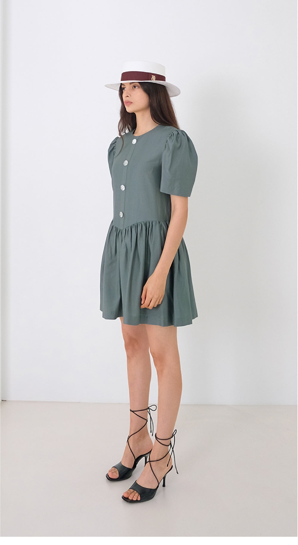 The Laura Ren linen midi dress brings refined charm to everyday wear with its architectural wide collar and elongated silhouette. Crafted in breathable linen, the dress features a sleeveless cut and bold contrast buttons running down the front for a modern finish. The sharp V-neckline flatters the collarbones, while subtle waist shaping and hidden side pockets offer relaxed ease. A gentle V-back completes the silhouette, balancing structure with softness. A minimalist piece with quiet drama, perfect for both city strolls and weekend escapes.