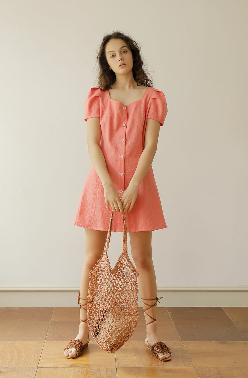 Channel playful femininity with this linen mini dress from Laura Ren, designed in a flattering silhouette with soft puff sleeves and a sweetheart neckline. Crafted from breathable 100% linen, it’s perfect for warm-weather days when comfort and charm are equally essential. The button-front closure adds a classic touch, while the A-line shape gives gentle structure and movement. Ideal for summer dates, picnics, or vacation wear, this Laura Ren linen piece brings a fresh, romantic twist to everyday dressing.