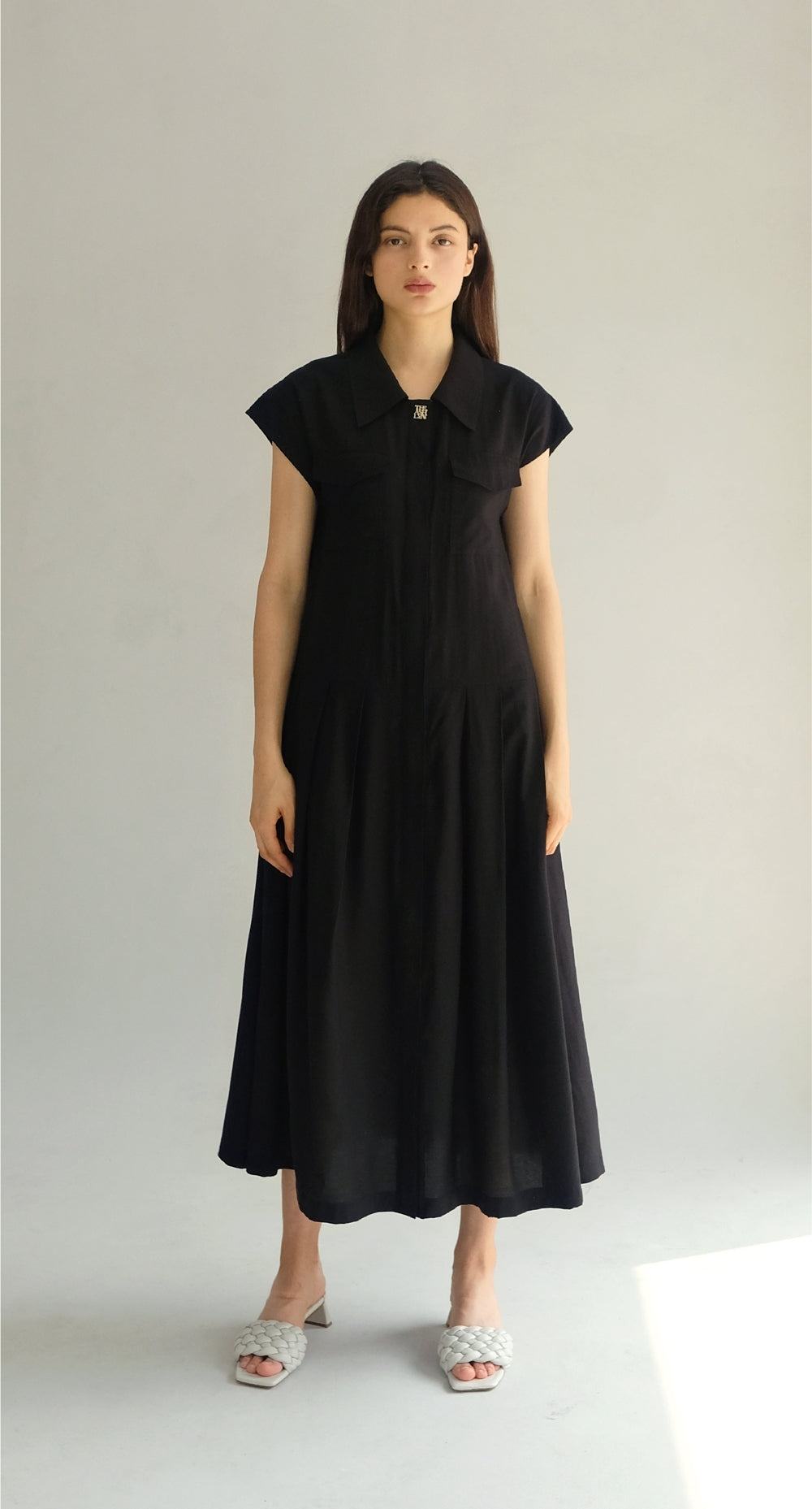 Laura Ren presents this charming linen mini dress, blending playful elegance with minimalist structure. Featuring softly puffed sleeves and a relaxed silhouette, the dress is accentuated by a V-shaped drop waist that flows into a lightly gathered skirt. Five sculptural metallic buttons line the front, lending decorative detail to the clean bodice. Cut from breathable linen, this dress offers effortless comfort and movement—ideal for warm-weather outings or chic casual days. The silhouette is tailored to flatter while maintaining ease, with hidden side pockets and a back zip for a polished finish. Elevate your summer rotation with this versatile, feminine staple by Laura Ren.
