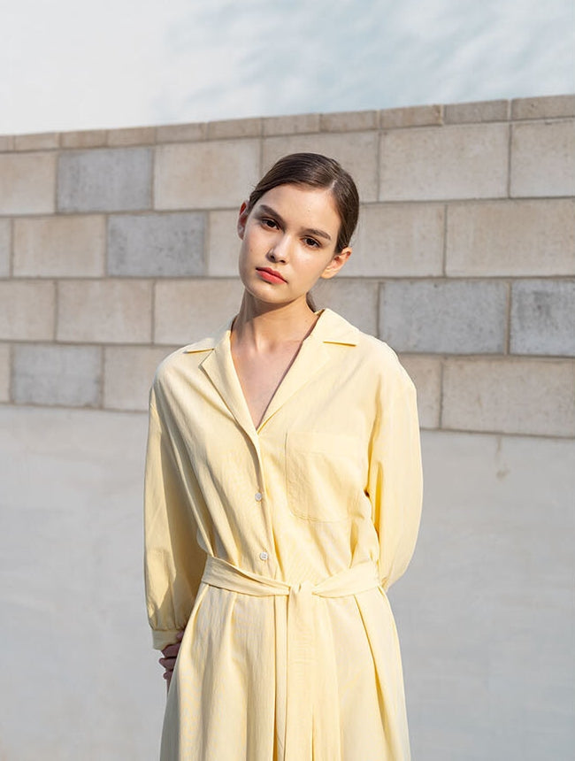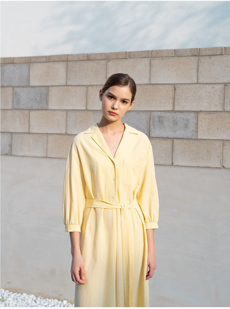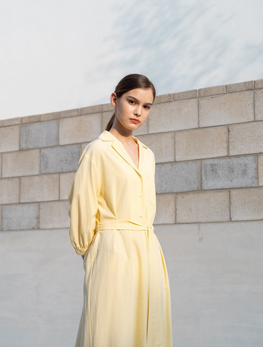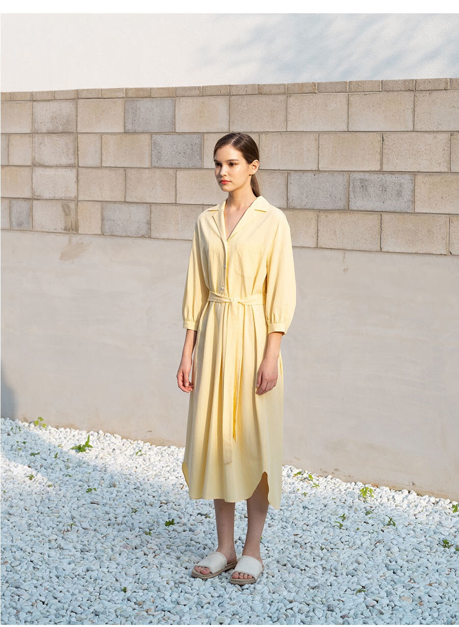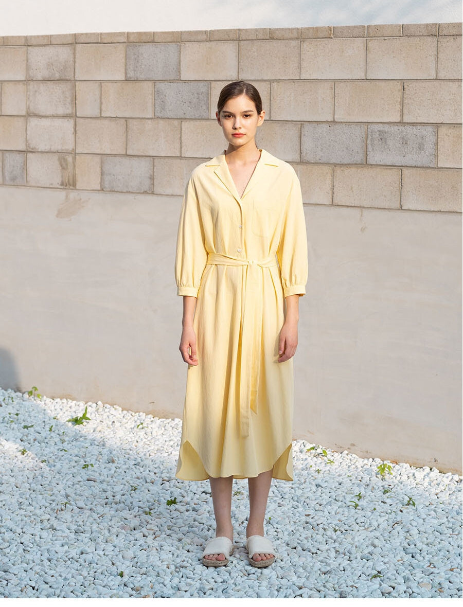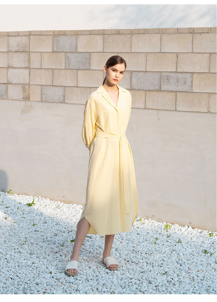 This linen shirt dress by Laura Ren combines classic tailoring with soft femininity for a polished, breathable summer staple. Crafted from natural linen, it features a refined shirt collar, three-quarter sleeves with gentle gathers, and a detachable waist belt to cinch the silhouette. The asymmetric hemline introduces a touch of movement, while the midi length adds grace to both casual and dressed-up occasions. Designed for comfort without compromising sophistication, this Laura Ren dress is a timeless piece that transitions seamlessly from day to night.