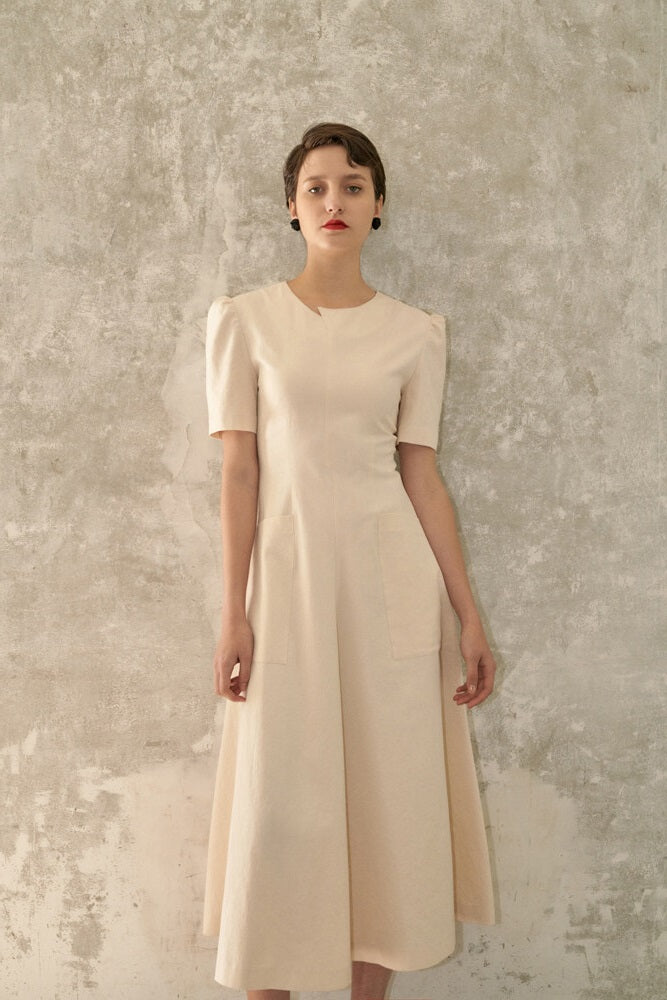 Laura Ren presents an elegant linen dress designed to flatter with timeless simplicity. Crafted from high-quality natural linen, this midi-length piece features structured short sleeves, subtle pleats for graceful movement, and thoughtfully placed front pockets. The tailored silhouette skims the body gently, making it perfect for both minimalist styling and sophisticated layering. A wardrobe essential that transitions effortlessly from day to evening, this dress embodies refined femininity with a modern twist.