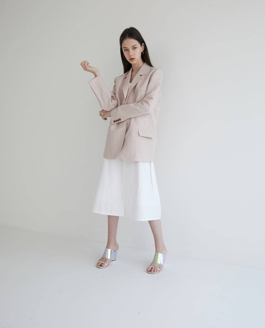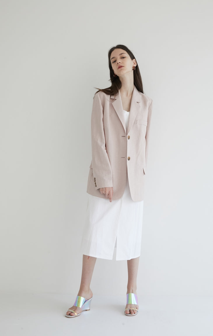 This long-sleeve linen blazer from Laura Ren brings refined softness to structured tailoring. Made from breathable linen, it features clean notch lapels, a two-button front closure, and discreet flap and welt pockets. The soft silhouette offers a relaxed yet polished fit, making it perfect for layering over dresses or separates. Its fluid drape and neutral tone ensure versatility across seasons and occasions. Embrace modern minimalism with the effortless sophistication of this Laura Ren staple, designed to transition seamlessly from workwear to weekend.