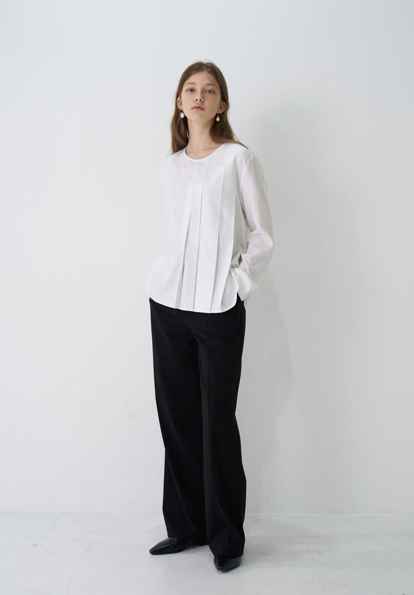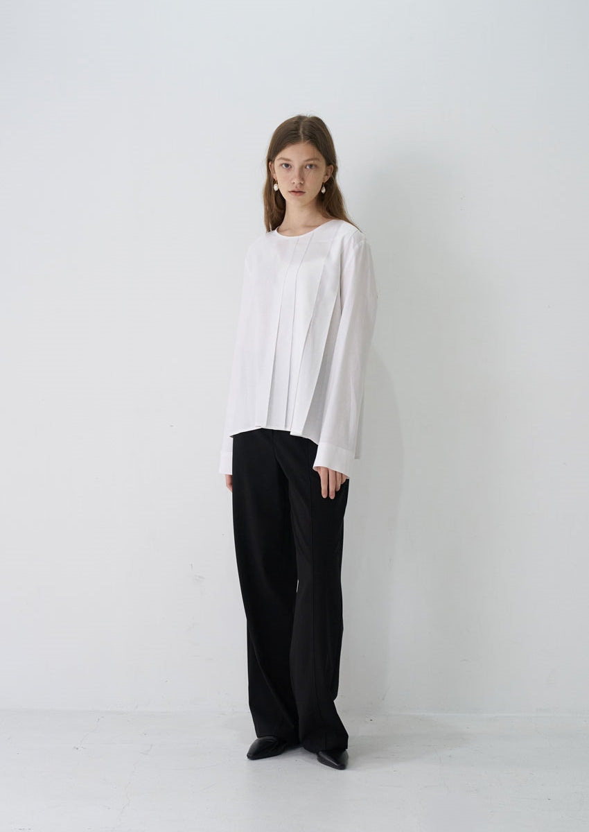 Elevate your essentials with this long sleeve linen blouse by Laura Ren, a refined take on modern minimalism. Crafted from airy, breathable linen, this blouse features a clean round neckline, elongated cuffs, and tailored front pleats that add soft structure without sacrificing flow. The relaxed silhouette offers graceful movement and layering potential, making it an ideal transitional piece for workdays and weekends alike. Whether worn with tailored pants or layered under a blazer, this piece delivers timeless elegance with a contemporary edge.