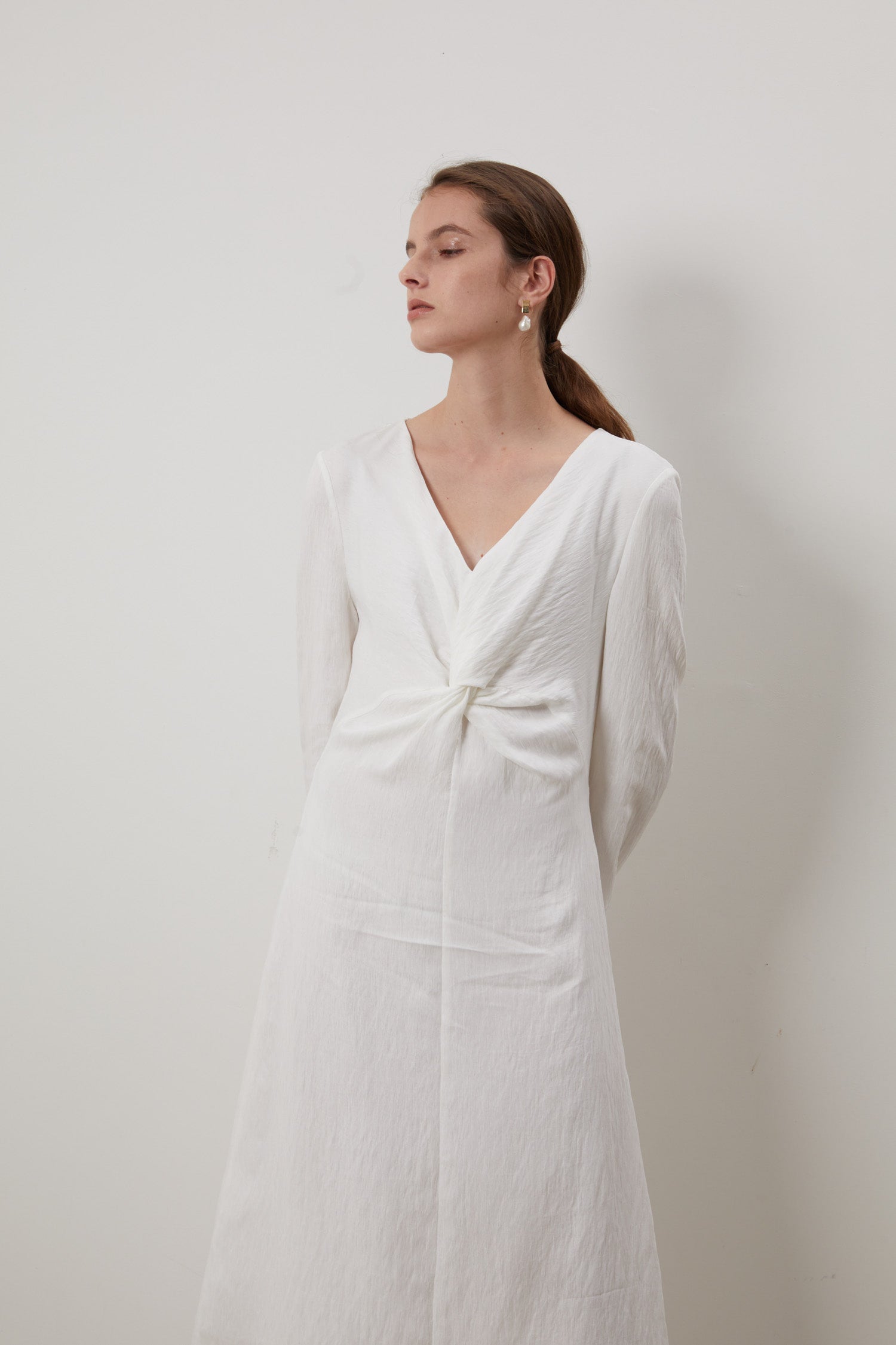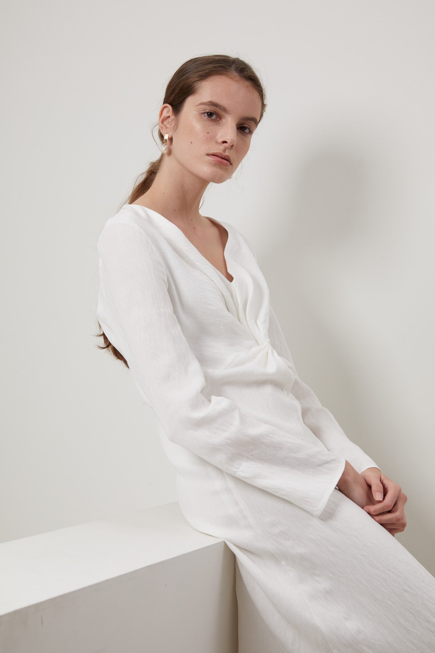 The Laura Ren long sleeve linen midi dress is a refined expression of understated elegance. Crafted from premium breathable linen, this women’s dress features a flattering V-neckline and a sophisticated front knot detail that naturally shapes the waist. The long sleeves and clean, tailored silhouette make it versatile for both day and evening occasions. With its midi length and minimalist design, this linen dress offers effortless style and comfort. Laura Ren’s dedication to quality and timeless design ensures this piece is a chic staple for every sophisticated wardrobe.