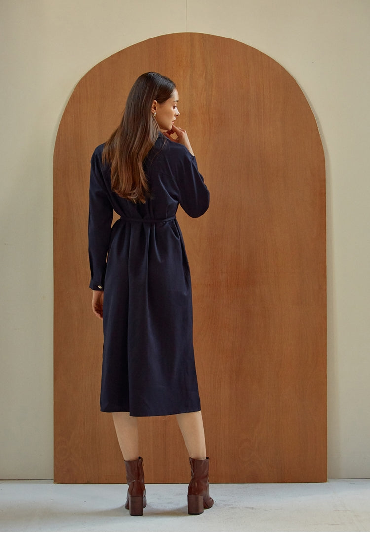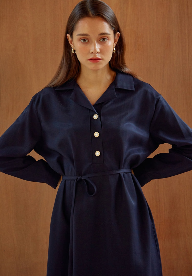 Capture refined elegance with this long sleeve silk midi dress from Laura Ren, crafted from luxurious silk that delivers a soft, flowing drape and timeless sophistication. Featuring a flattering V-neckline with a polished button-front detail, this dress includes an adjustable waist tie that defines the silhouette beautifully. The long sleeves and midi length create a classic, versatile shape ideal for both daytime refinement and evening elegance. Laura Ren’s commitment to exceptional craftsmanship ensures comfort and durability, making this silk dress a standout piece for polished occasions or elevated everyday wear.