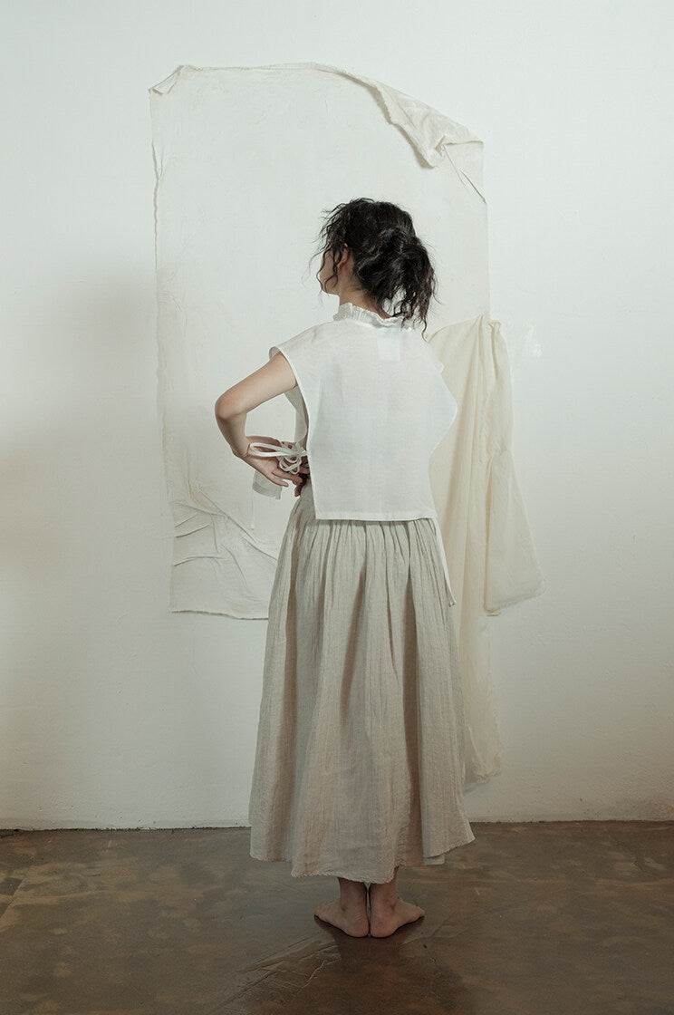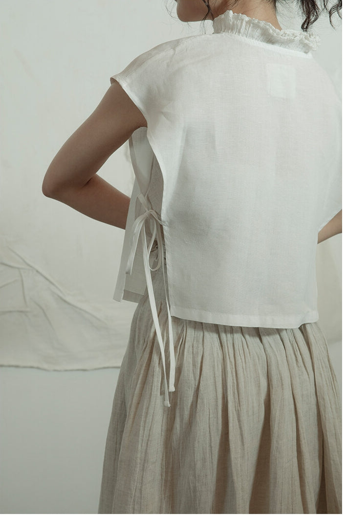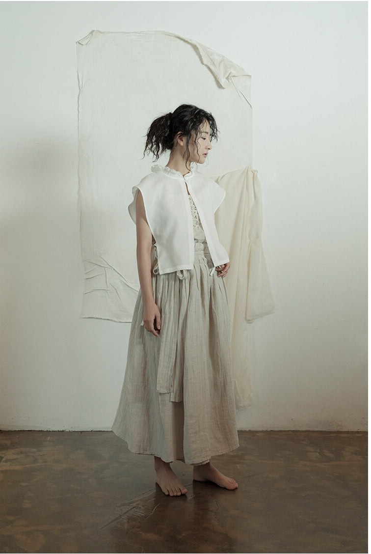 Presentamos el chaleco vintage Marina de lino y algodón, una prenda atemporal que irradia elegancia y sofisticación. Fabricado con una lujosa mezcla de lino y algodón, este chaleco ofrece comodidad y transpirabilidad, realzando cualquier look. Perfecto para quienes buscan un toque de encanto vintage y vanguardista.