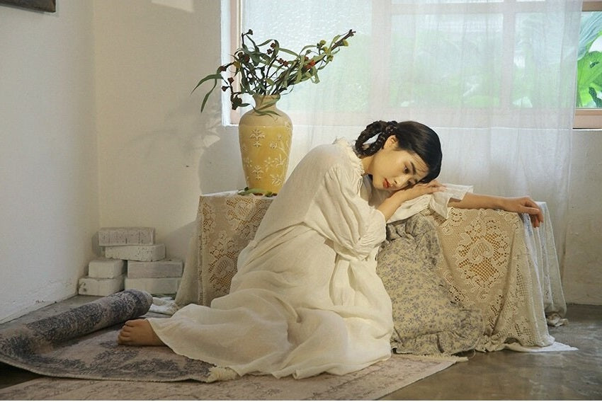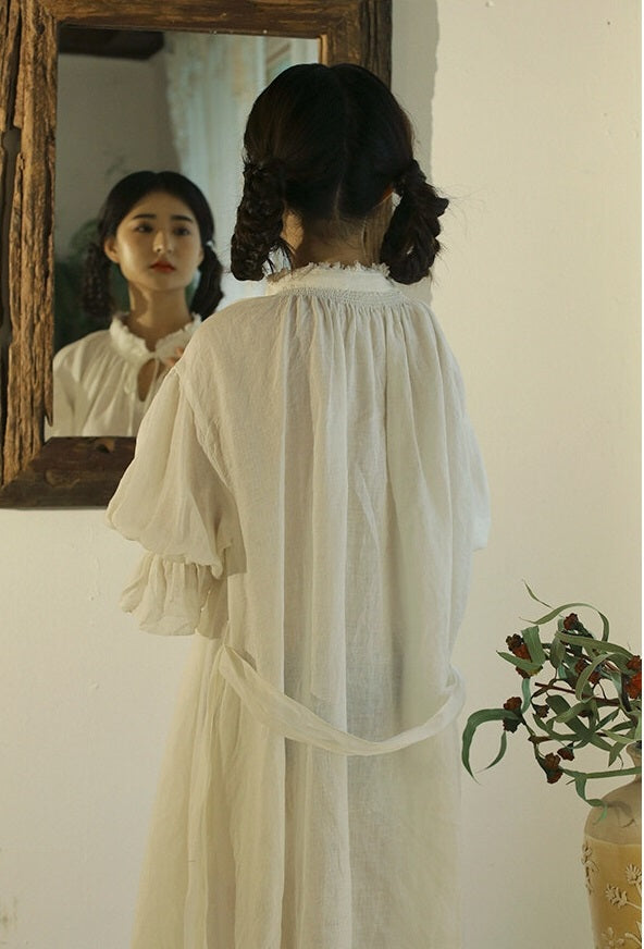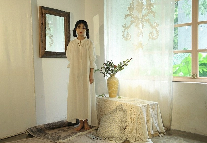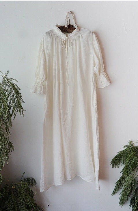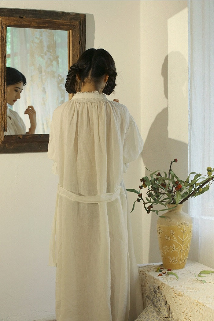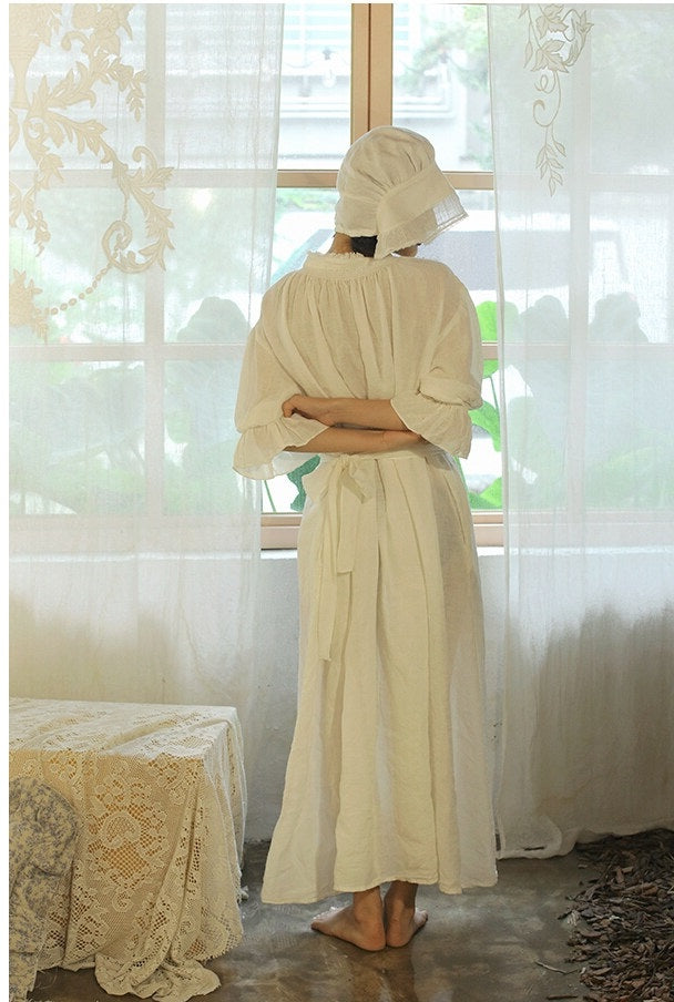 Realza tu estilo con el vestido largo vintage Melissa de lino y algodón con mangas Marie. Confeccionado en una lujosa mezcla de lino y algodón, este vestido irradia sofisticación y elegancia. Su diseño maxi vintage le da un toque de encanto atemporal, mientras que las mangas Marie le dan un toque romántico y femenino. Perfecto para cualquier ocasión, este vestido te hará sentir como un auténtico icono de la moda.