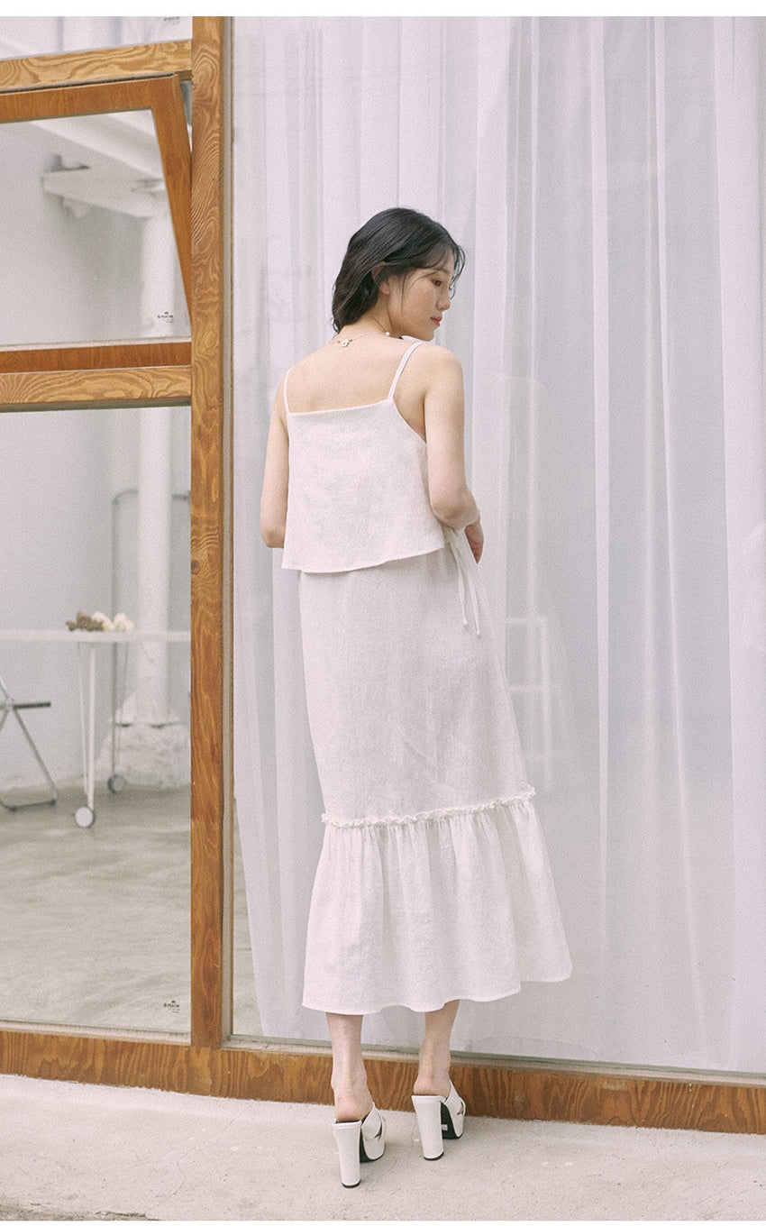 Elevate your warm-weather wardrobe with this breezy, mid-length flared linen skirt by Laura Ren. Crafted from breathable and lightweight linen, this skirt features a refined layered hem that adds texture and volume. Designed with comfort and effortless elegance in mind, it drapes naturally while adjustable side ties ensure a flattering fit. The midi length makes it versatile for both casual outings and elevated daywear, perfect for summer styling. Pair it with minimal sandals and a tucked-in blouse for a polished look or keep it laid-back with a tank top and flats. Laura Ren combines timeless design with fabric-forward craftsmanship in this chic piece that’s ideal for refined seasonal dressing.