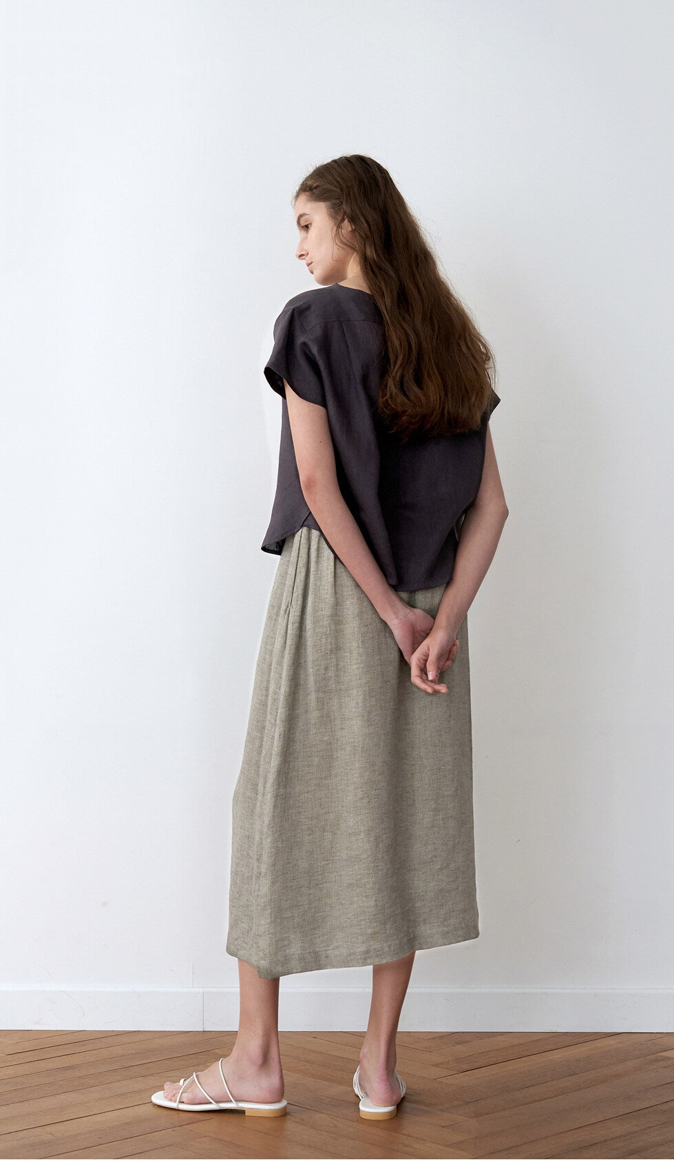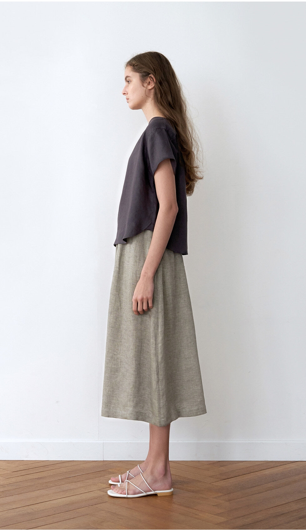 This midi-length linen skirt from Laura Ren delivers timeless ease with a softly structured silhouette. Crafted from breathable linen, it features subtle pleats at the waist and a gentle flare that moves with fluid grace. The elastic waistband offers all-day comfort while maintaining a clean, polished look. Its heathered texture and neutral hue make it a versatile foundation for styling with cropped tops, oversized blouses, or lightweight knits. A staple in the Laura Ren collection, this skirt transitions effortlessly from warm days to layered looks in cooler seasons.