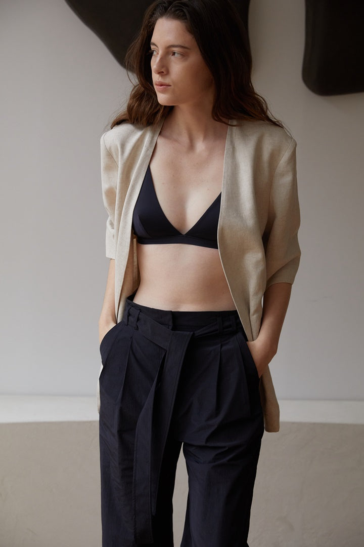 This natural linen blouse by Laura Ren is the epitome of relaxed tailoring. Designed with a minimalist open-front silhouette, it features elbow-length sleeves, a clean collarless neckline, and structured yet breathable fabric. The tailored cut offers both sophistication and comfort, making it a versatile piece for layering over camisoles or pairing with trousers for a refined everyday look. Its neutral tone and timeless design make it ideal for minimalist wardrobes and capsule collections. Crafted from 100% natural linen, this blouse reflects Laura Ren’s commitment to elevated essentials and conscious dressing.