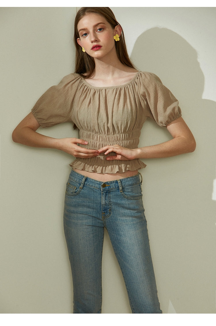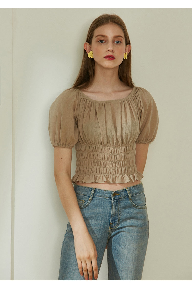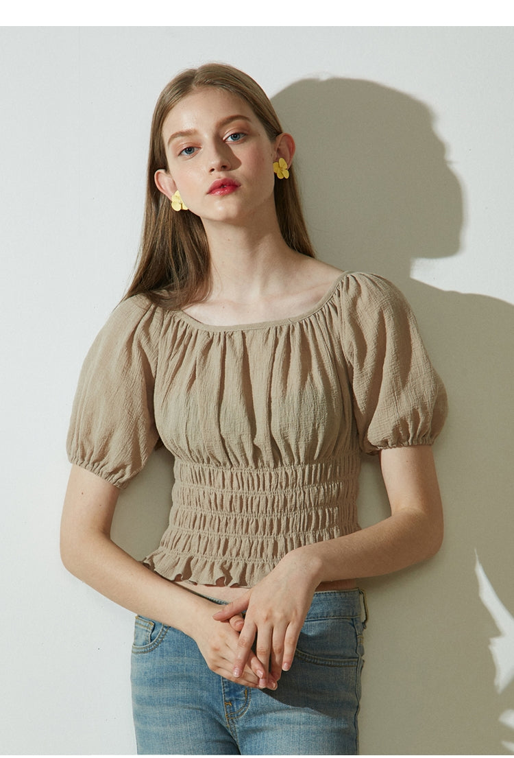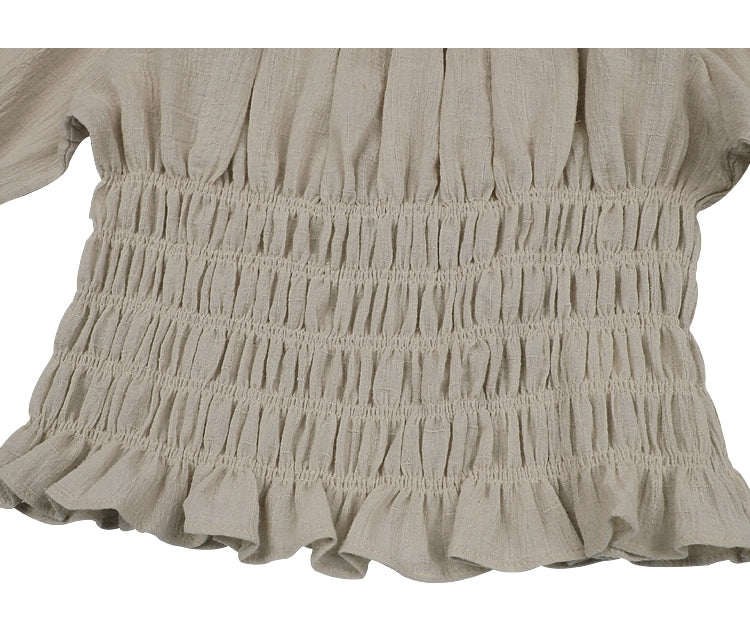 Crafted from breathable linen with a soft texture, this shirred blouse by Laura Ren is a go-to piece for refined comfort and effortless style. Designed with voluminous puff sleeves and an elasticized off-shoulder neckline, it offers a romantic yet casual silhouette. The wide shirred waistband cinches the waist while providing flexible comfort, and the ruffled hem adds a playful finish. Perfect for sunny days, this linen blouse pairs beautifully with high-waisted trousers, skirts, or shorts. A wardrobe essential from Laura Ren that blends easy elegance with airy sophistication.