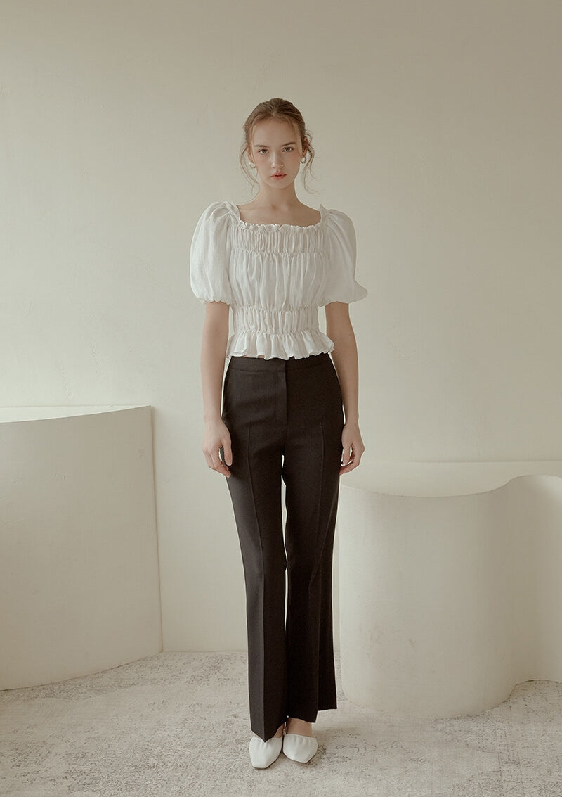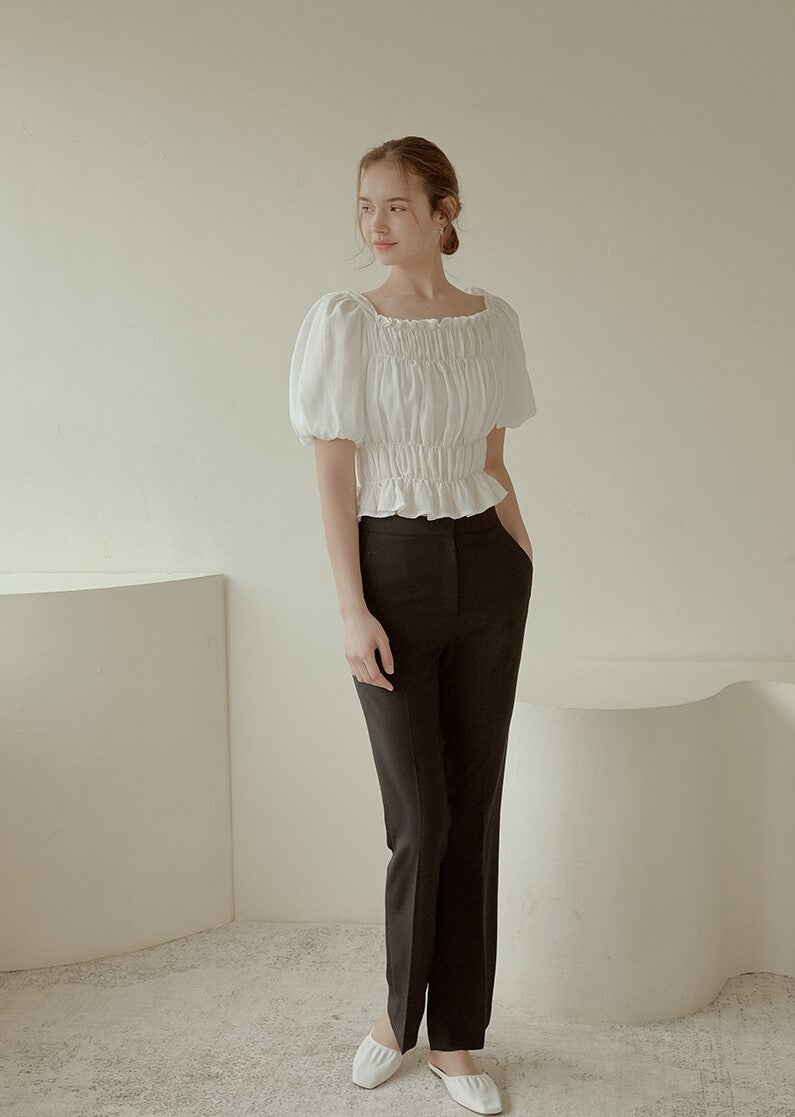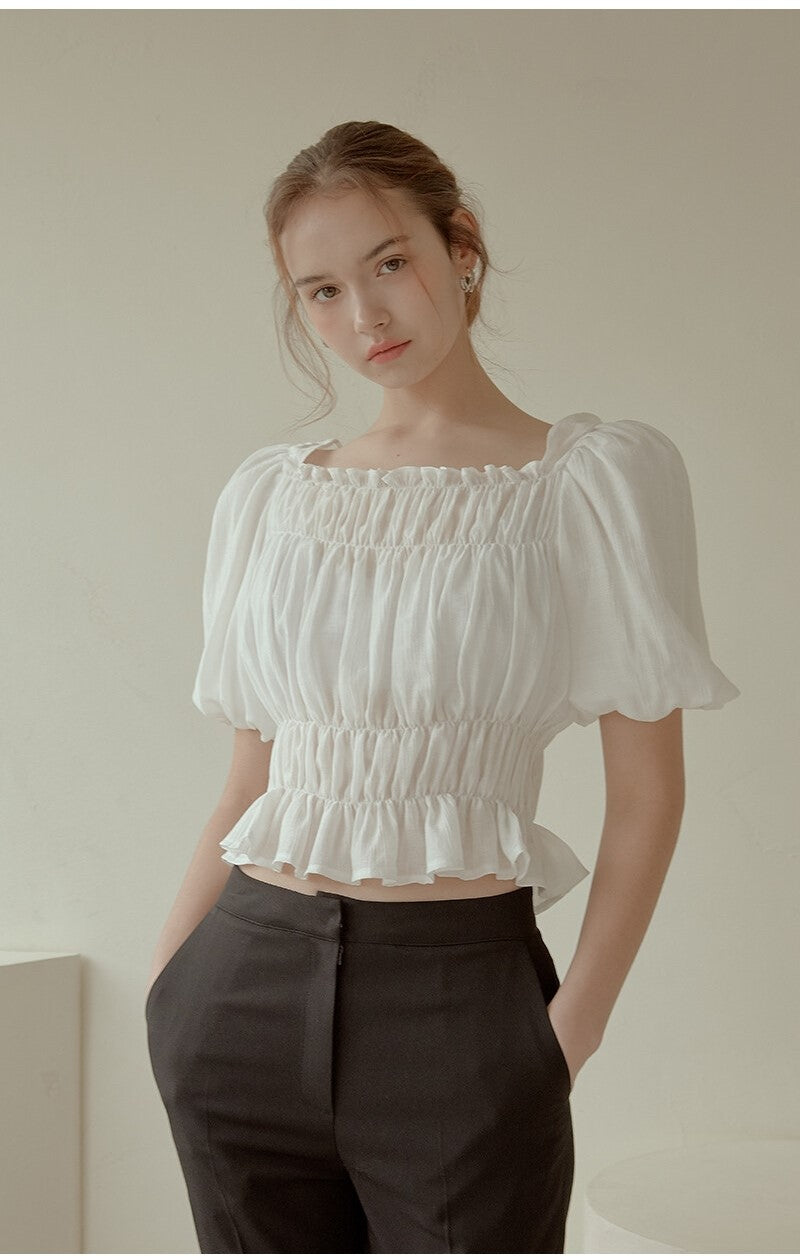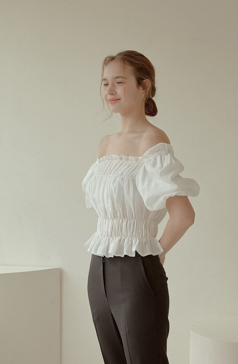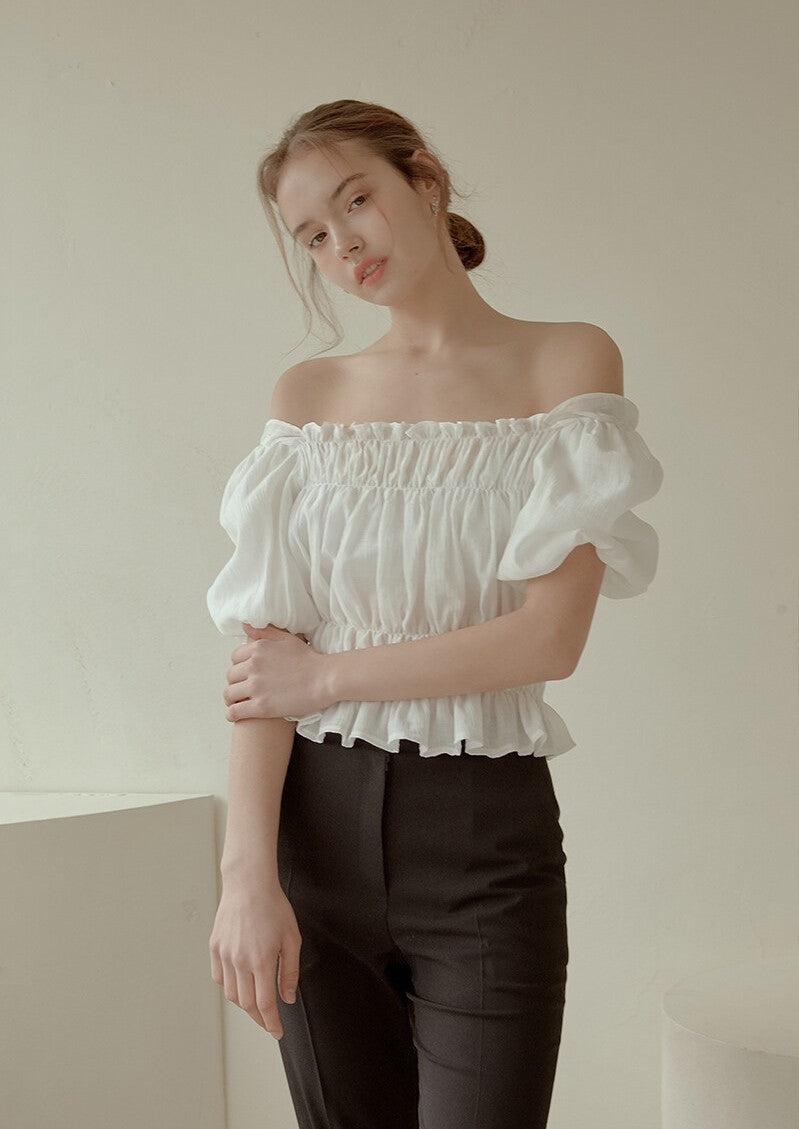 Embrace effortless elegance with this off-shoulder smocked linen top by Laura Ren, designed to elevate your casual and occasionwear looks. Crafted from breathable, high-quality linen fabric, this blouse features a flattering smocked bodice, voluminous puff sleeves, and a delicately ruffled hem for a graceful silhouette. The off-shoulder neckline adds a romantic touch, making it perfect for warm-weather styling. Whether paired with tailored trousers or denim, this piece offers a sophisticated yet relaxed fit. Ideal for summer outings, brunch dates, or vacation wardrobes, this linen top captures timeless charm with contemporary flair.