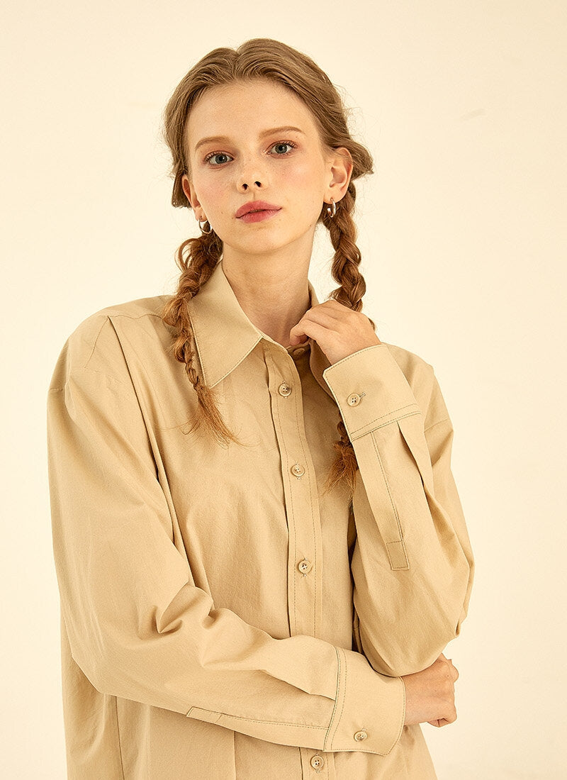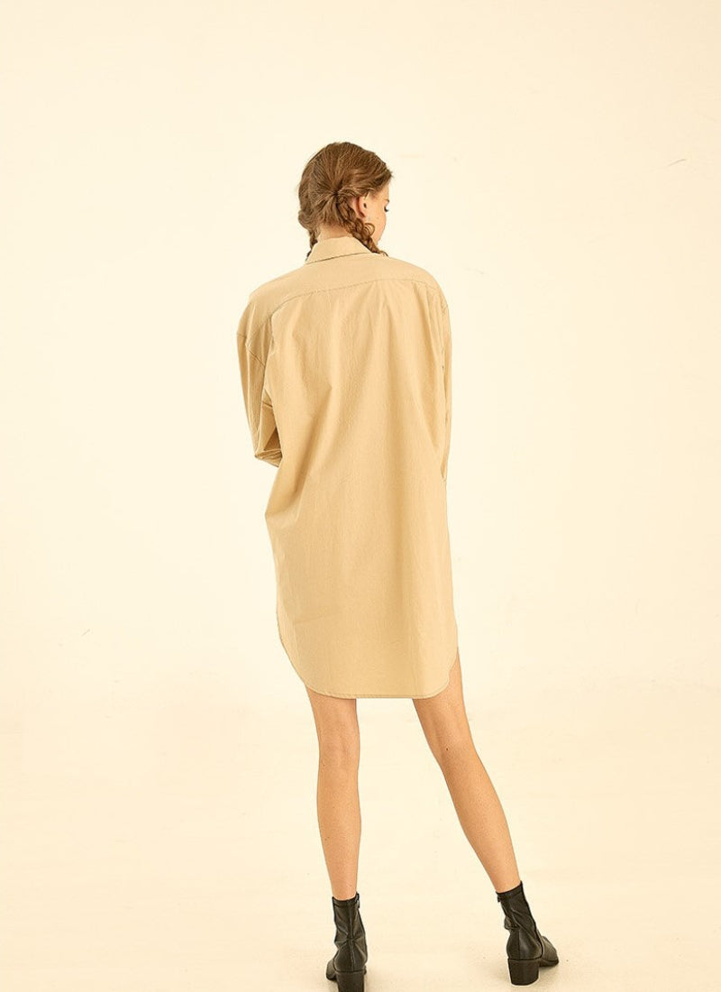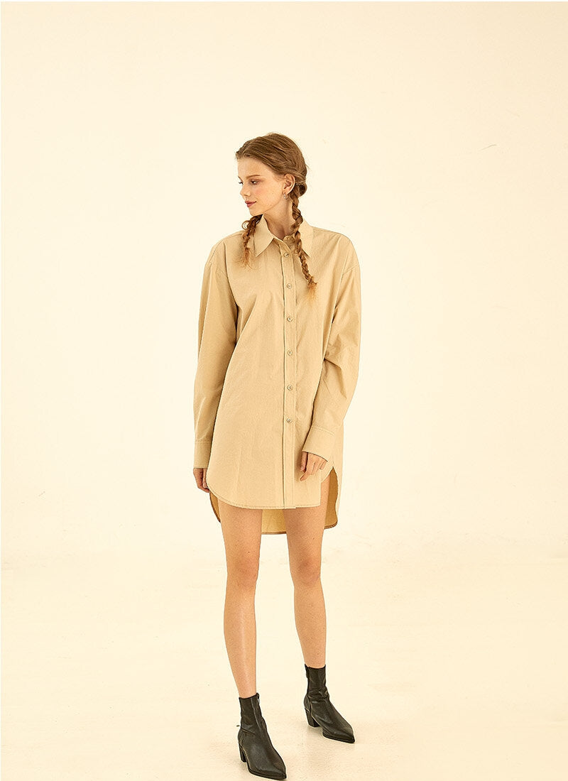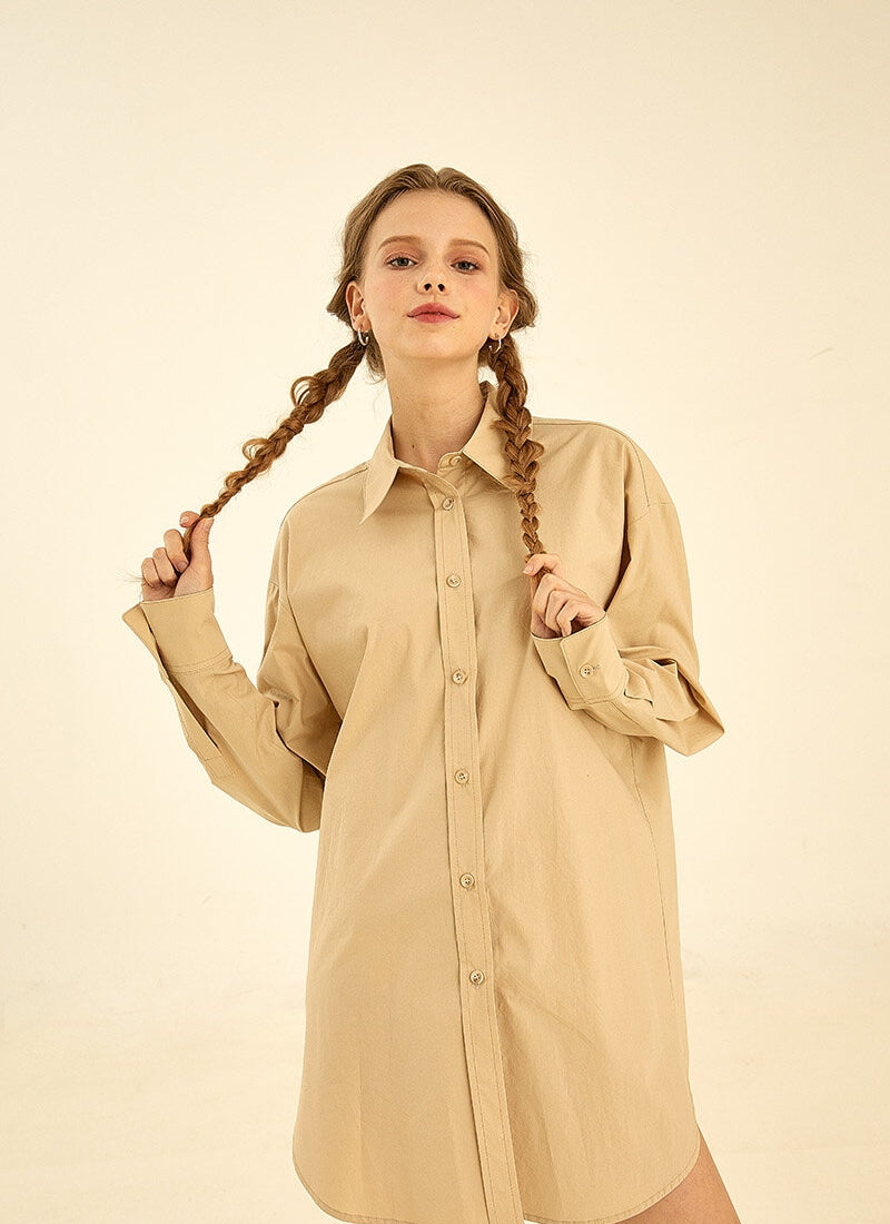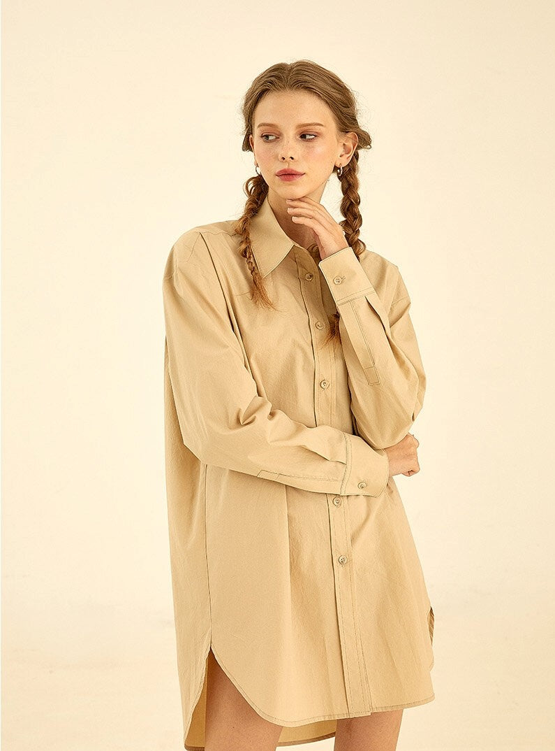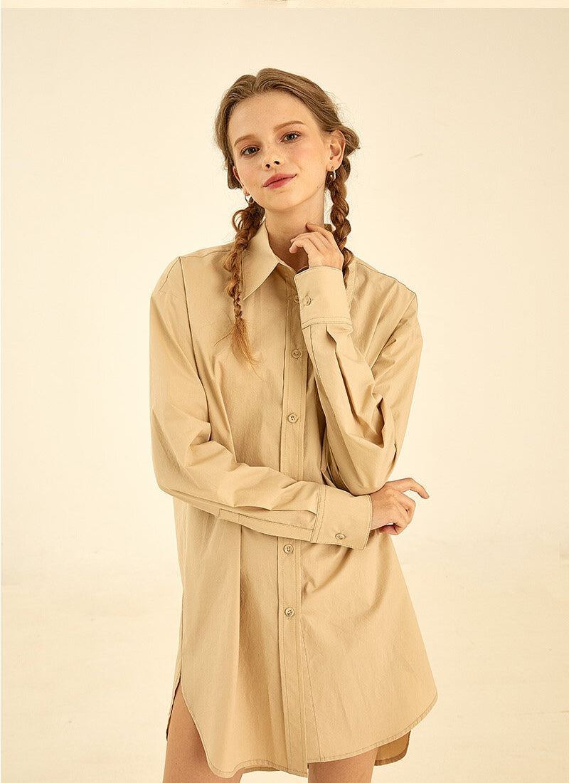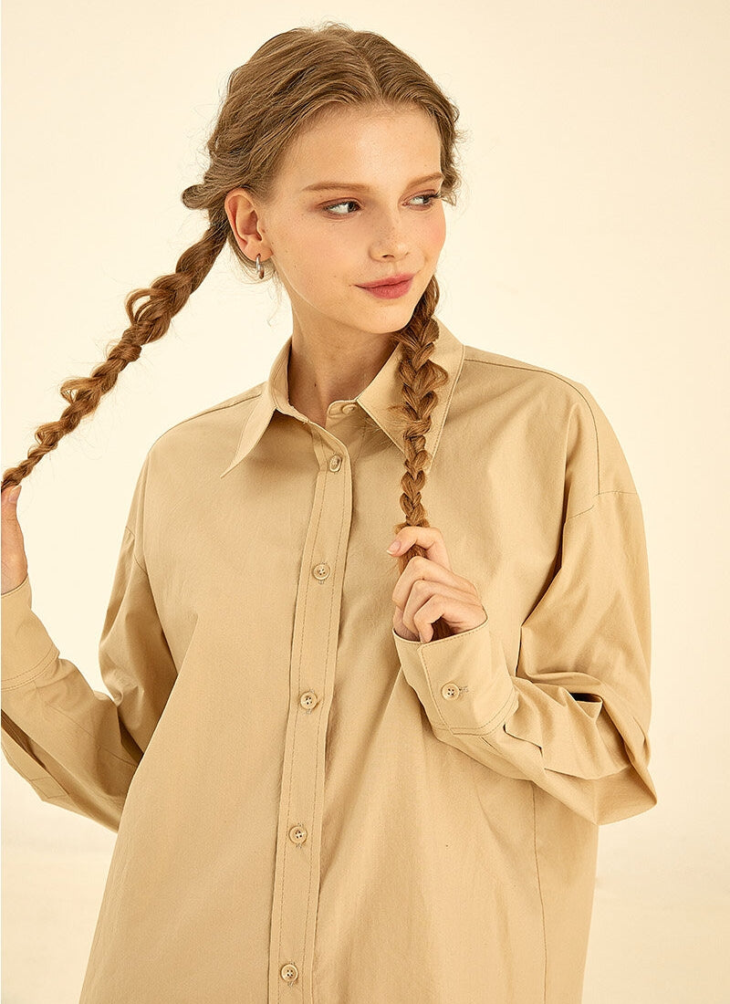 Channel effortless elegance with this oversized cotton poplin shirt from Laura Ren. Expertly crafted from crisp, breathable cotton poplin, this long-sleeve shirt features a pointed collar, button-down closure, and a high-low curved hem for contemporary flair. The relaxed silhouette drapes beautifully, offering comfort without compromising on style. Whether worn as a shirt dress, layered over leggings, or paired with boots for an urban edge, this Laura Ren design delivers versatile sophistication. A wardrobe essential for those who value premium quality and timeless minimalist fashion.