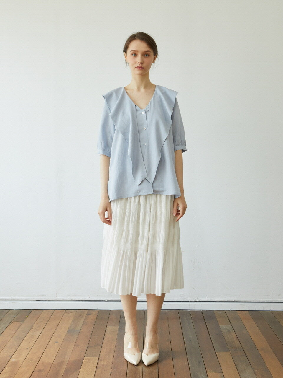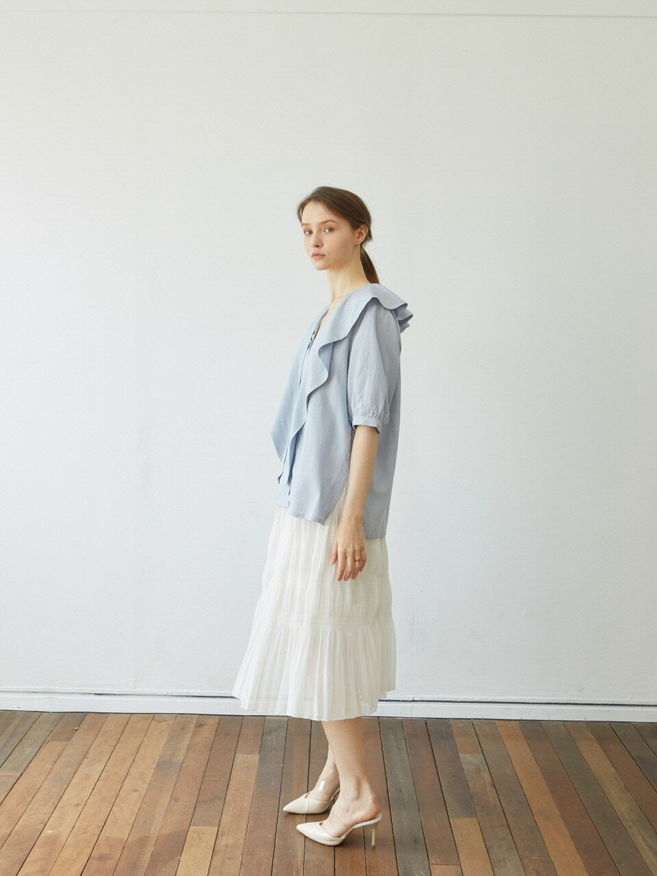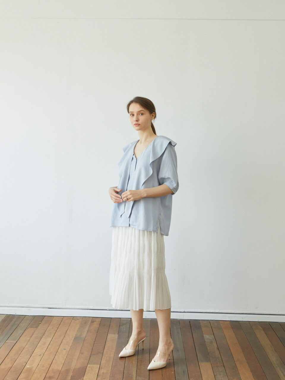 Designed for light elegance, this pleated linen midi skirt by Laura Ren features a beautifully textured silhouette that moves with ease. Crafted from breathable linen, the skirt is detailed with horizontal paneling and soft pleats that enhance flow and dimension. The elasticated waistband offers comfort while maintaining a tailored look, making it ideal for day-to-evening styling. Perfect with both crisp blouses and relaxed tops, this skirt reflects Laura Ren’s refined aesthetic, marrying artisanal fabric with timeless femininity.