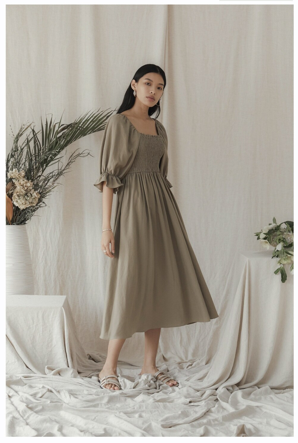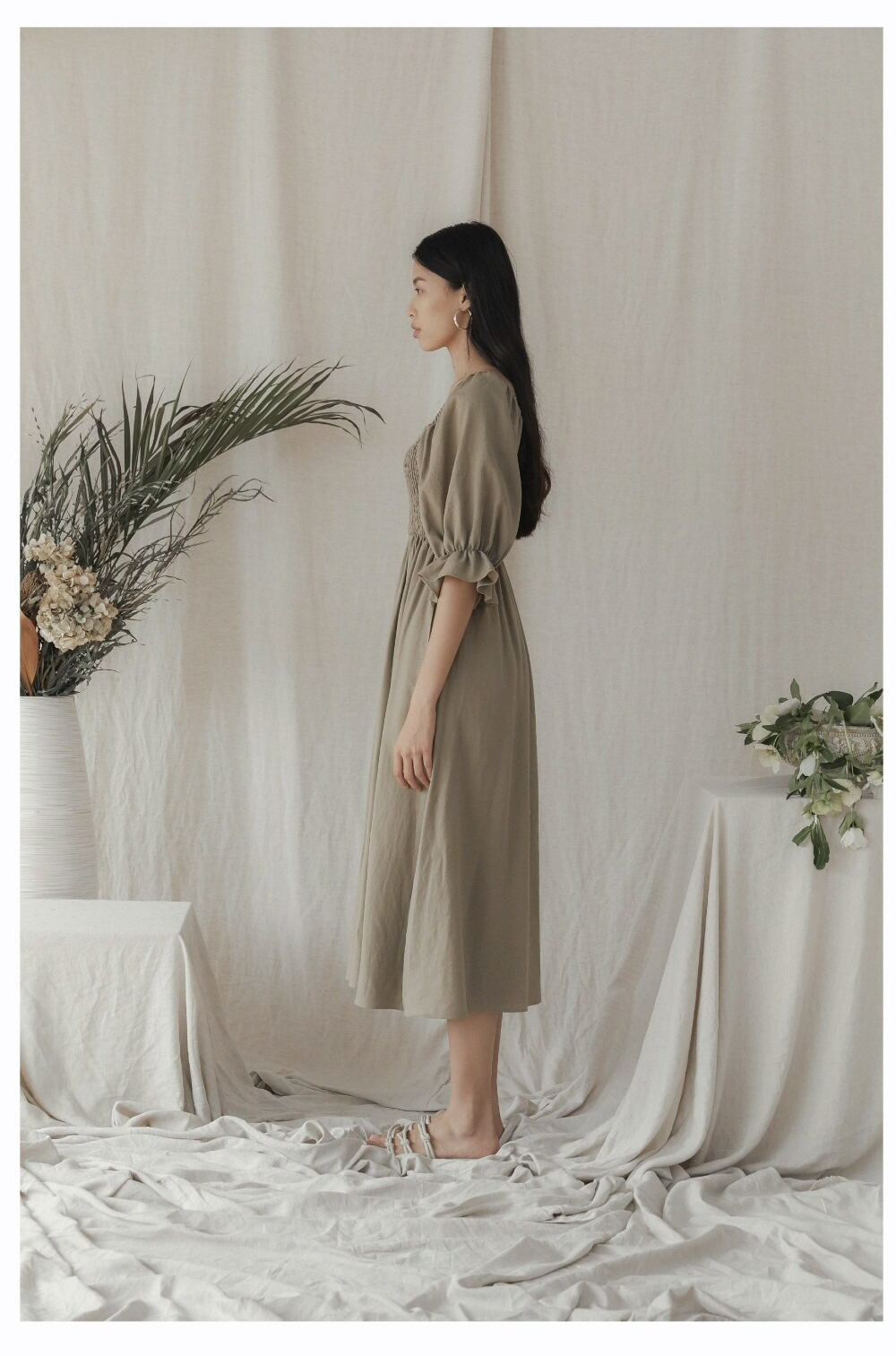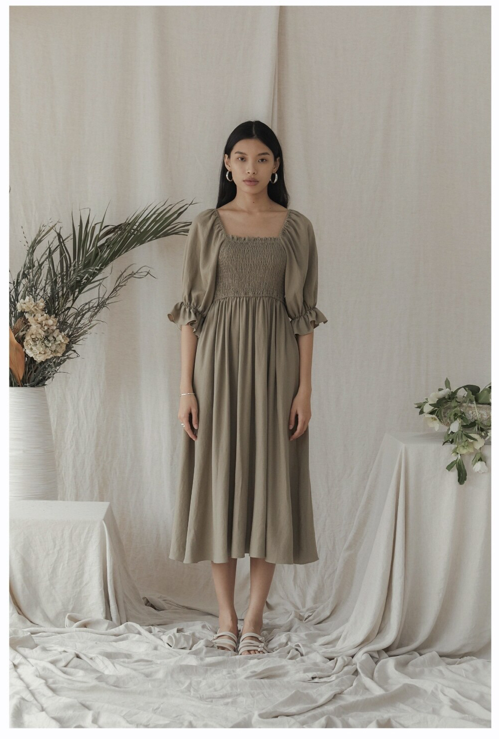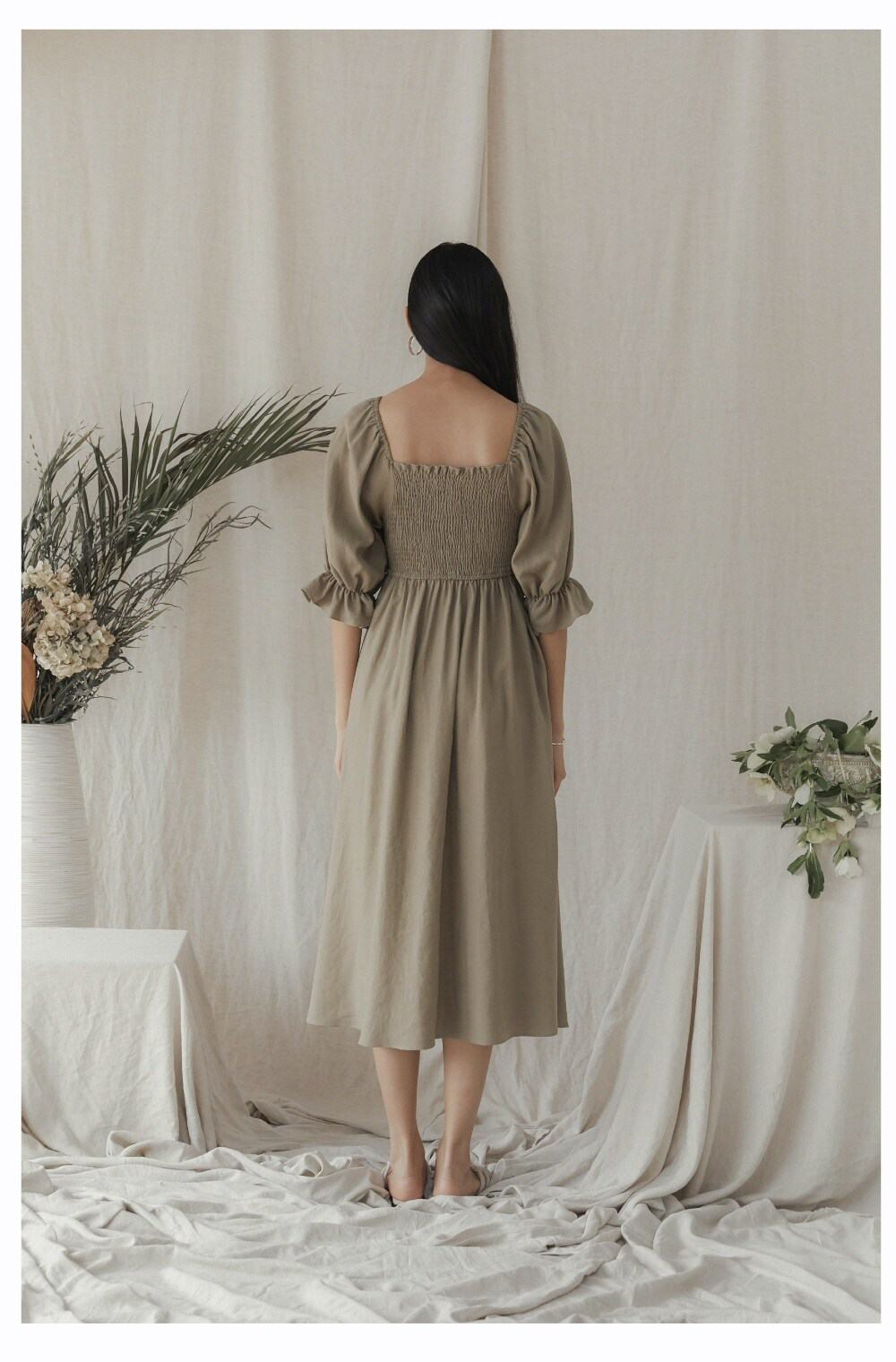 Laura Ren presents a timeless midi dress crafted from breathable linen, designed for the effortlessly elegant woman. Featuring soft shoulder straps tied into bows, a flattering square neckline, and pleated detailing at the hem, this dress combines classic charm with a modern silhouette. Ideal for garden parties or weekend escapes, its lightweight construction ensures comfort in every step. Pockets add functional style, making it as practical as it is beautiful.