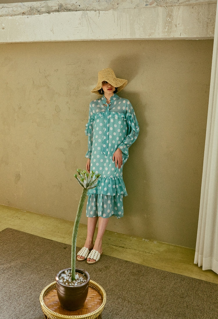 Channel vintage-inspired elegance with this polka dot chiffon midi dress from Laura Ren, crafted from airy, lightweight chiffon that drapes beautifully and moves with grace. Featuring a playful polka dot pattern, this dress is designed with a delicate bow tie neckline, long puff sleeves with gathered cuffs, and romantic ruffle trim across the bodice and sleeves. The flowing midi length adds timeless charm, perfect for brunches, garden parties, or vacation escapes. Laura Ren’s commitment to exquisite craftsmanship ensures both comfort and standout style, making this chiffon dress a dreamy addition to your wardrobe.