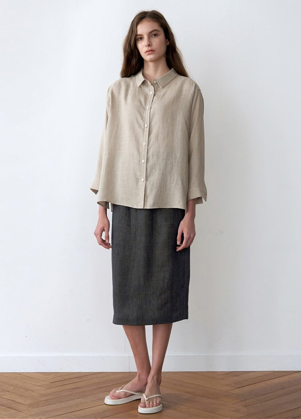 Effortlessly refined, this linen shirt from Laura Ren is designed with a relaxed silhouette and timeless detailing. Made from breathable, natural linen, it features a classic collar, full button front, and gently dropped shoulders for an easy, fluid drape. The three-quarter sleeves add a versatile, transitional element, while the soft neutral tone pairs beautifully with everything from tailored skirts to casual trousers. Whether styled tucked in or worn loose, this Laura Ren linen shirt delivers understated sophistication and everyday comfort for the modern minimalist wardrobe.