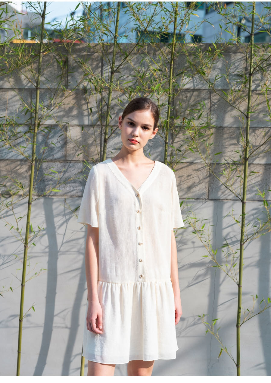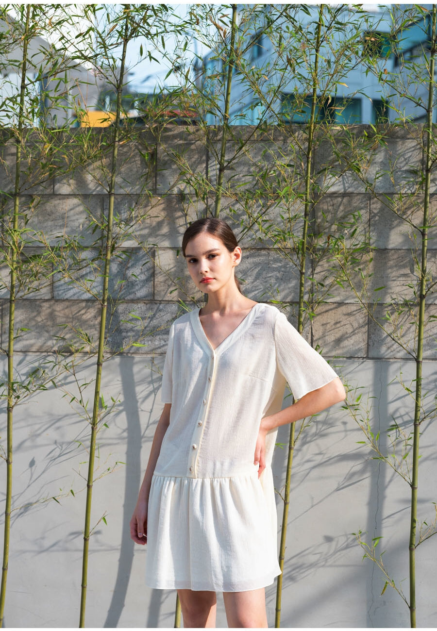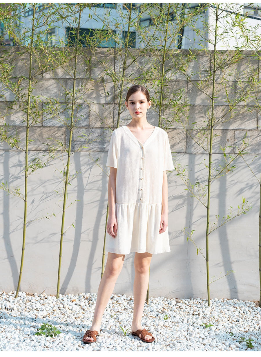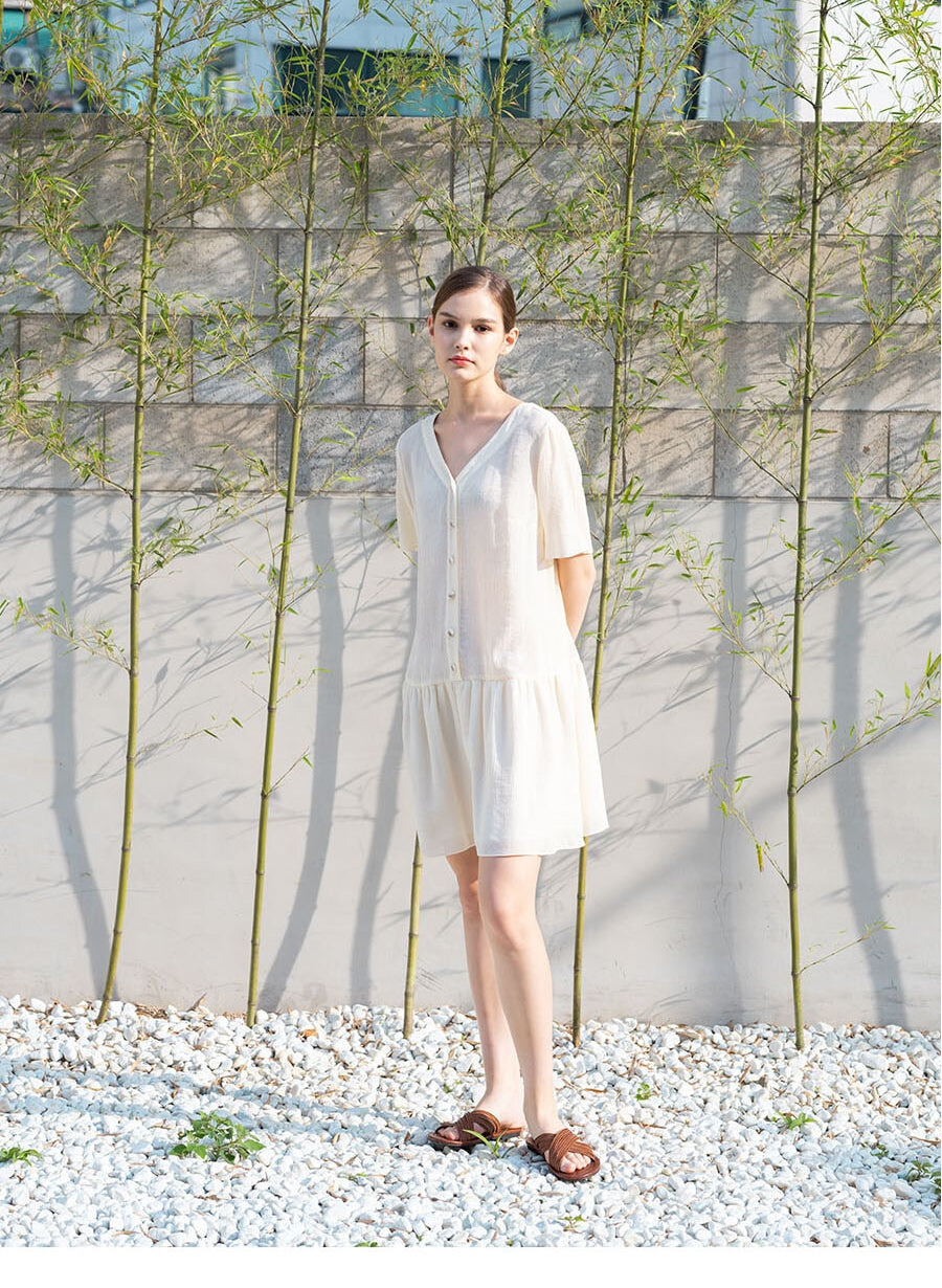 Step into breezy elegance with this relaxed-fit linen mini dress by Laura Ren, perfect for sunlit days and casual refinement. Made from breathable, natural linen, the dress features a V-neckline, short sleeves, and a button-down front for easy wear. Its drop-waist silhouette and softly gathered skirt create gentle movement and a flattering drape. Ideal for warm-weather styling, this Laura Ren piece blends comfort and minimalist sophistication, making it a versatile staple for daytime outings, vacations, or effortless weekend dressing.