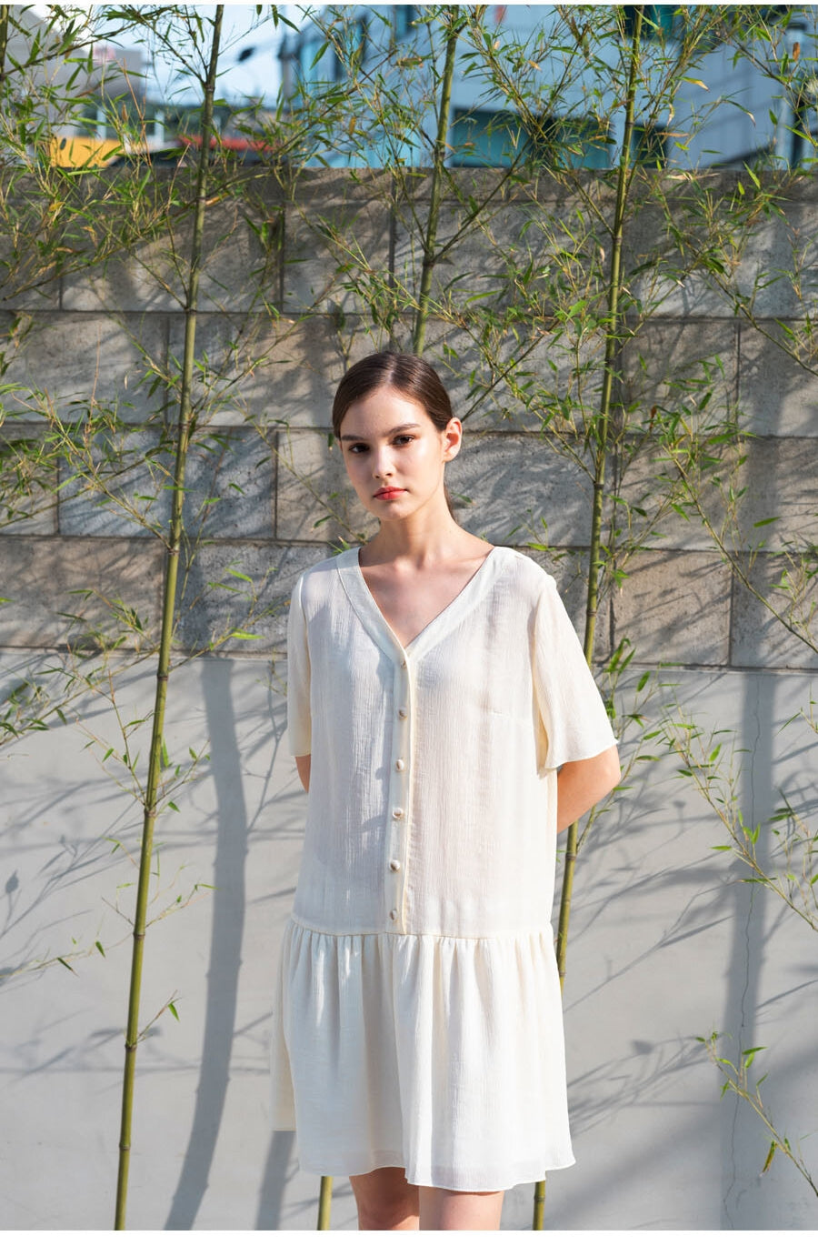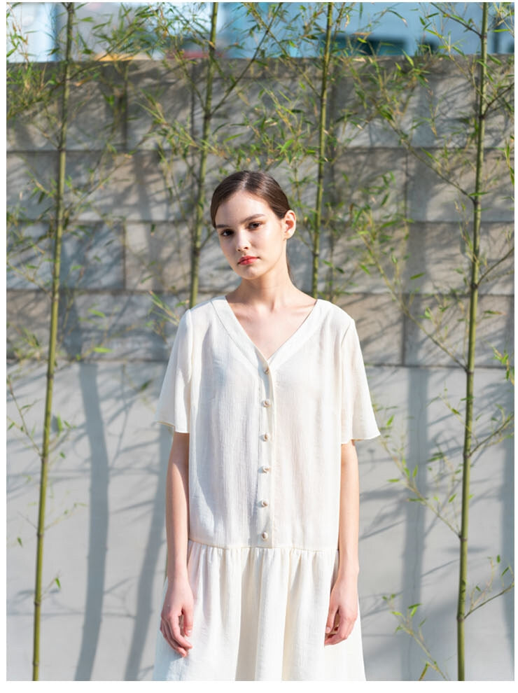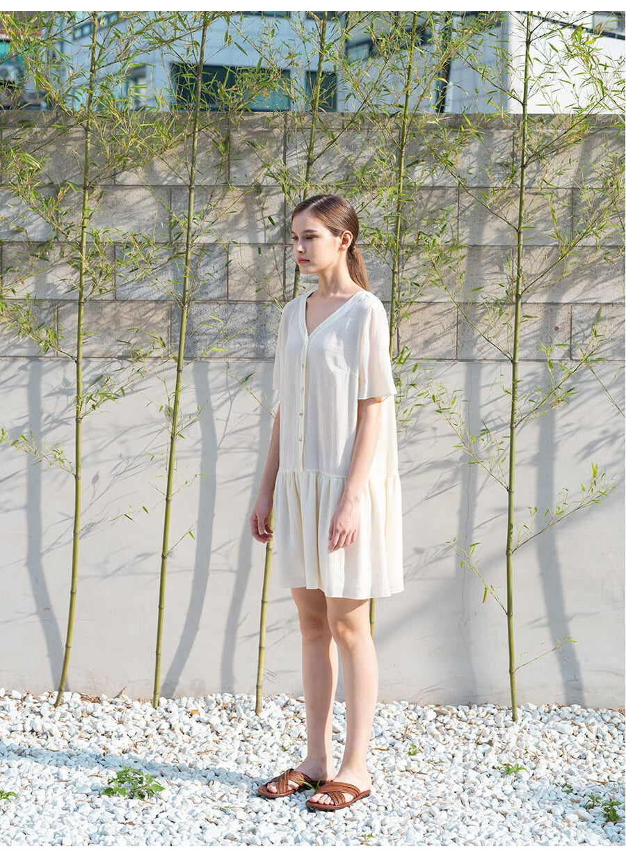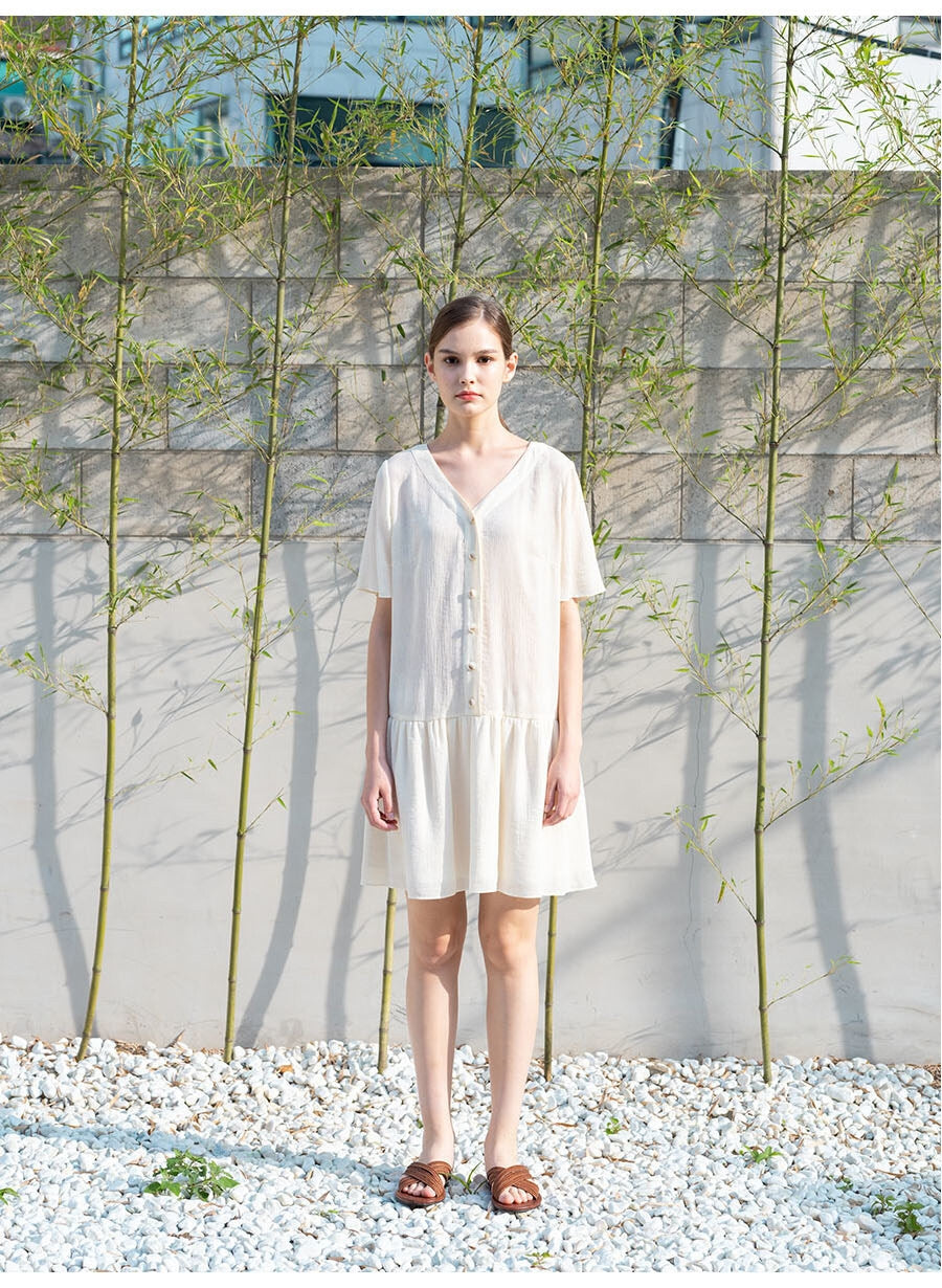 Step into breezy elegance with this relaxed-fit linen mini dress by Laura Ren, perfect for sunlit days and casual refinement. Made from breathable, natural linen, the dress features a V-neckline, short sleeves, and a button-down front for easy wear. Its drop-waist silhouette and softly gathered skirt create gentle movement and a flattering drape. Ideal for warm-weather styling, this Laura Ren piece blends comfort and minimalist sophistication, making it a versatile staple for daytime outings, vacations, or effortless weekend dressing.