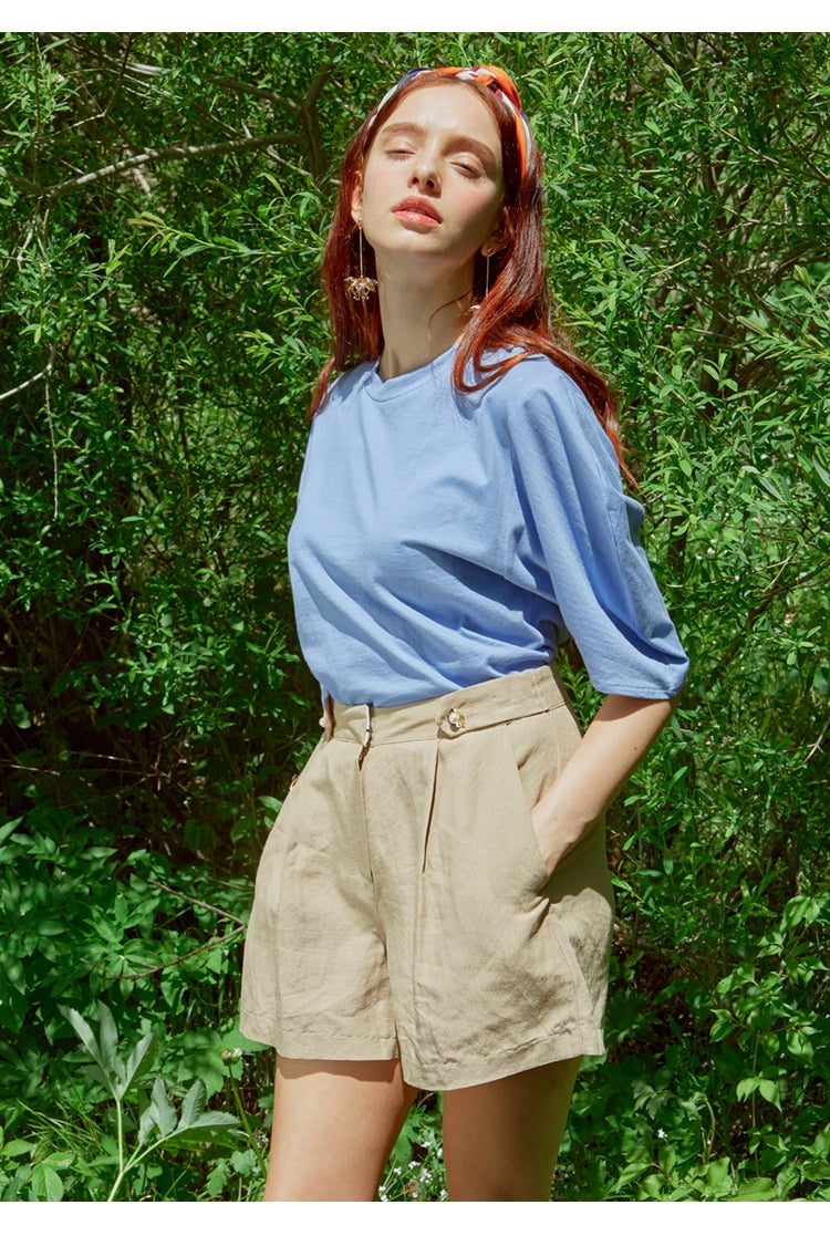 Laura Ren presents this essential cotton blouse designed for laid-back elegance and breathable comfort. Cut from high-quality natural cotton, it features a relaxed fit with drop shoulders and mid-length sleeves, ideal for warm-weather dressing or layering across seasons. The timeless round neckline and clean structure offer versatile styling, making it perfect for pairing with tailored shorts, denim, or skirts. A staple for modern wardrobes that blends simplicity with refined ease.