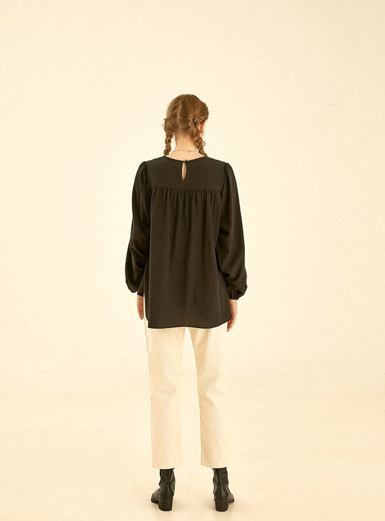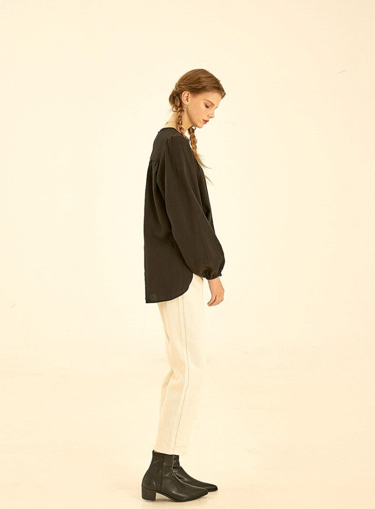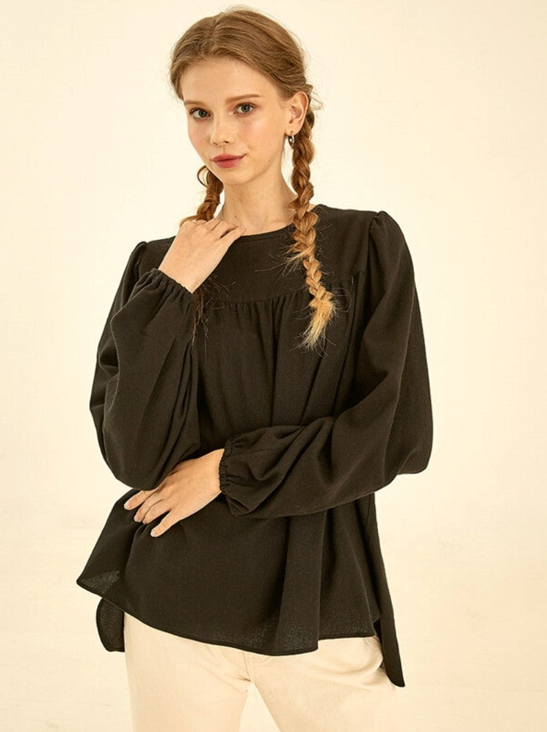 Discover effortless elegance in this long sleeve linen shirt from Laura Ren, crafted for timeless appeal and all-day comfort. Designed with a relaxed silhouette, this shirt features gathered yoke detailing for subtle volume and a feminine touch. The soft linen fabric offers natural breathability, making it ideal for both casual and refined settings. A keyhole back closure adds a sophisticated detail, while the cuffed sleeves enhance its graceful charm. Versatile and chic, this piece pairs beautifully with tailored pants or your favorite denim. Elevate your wardrobe with Laura Ren’s take on minimalist, elevated essentials.