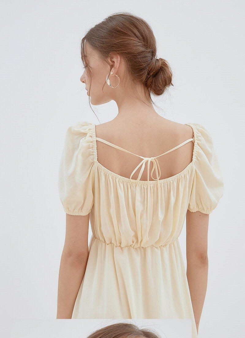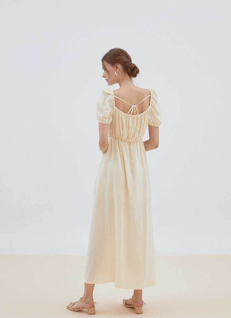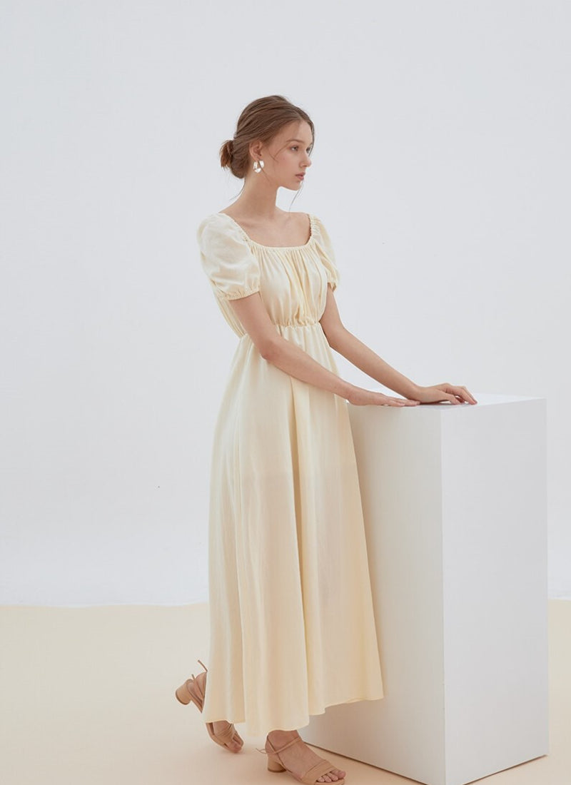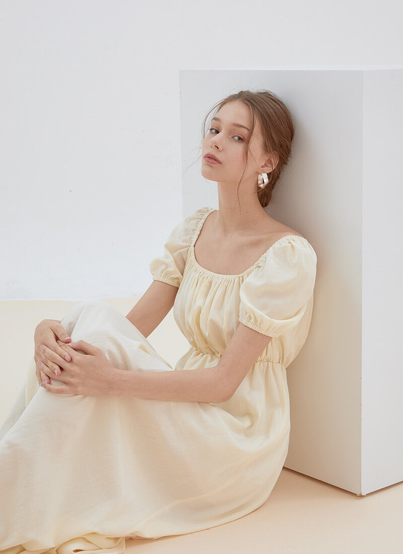 This romantic linen midi dress by Laura Ren brings timeless femininity to warm-weather dressing. Made from lightweight, breathable linen, it features a gathered square neckline, puff sleeves, and a gently cinched waist for a flattering silhouette. The soft A-line skirt flows with ease, while the back tie detail adds a delicate touch. Ideal for brunches, garden parties, or sun-soaked holidays, this dress balances comfort with refined style. Designed with Laura Ren’s signature attention to detail, it’s a versatile and elegant addition to any elevated wardrobe.