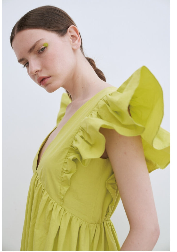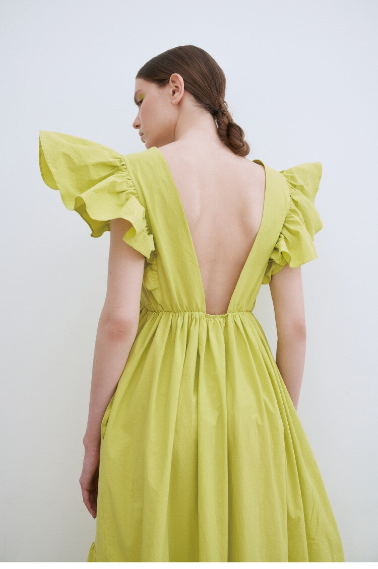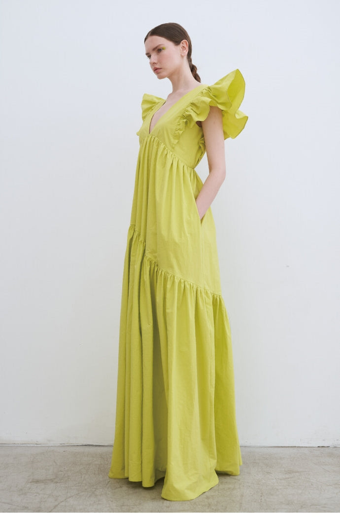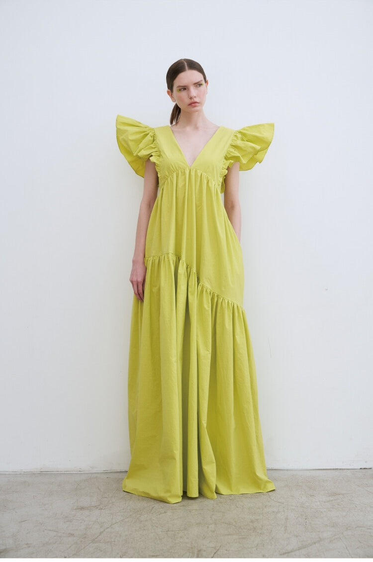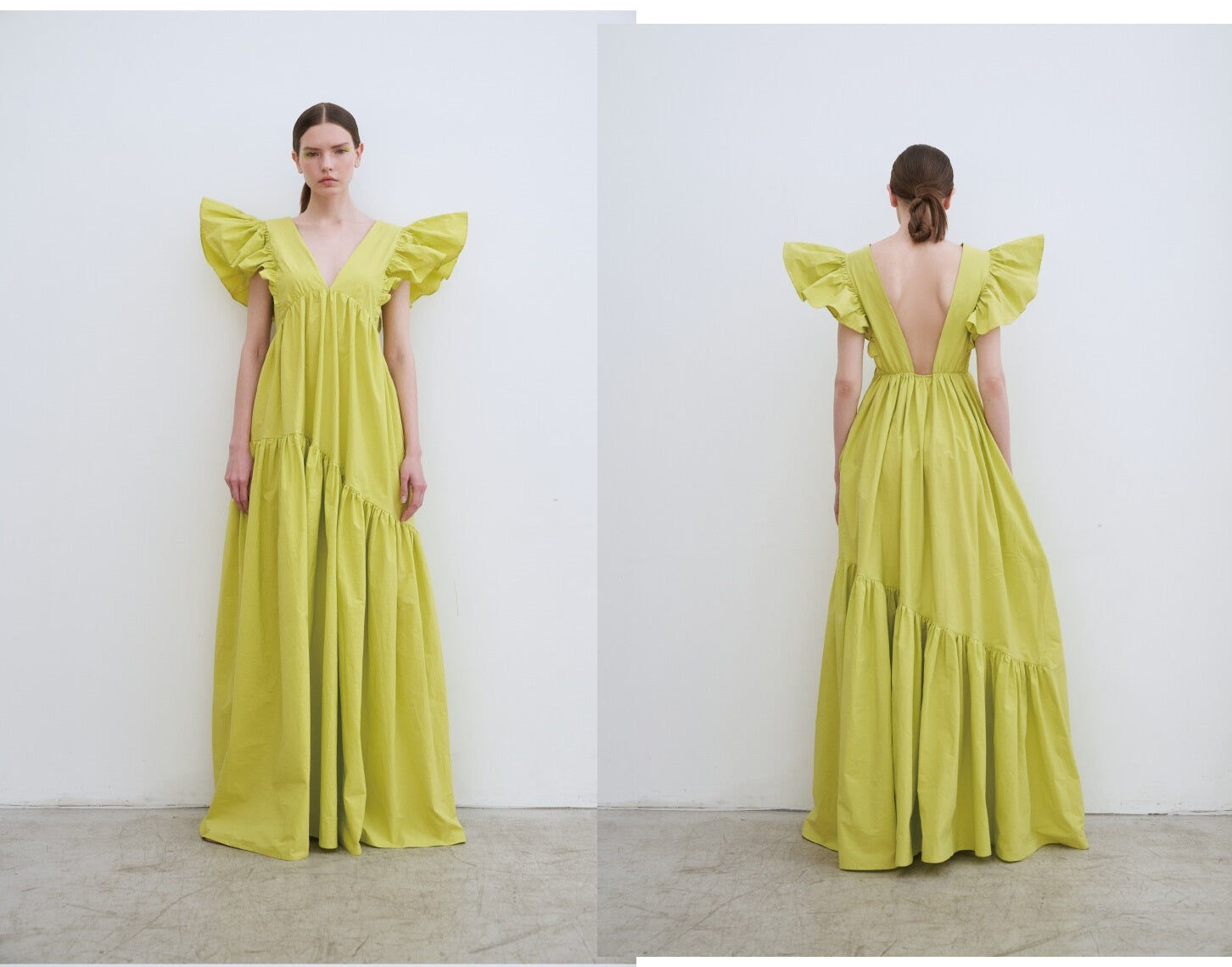 Laura Ren unveils a dramatic linen maxi dress designed to captivate with bold volume and romantic movement. Crafted from breathable premium linen, this dress features a deep V-neckline, exaggerated flutter sleeves, and a gathered tiered skirt for an ethereal silhouette. Its lightweight construction and flowing shape make it ideal for statement daywear, garden parties, or elegant vacation moments. Effortlessly feminine and unforgettable.