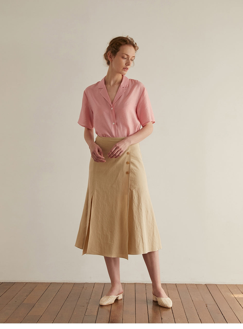Elevate your summer wardrobe with this short sleeve button-down linen blouse from Laura Ren. Crafted from breathable, lightweight linen, this blouse features a relaxed silhouette with a notched collar and softly tailored hem that flatters every figure. The minimal pearl-style buttons add a refined touch, while the side slits ensure ease of movement. Whether paired with tailored pants or a breezy skirt, this top offers effortless sophistication for warm-weather styling. Perfect for both casual days and elevated occasions, this linen blouse blends timeless design with modern comfort.
