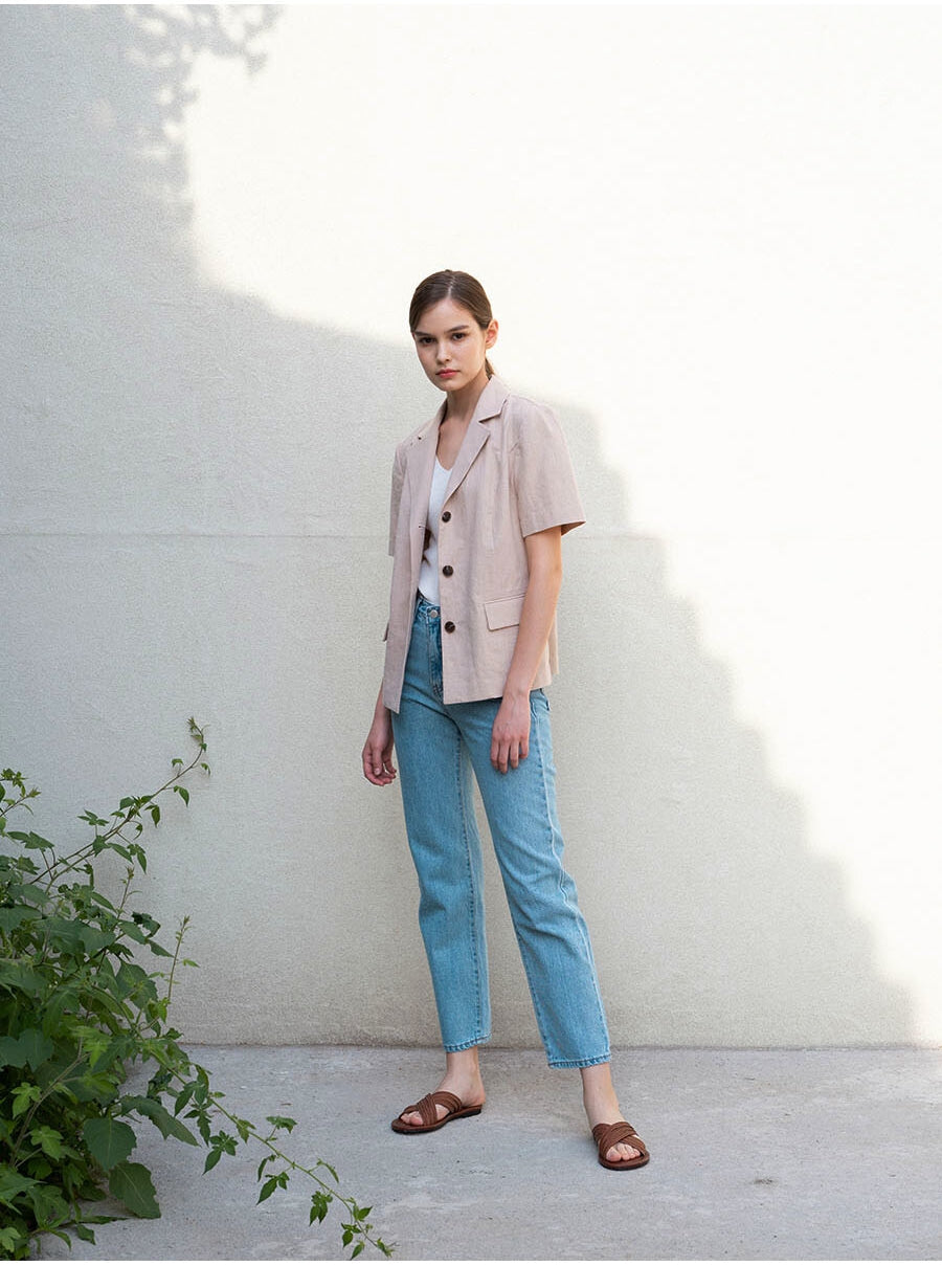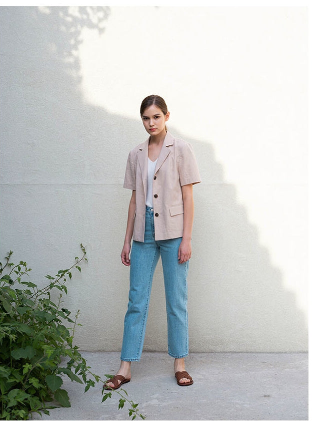 Elevate your wardrobe with this effortlessly chic short sleeve linen blouse by Laura Ren. Crafted from premium breathable linen, this tailored piece features a sharp notched lapel, structured silhouette, and classic button front closure, making it perfect for both casual and polished occasions. The flap pockets add a touch of utility, while the lightweight fabric ensures comfort and sophistication. Whether styled with high-waisted denim or wide-leg trousers, this blouse brings timeless elegance to everyday wear. Designed for modern women who value quality, structure, and versatility in their fashion staples.