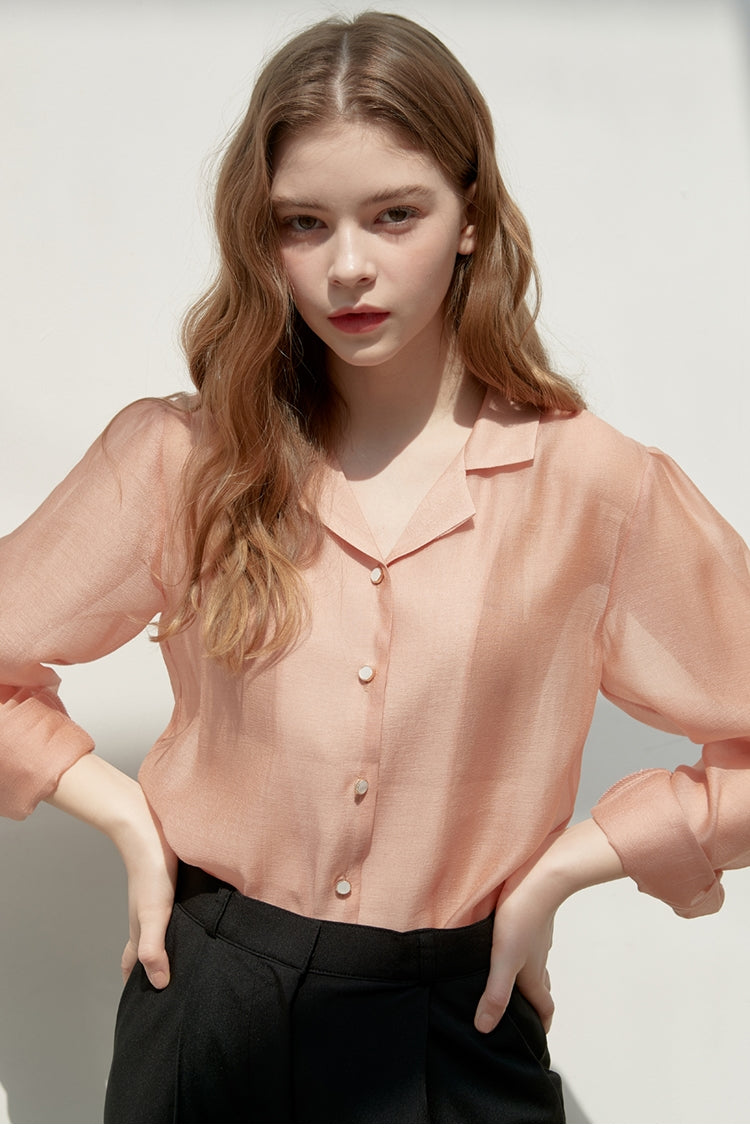 Refined and ethereal, this silk shirt from Laura Ren is crafted to elevate your everyday wardrobe with timeless grace. Made from high-quality silk, it features a soft drape, lapel collar, and delicate pearl-like buttons that add a touch of vintage charm. The semi-sheer texture offers a light, breathable feel while maintaining a polished silhouette. Ideal for styling with tailored pants or skirts, this versatile piece transitions seamlessly from office elegance to weekend ease. Laura Ren designs with the modern, confident woman in mind—where comfort meets elevated style.