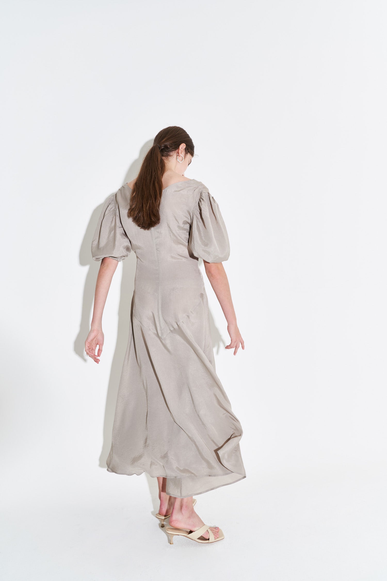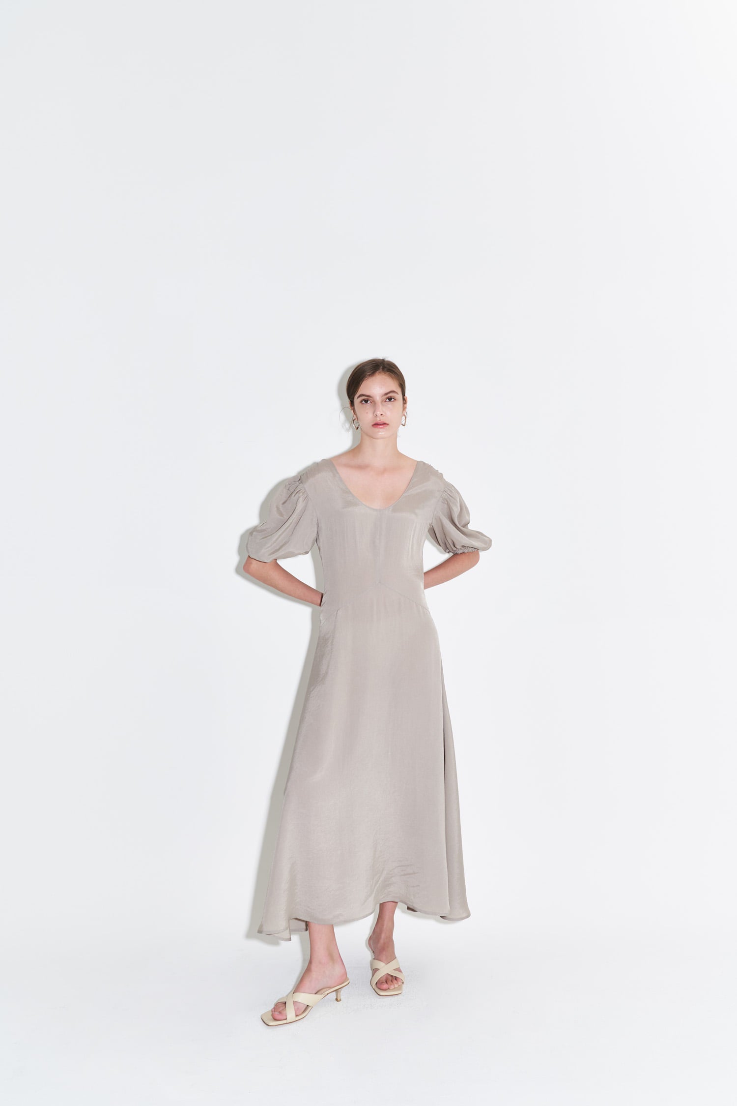 The Laura Ren silk midi dress captures timeless elegance with a touch of modern drama. Crafted from lustrous silk, this women’s dress features a flattering scoop neckline and voluminous puff sleeves that create a bold yet feminine silhouette. The tailored bodice transitions into a softly flared midi skirt, offering graceful movement with every step. Lightweight and fluid, this silk dress is perfect for formal events or elevated daywear. Laura Ren’s commitment to exquisite craftsmanship and sophisticated style ensures this silk midi dress is a luxurious must-have for the contemporary wardrobe.
