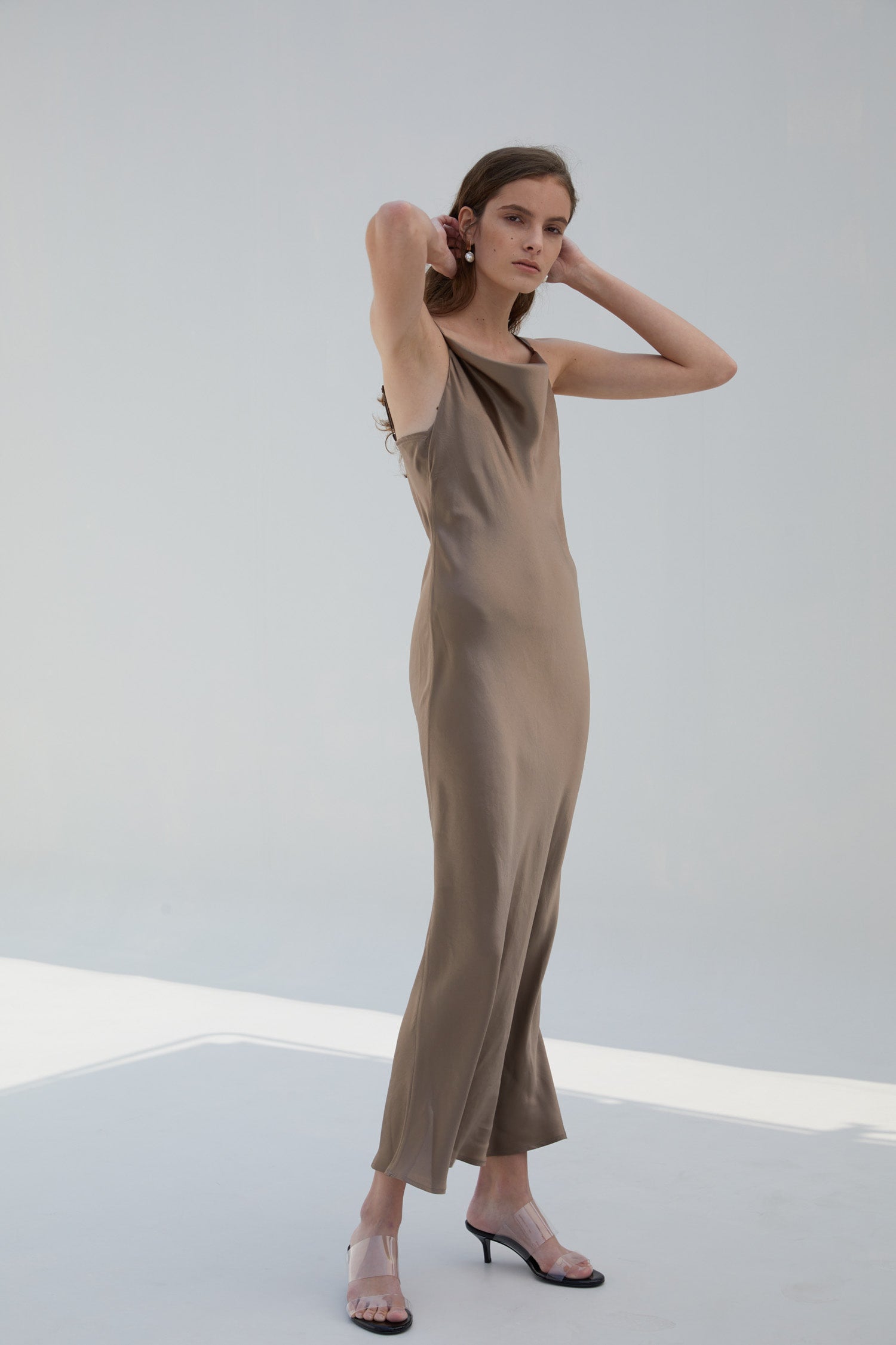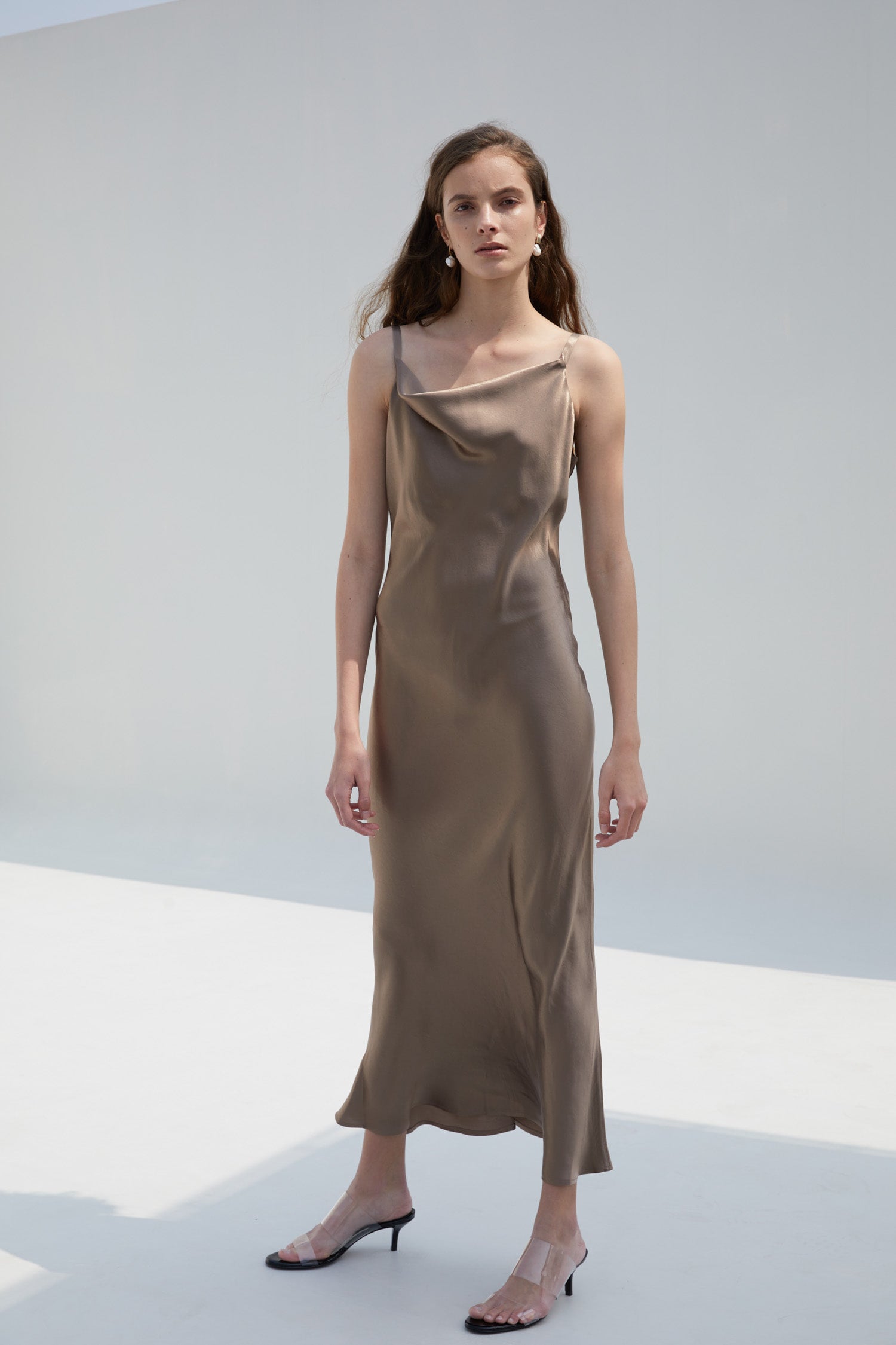 The Laura Ren silk satin slip dress embodies effortless sophistication with its minimalist design and luxurious fabric. Crafted from premium silk satin, this women’s dress features a softly draped cowl neckline and a fluid, bias-cut silhouette that skims the body beautifully. Sleeveless and midi-length, it offers a timeless, versatile look ideal for both evening events and elevated daytime style. The natural sheen of the silk satin adds a refined finish, while Laura Ren’s commitment to quality ensures lasting elegance. Perfectly balanced between comfort and glamour, this slip dress is a wardrobe essential.