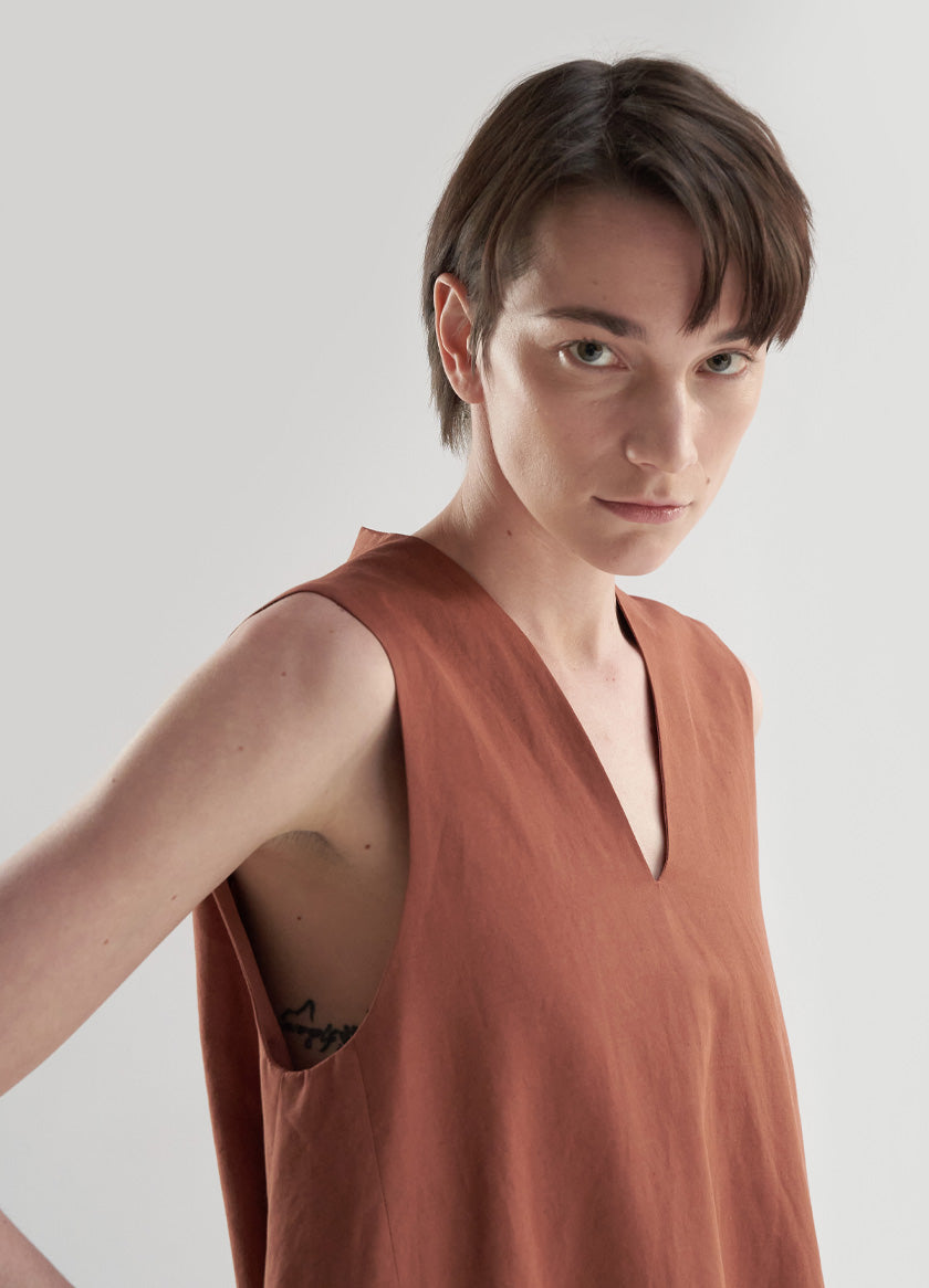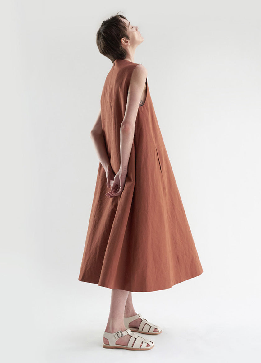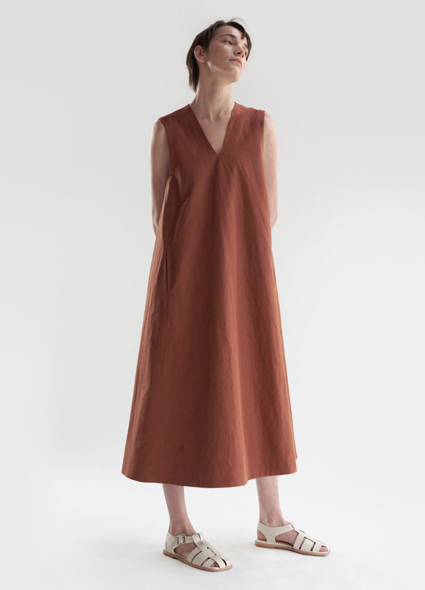 The Laura Ren linen dress is an ode to minimalist elegance, designed in a sculptural A-line silhouette that flows effortlessly with every step. Crafted from breathable linen, this sleeveless midi dress features a plunging V-neckline and cleverly hidden side pockets, offering both functionality and modern edge. Its clean lines and lightweight structure make it a versatile summer essential—perfect for vacations, artful layering, or relaxed daily wear. Laura Ren reimagines timeless shapes with architectural ease, bringing contemporary femininity to this refined, warm-weather staple.