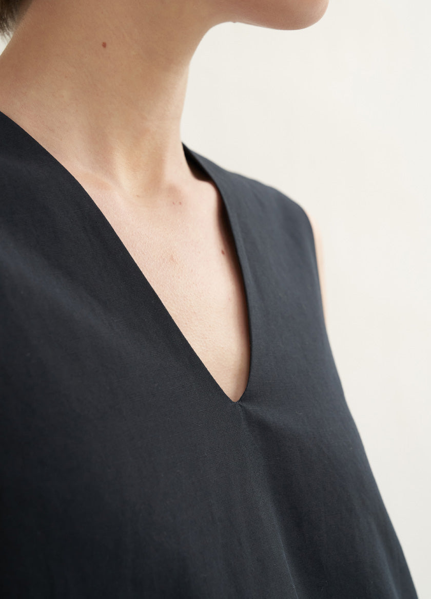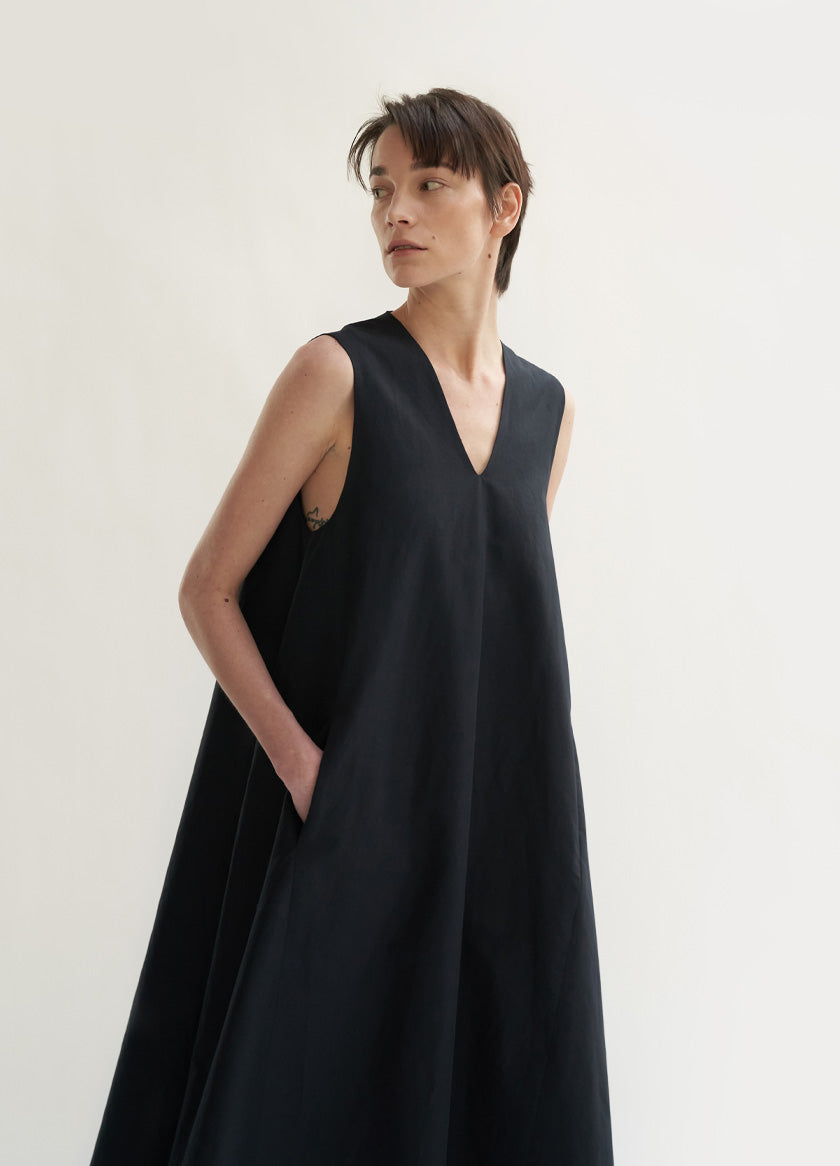 The Laura Ren sleeveless A-line linen dress is designed for minimalist elegance and effortless movement. Crafted from breathable linen, this dress features a clean V-neckline, side seam pockets, and a gracefully flared hem that falls at mid-calf length. The flowing silhouette creates a soft architectural shape while offering relaxed comfort for warm-weather days. A timeless piece ideal for refined summer wardrobes, this linen dress blends ease with understated sophistication. Elevate your everyday looks with Laura Ren’s take on essential modern tailoring in natural, airy fabrics.