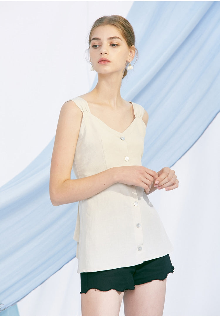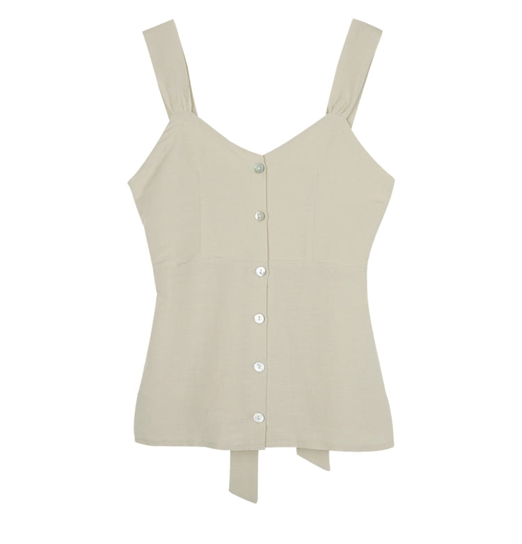 Crafted from breathable premium linen, this sleeveless top from Laura Ren is designed to elevate your everyday style with comfort and sophistication. The button-front detail adds structure while the wide shoulder straps and sweetheart neckline offer a feminine silhouette. A charming bow tie at the back creates a refined finish, making it perfect for both casual outings and elegant occasions. Whether paired with linen trousers or flowy skirts, this top seamlessly blends timeless elegance with modern comfort. A versatile must-have in any wardrobe, this linen blouse enhances breathability and movement with effortless grace.