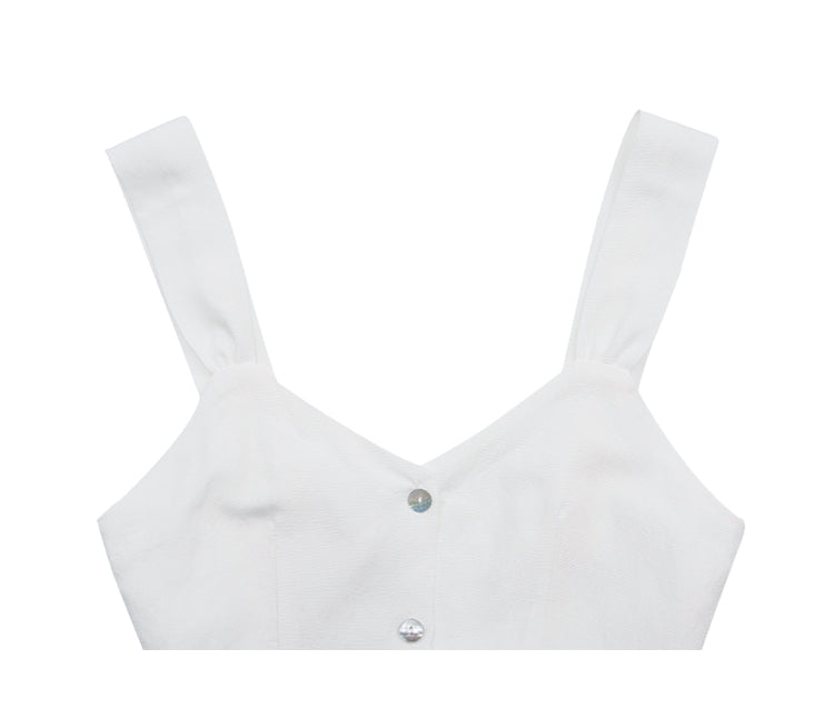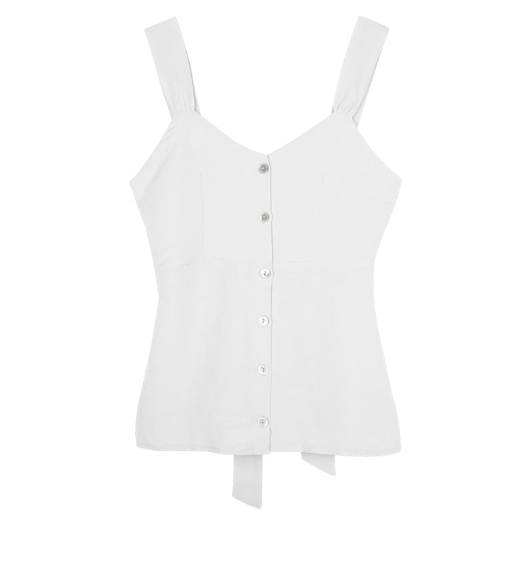 Elevate your summer wardrobe with this sleeveless linen top by Laura Ren, designed for modern women who value elegance and comfort. Crafted from breathable, natural linen fabric, this women's top features a flattering soft V-neckline, functional button front, and wide straps for added support. The back-tie detail not only enhances the feminine silhouette but also offers customizable fit and styling. Perfect for casual days, coastal getaways, or layered chic looks, this linen top embodies both effortless style and refined tailoring. Discover timeless sophistication with Laura Ren’s signature craftsmanship.