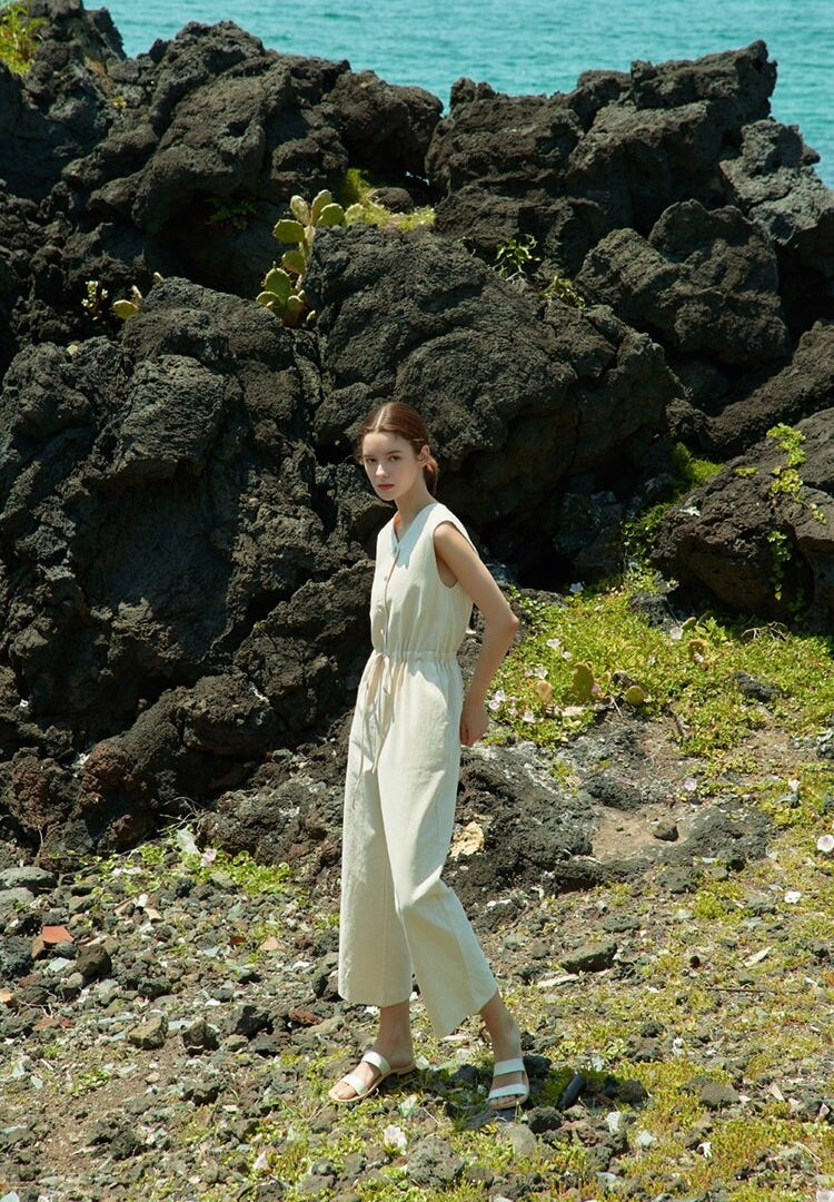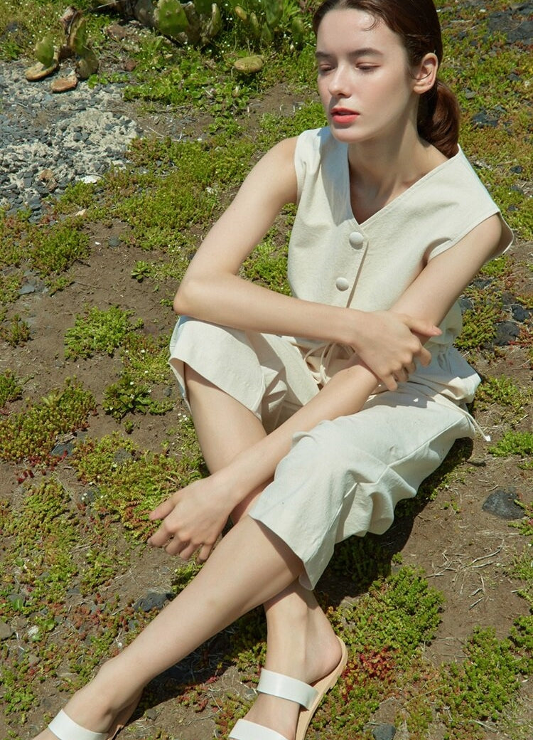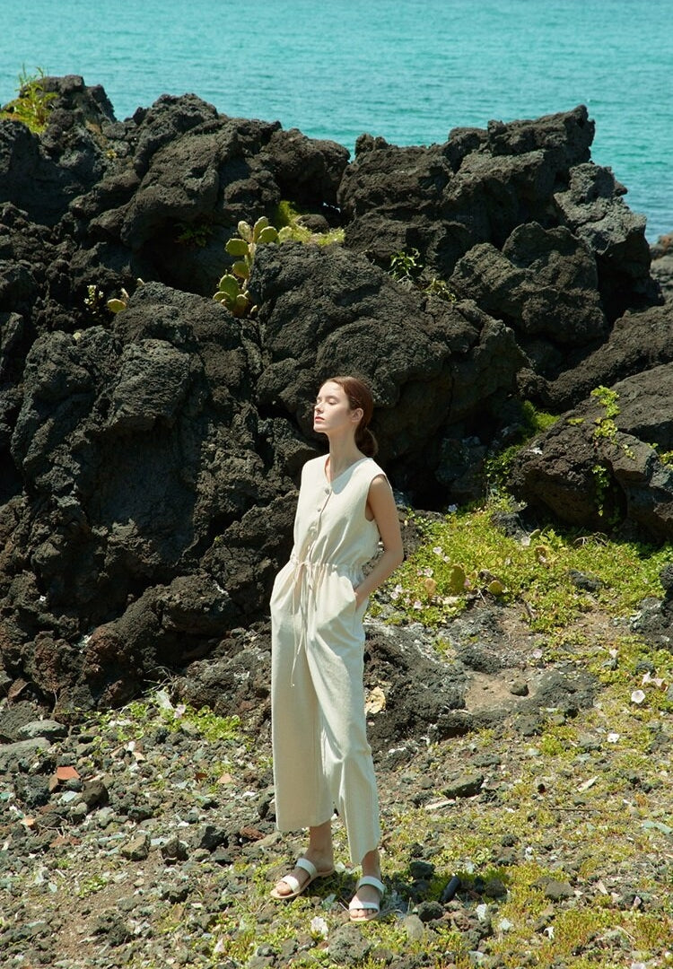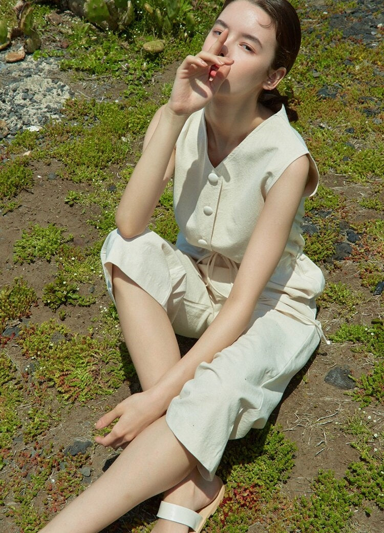Crafted for modern ease and timeless sophistication, this sleeveless linen jumpsuit by Laura Ren is the perfect summer essential. Designed with a breezy wide-leg silhouette and a drawstring waist for a customized fit, this one-piece blends structured tailoring with soft, breathable comfort. The minimalist button-down front and V-neckline offer a clean, elevated aesthetic ideal for resort wear, beach strolls, or city days in the heat. Made from high-quality linen fabric, it ensures effortless style and all-day freshness. Step into refined versatility with this warm-weather favorite from Laura Ren's luxury women’s collection.