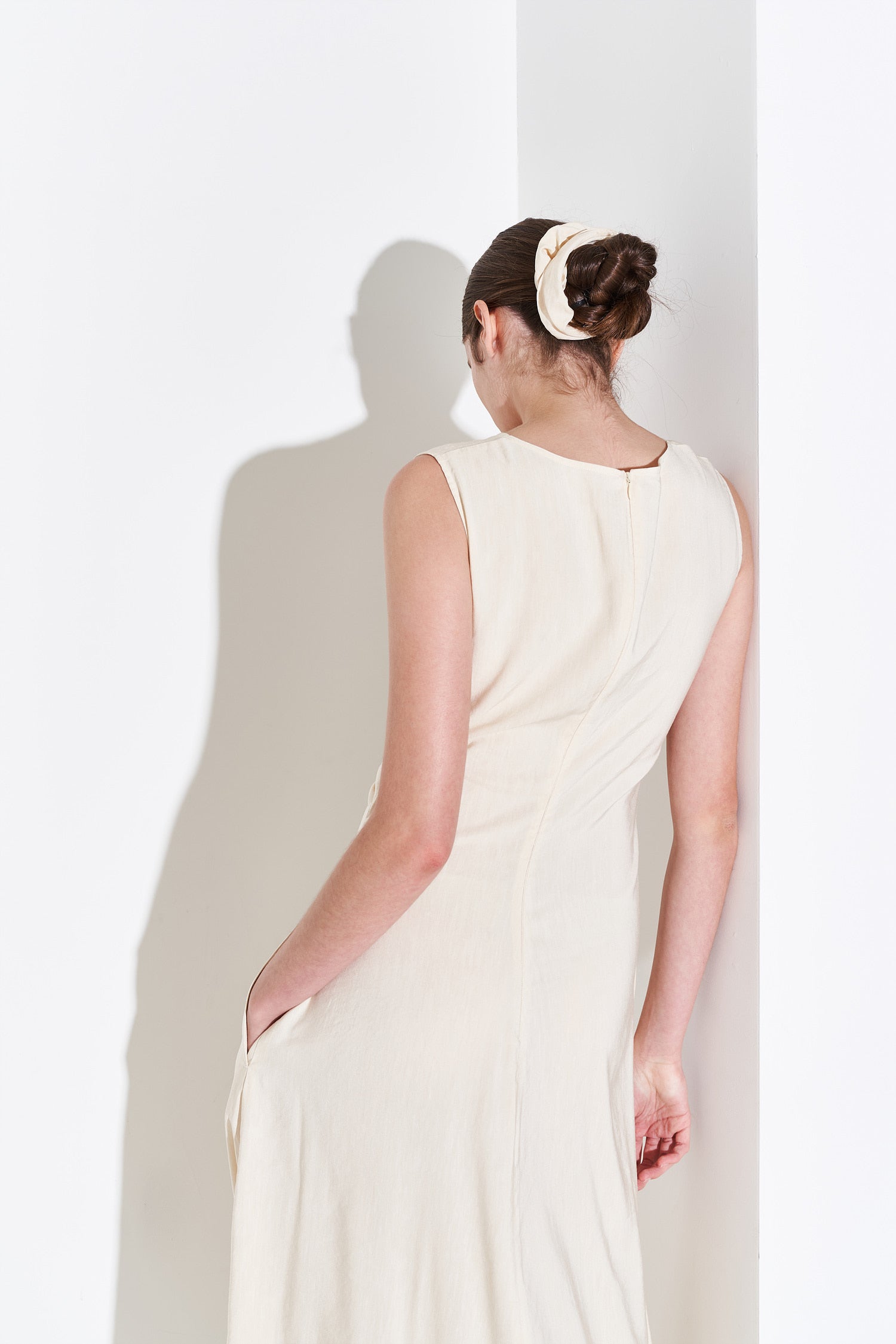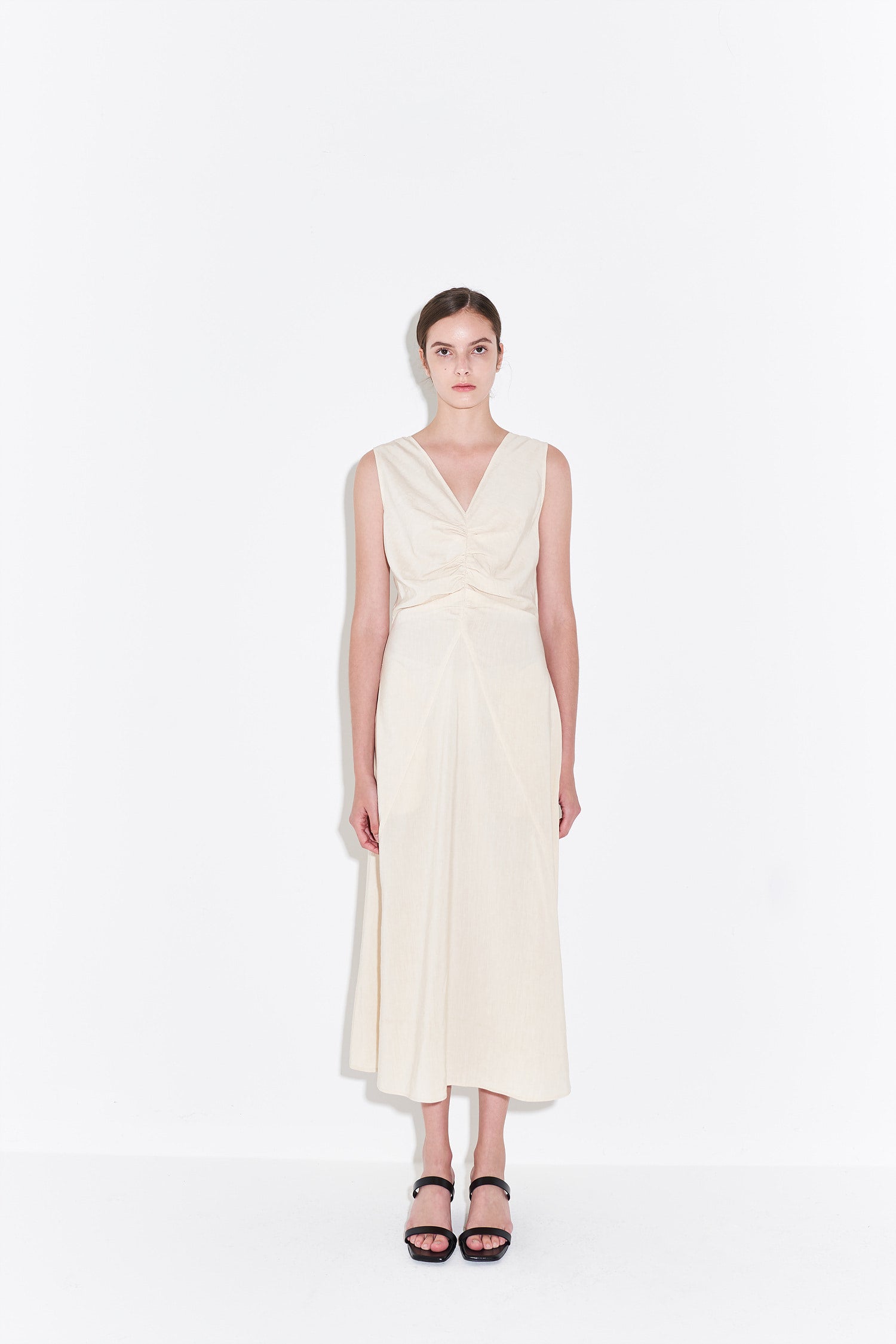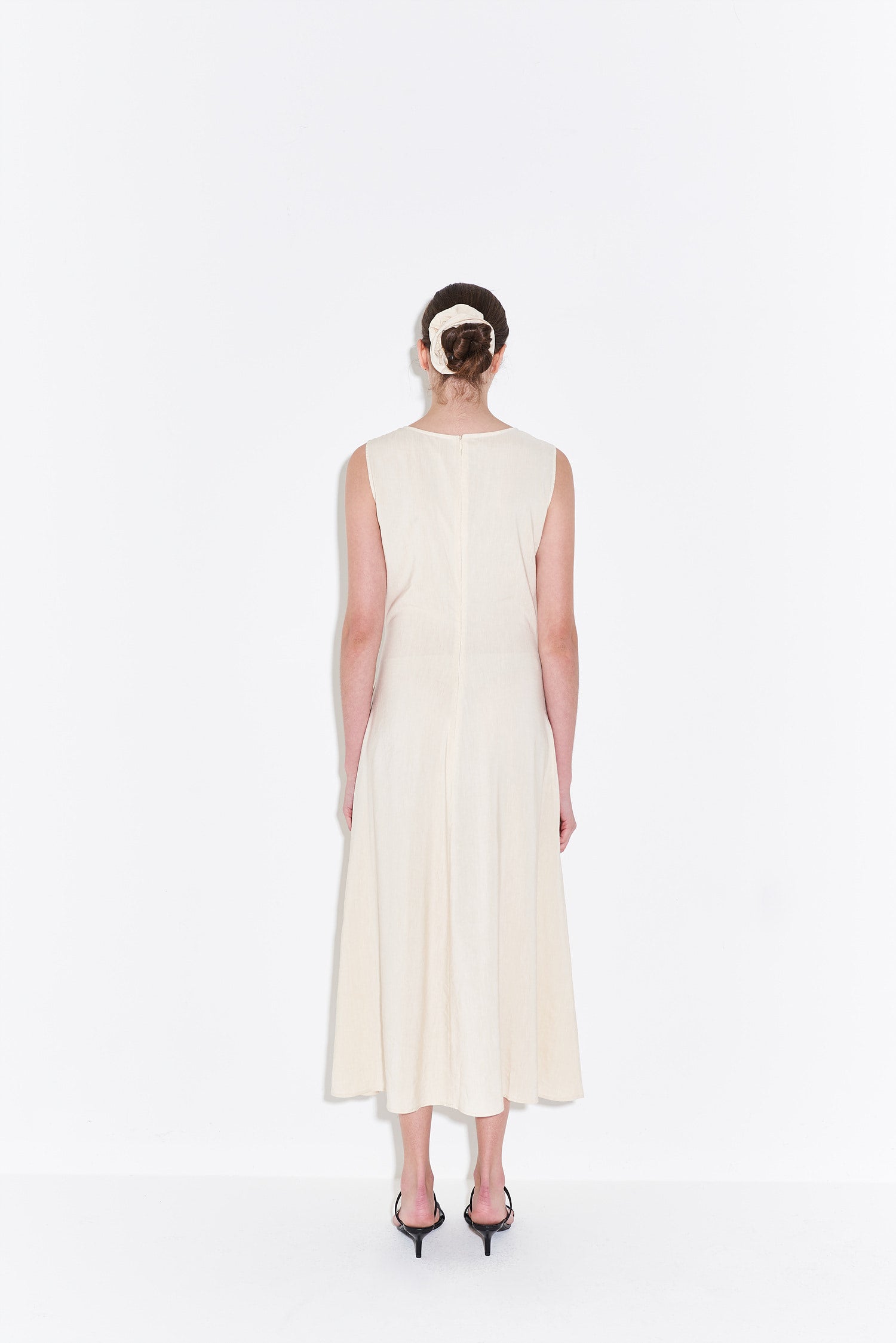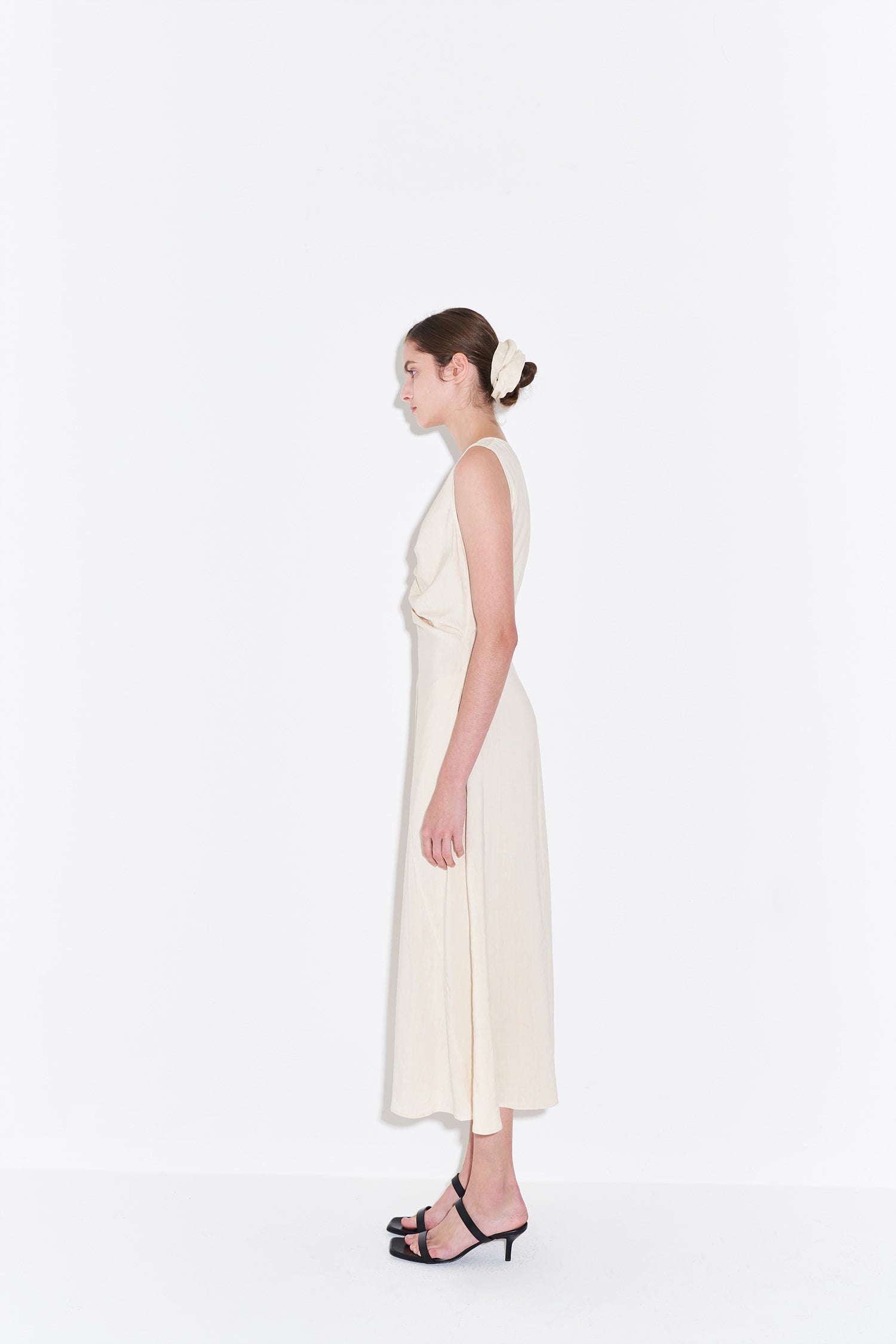 The Laura Ren sleeveless linen midi dress embodies effortless elegance with a touch of refined detail. Expertly crafted from breathable, natural linen, this women’s dress features a flattering V-neckline and delicate draped ruching at the waist, enhancing the feminine silhouette. The flared midi skirt provides graceful movement, while the hidden zipper ensures a seamless fit. Ideal for daytime events or relaxed summer occasions, this linen dress by Laura Ren combines comfort and timeless style, making it a versatile essential for every modern wardrobe.