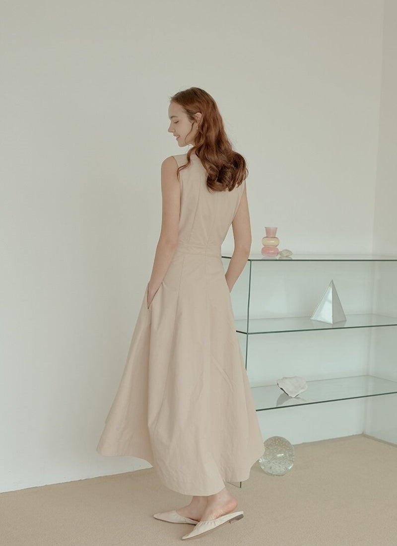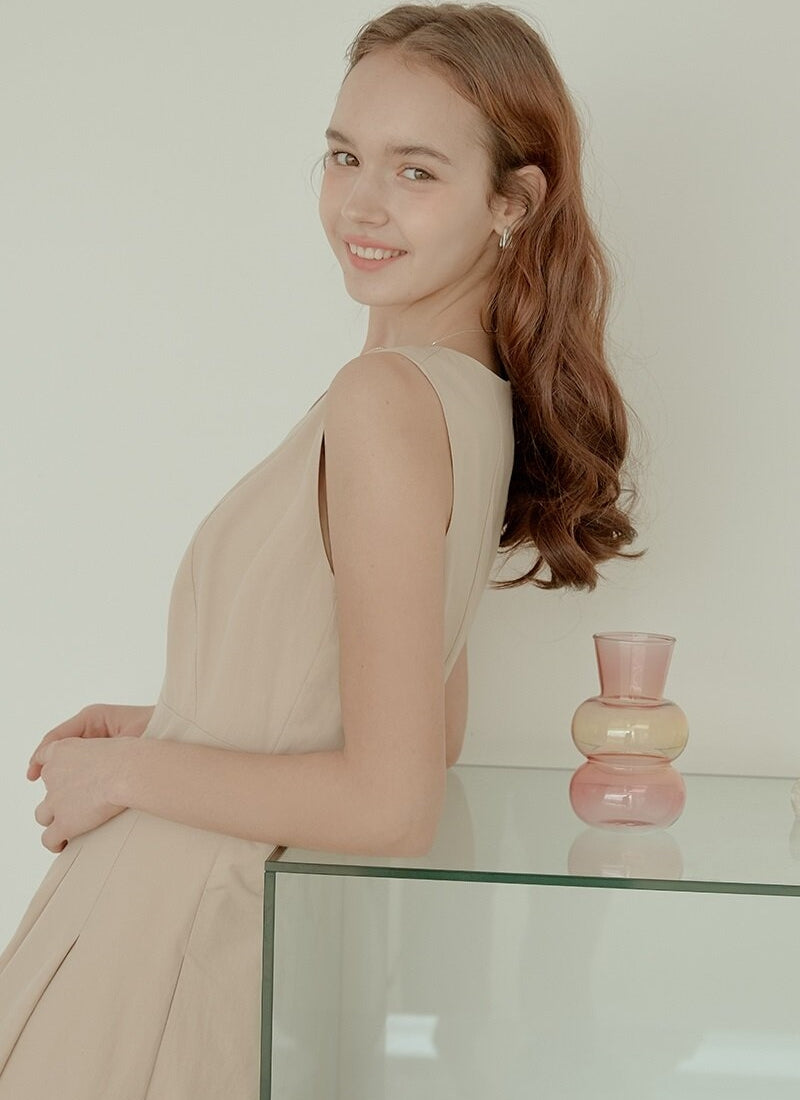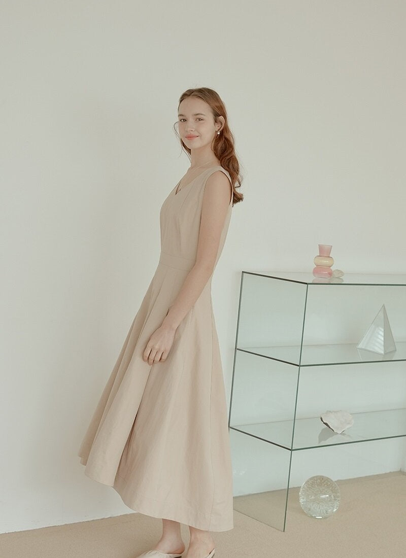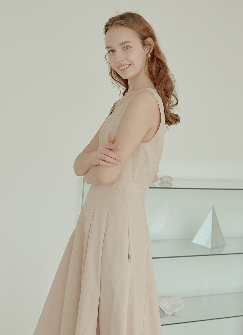 Understated and elegant, this sleeveless linen midi dress by Laura Ren is crafted for refined everyday sophistication. Made from breathable linen, it features a soft round neckline, tailored seams through the bodice, and a flared hemline that moves gracefully. Designed to enhance the natural shape, the fitted waist offers flattering definition while keeping comfort at the forefront. Functional side pockets add ease to the minimalist silhouette. Ideal for warm-weather dressing, this Laura Ren dress pairs seamlessly with flats or sandals for effortless versatility.